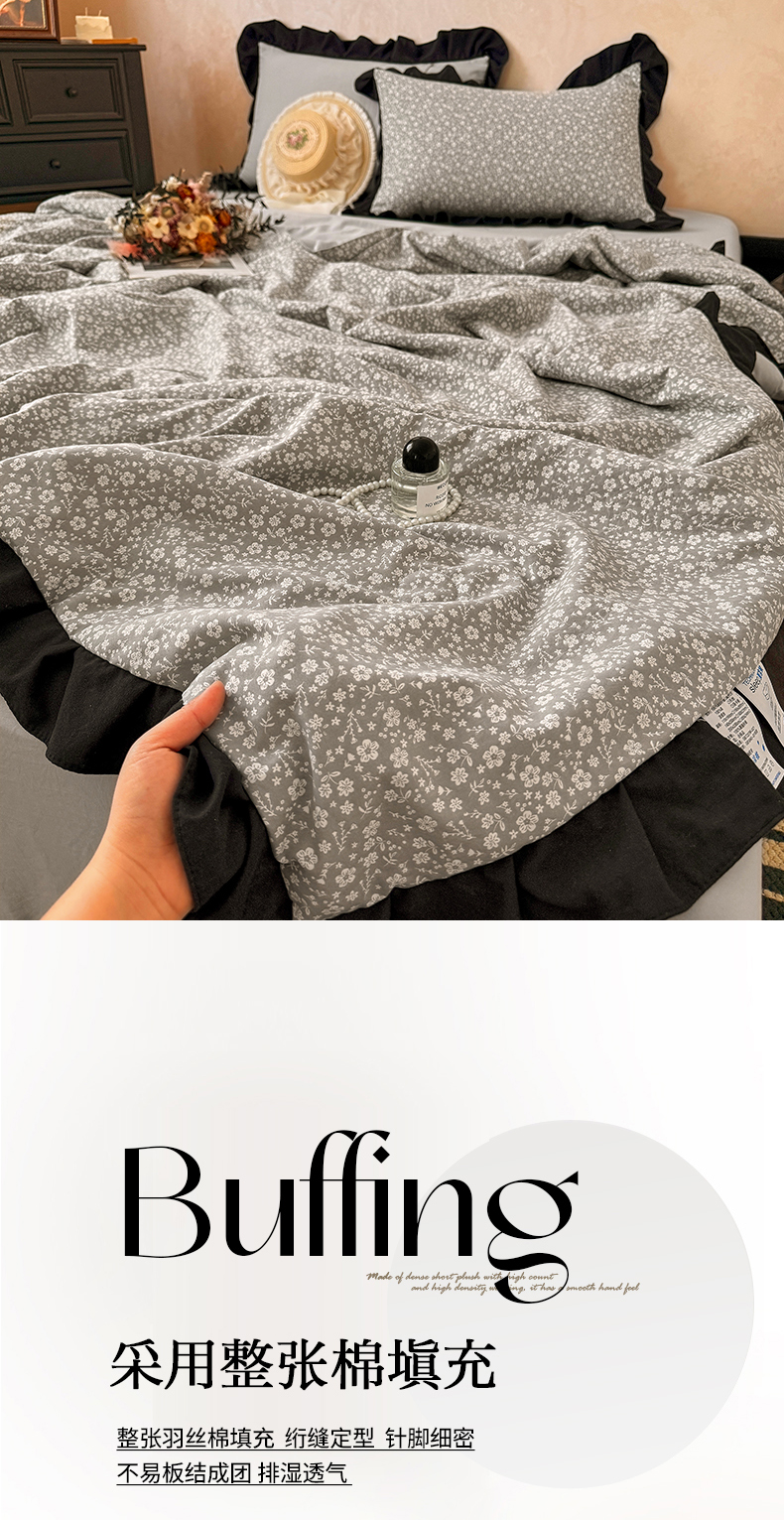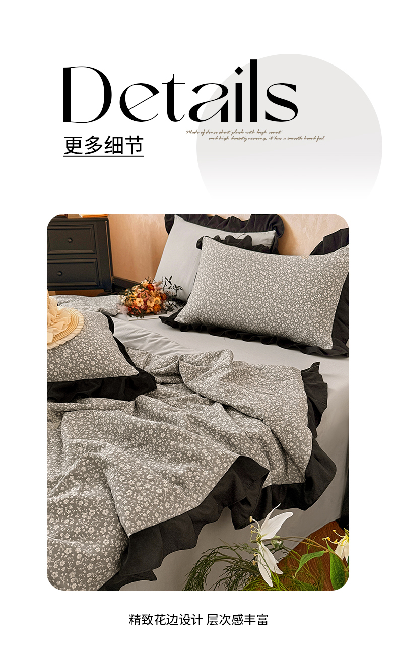 商品名称:2026直播爆款韩版赫本风花边款水洗双层纱夏被四件套【有买家秀加V】朵颜