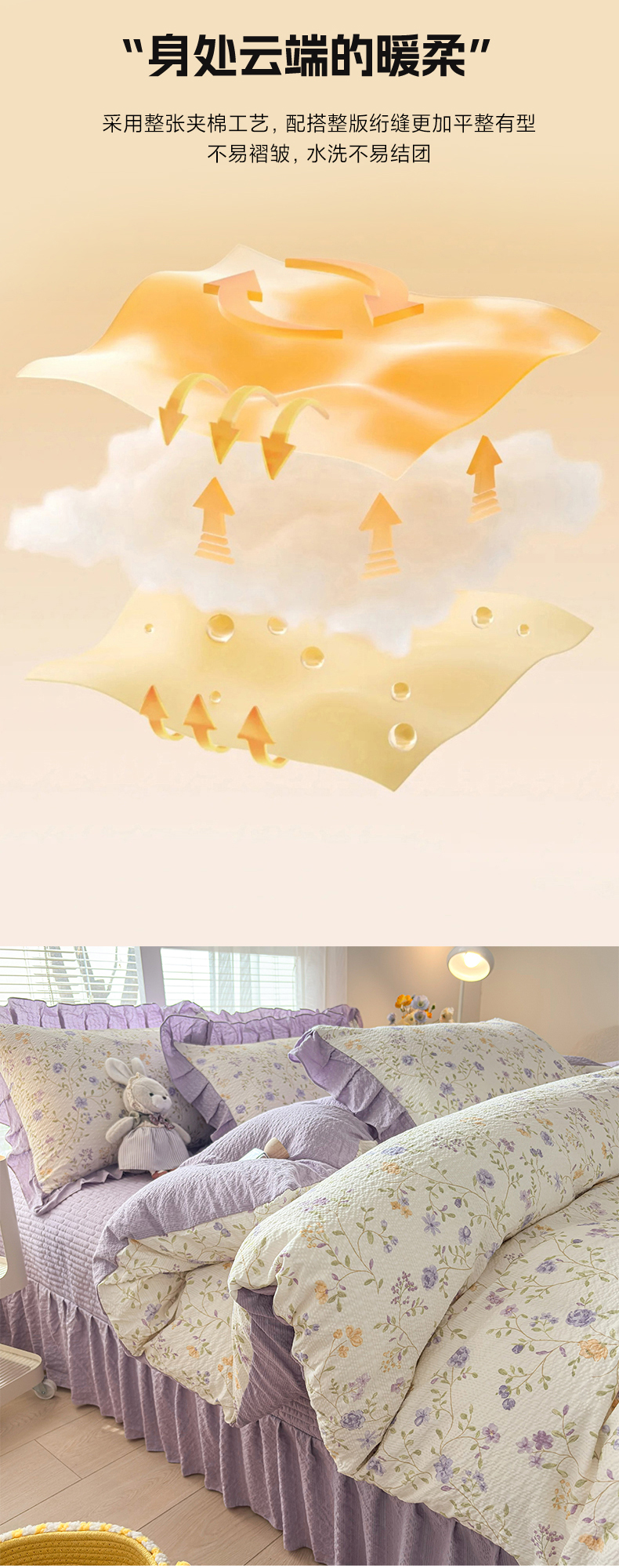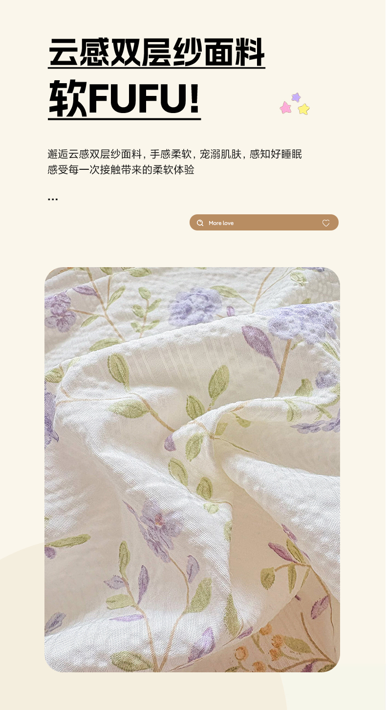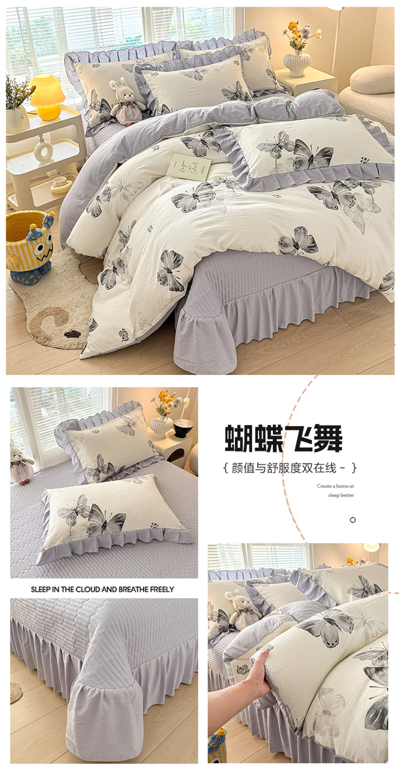 商品名称:畅畅家纺 2026新款春夏小清新泡芙双层纱床盖款四件套 紫薇花开