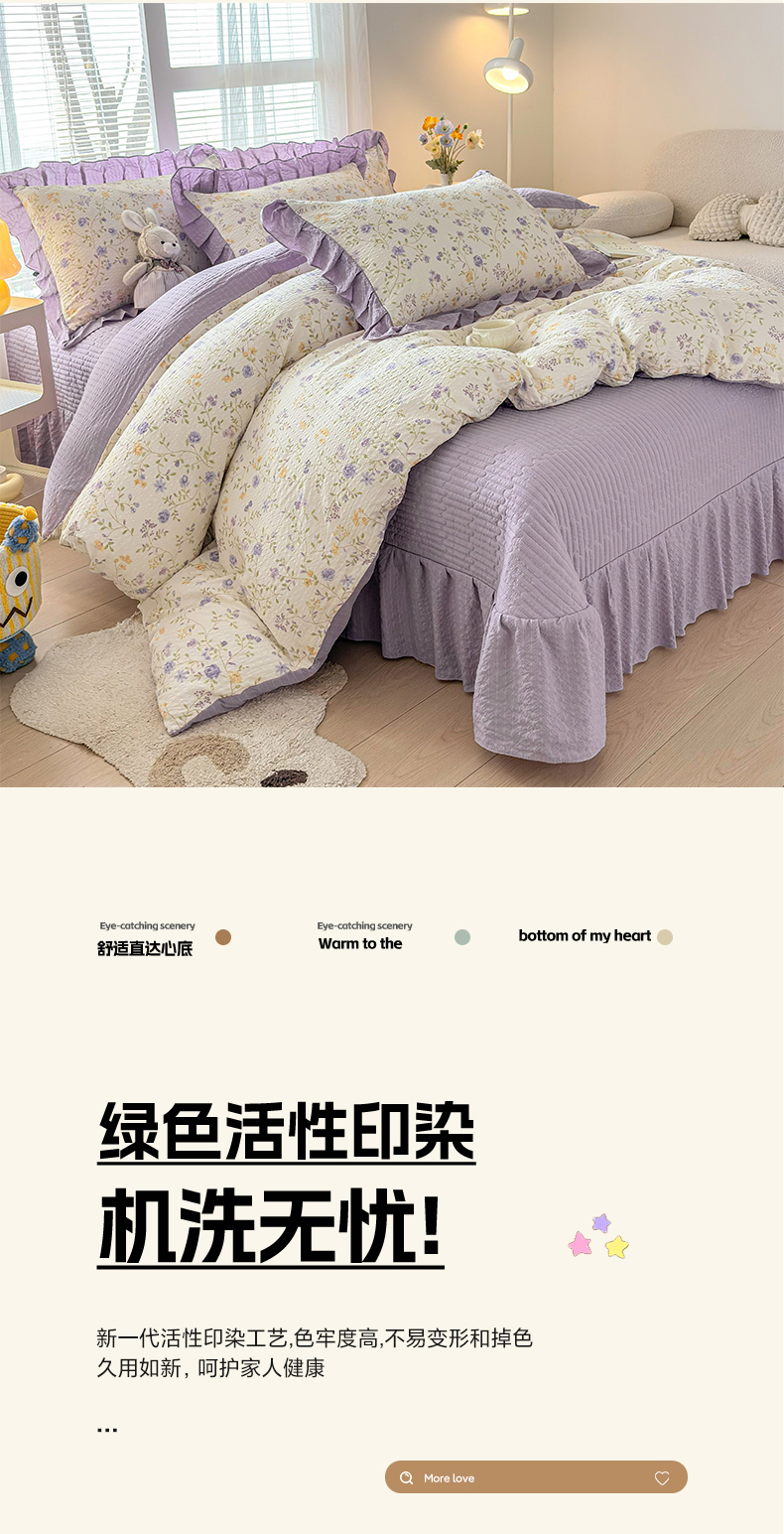 (总)畅畅家纺 2026新款春夏时尚柔软水洗棉床盖被套四件套,水绿,丁香紫,粉色,橘粉,米白,藕粉,绅士灰,深蓝