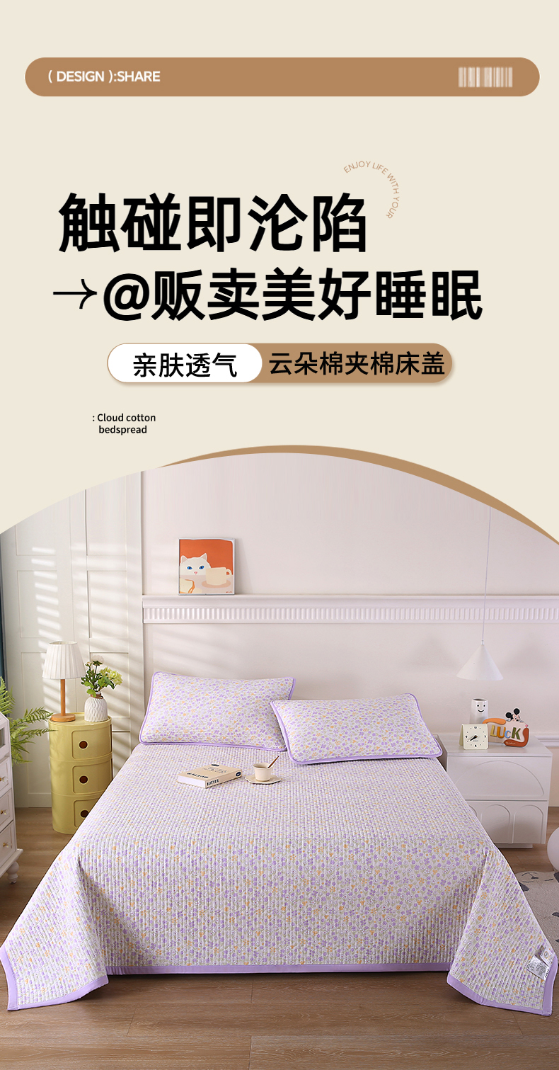 (总)欧朵家纺 2026新款云朵棉夹棉单床盖床盖单件,爱心蝴蝶结,半岛花园,蝴蝶结,流星雨,琉璃花畔,蘑菇花,小象,游乐园