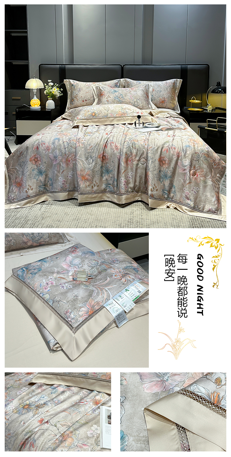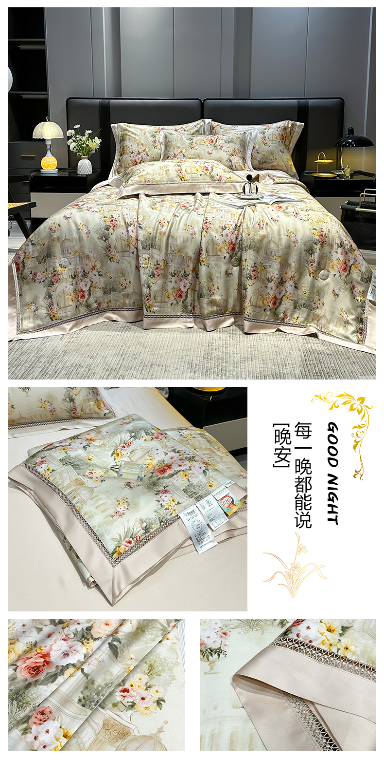 商品名称:欧夏家纺 2026新款兰精天丝数码印花镂空夏被空调被夏凉被薄被子可机洗 花期绽放