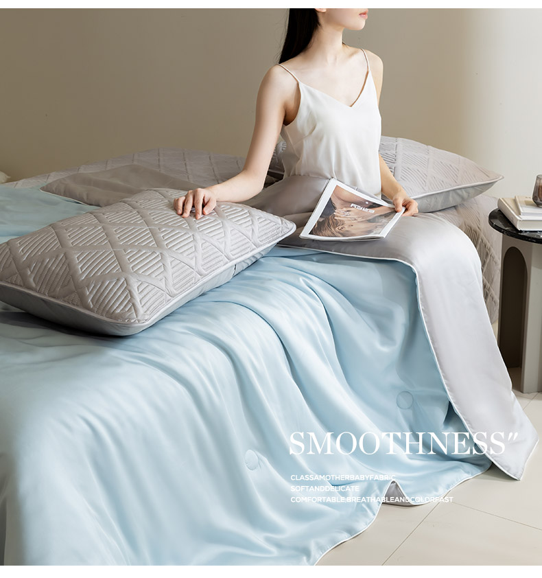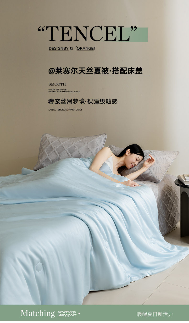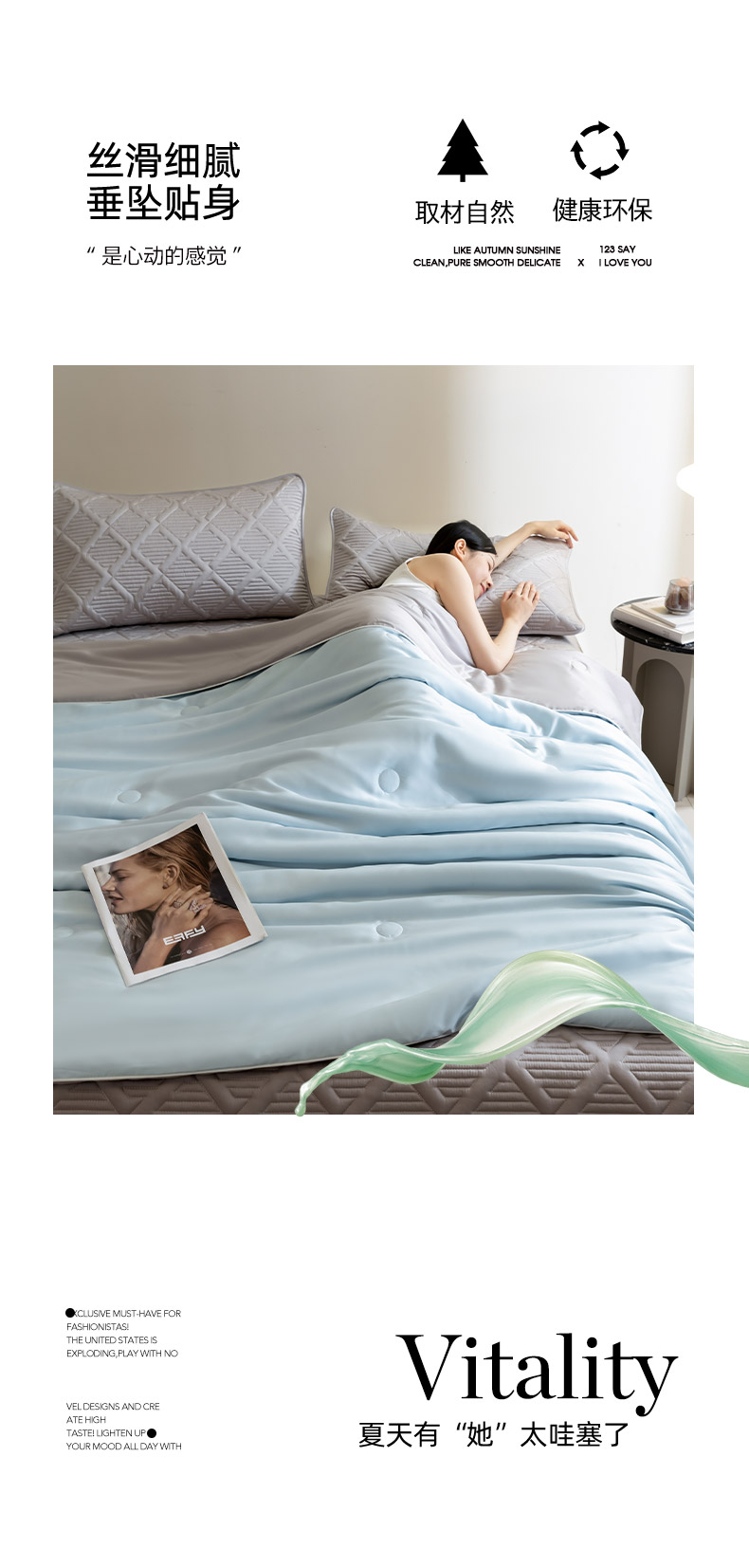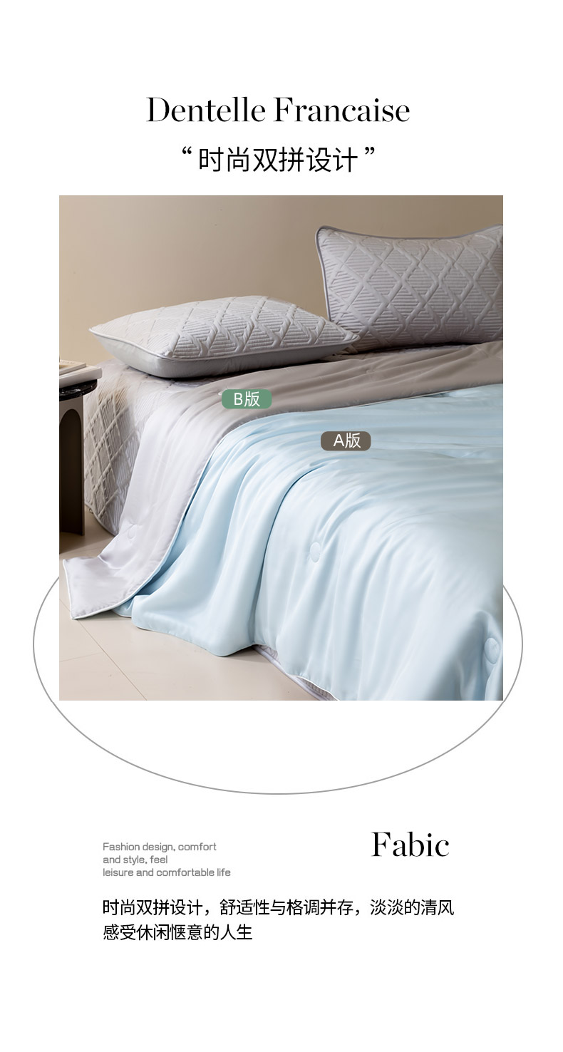 • 91家纺网 家纺一手货源 找家纺 吾诺家居 2026春夏新款双拼色莱赛尔天丝夏被夏凉被空调被-天纯系列 天丝-湖水兰
