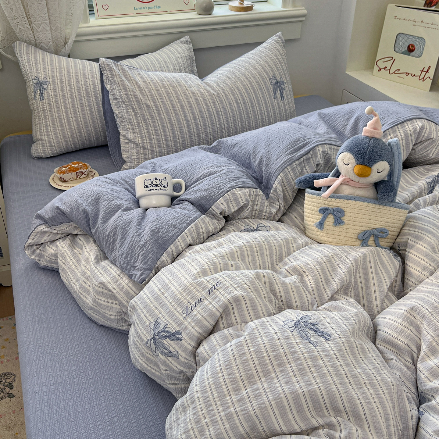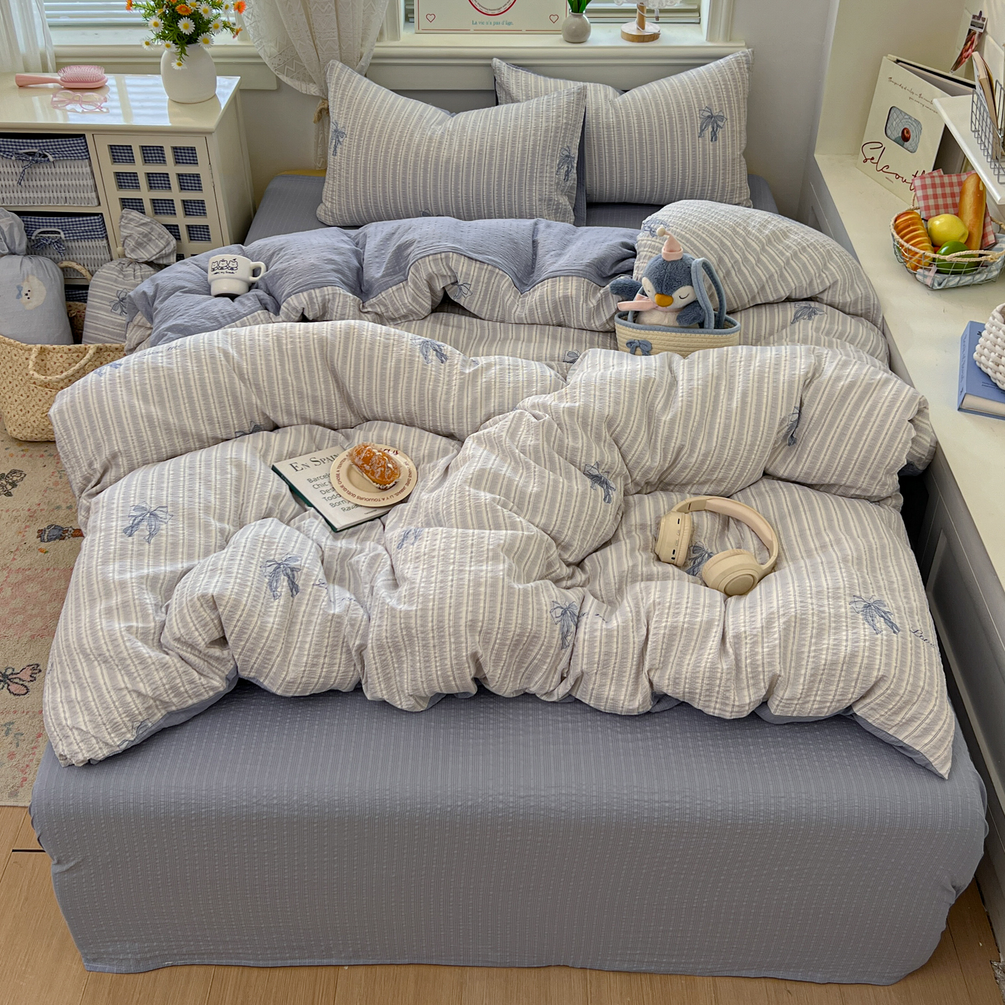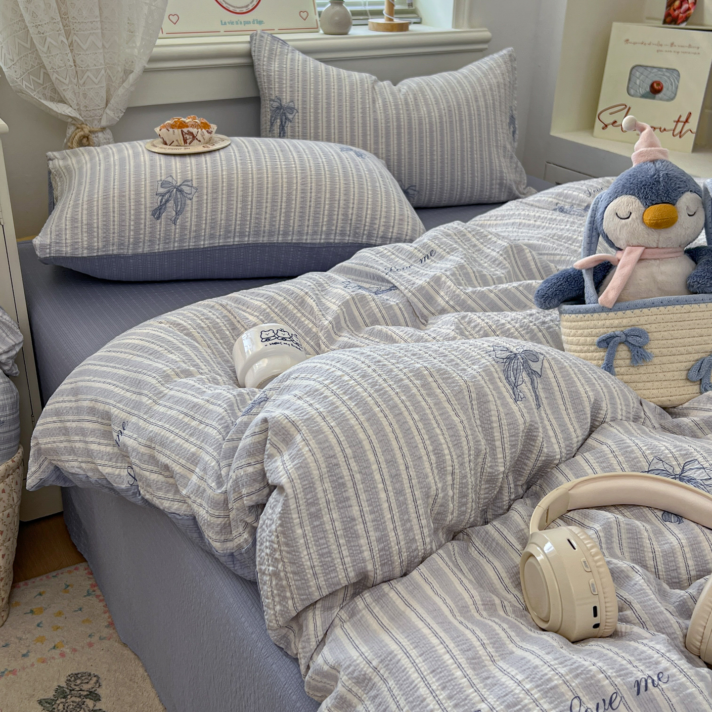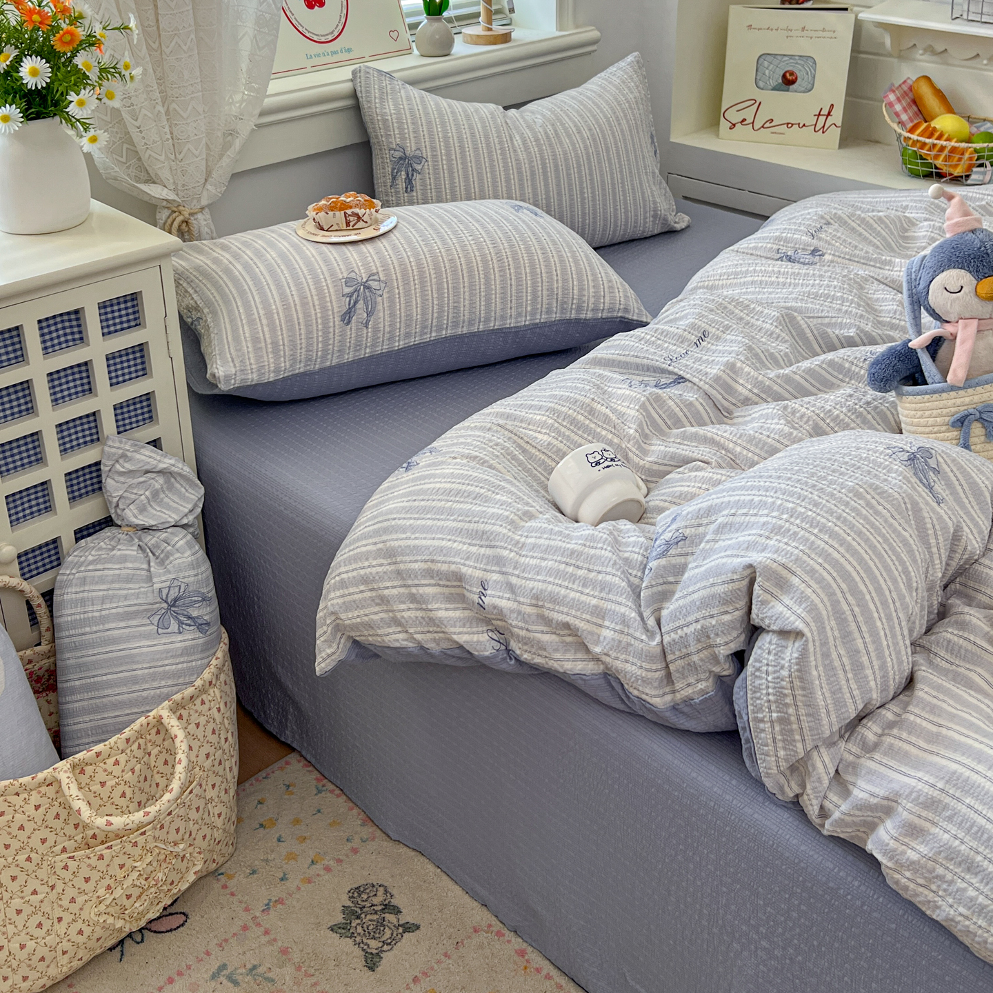 暖伊家居 2026新款糖果小布袋泡芙纱四件套 海盐蝴蝶结