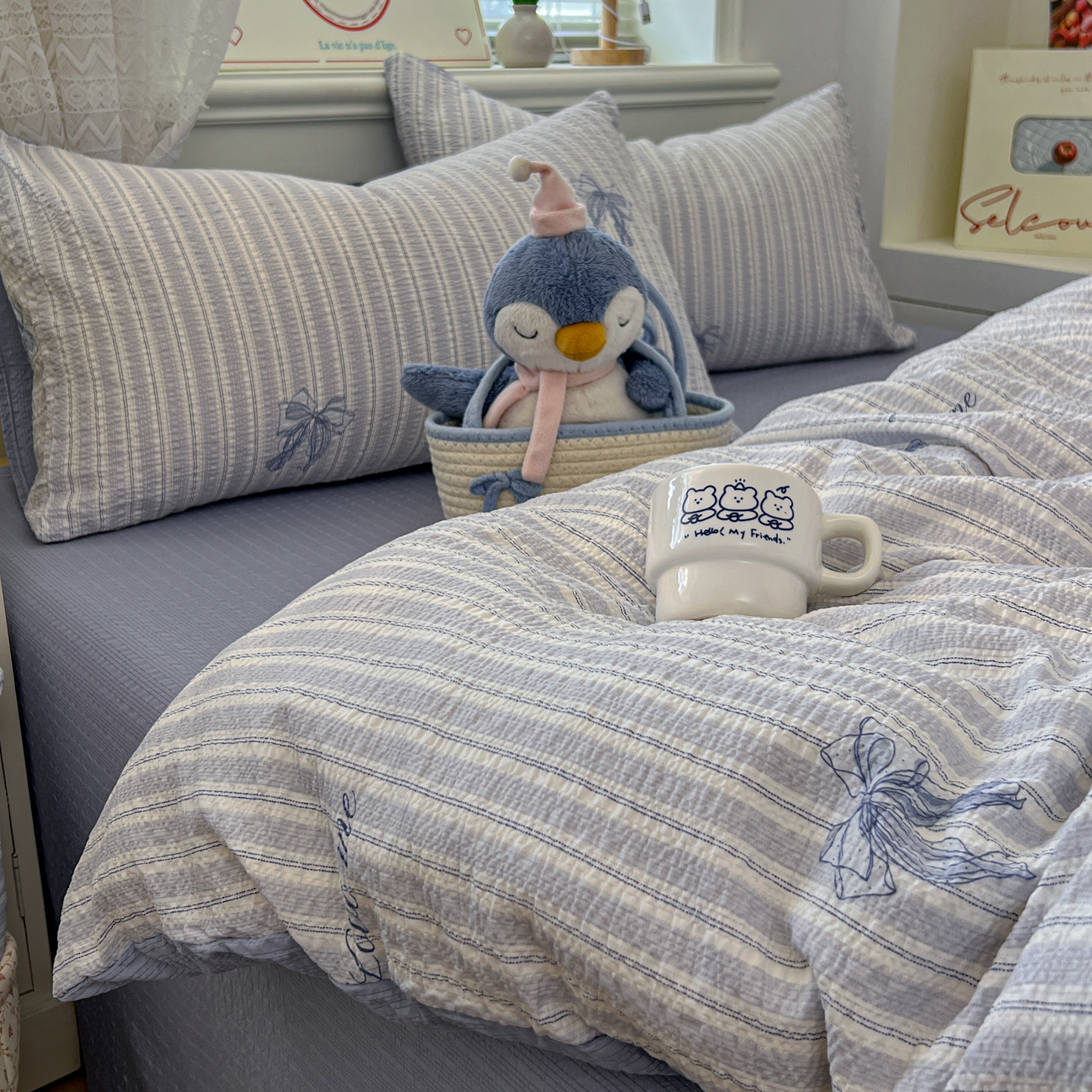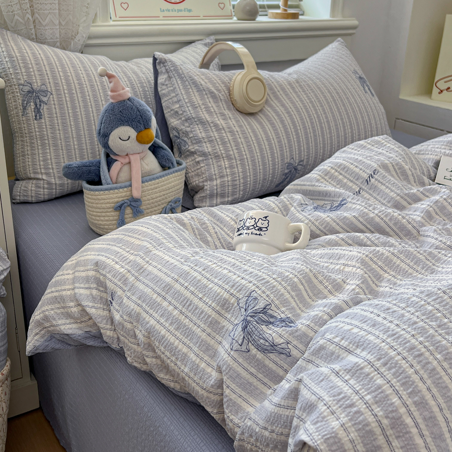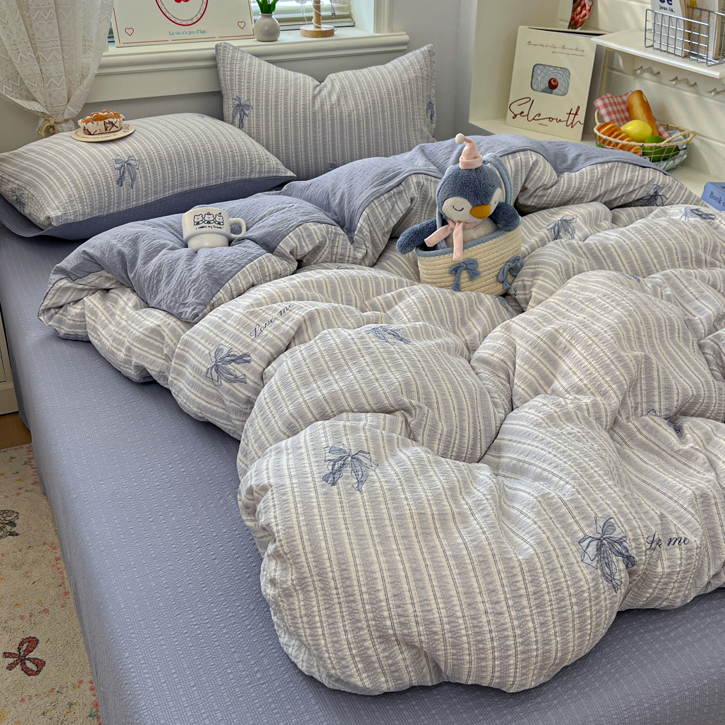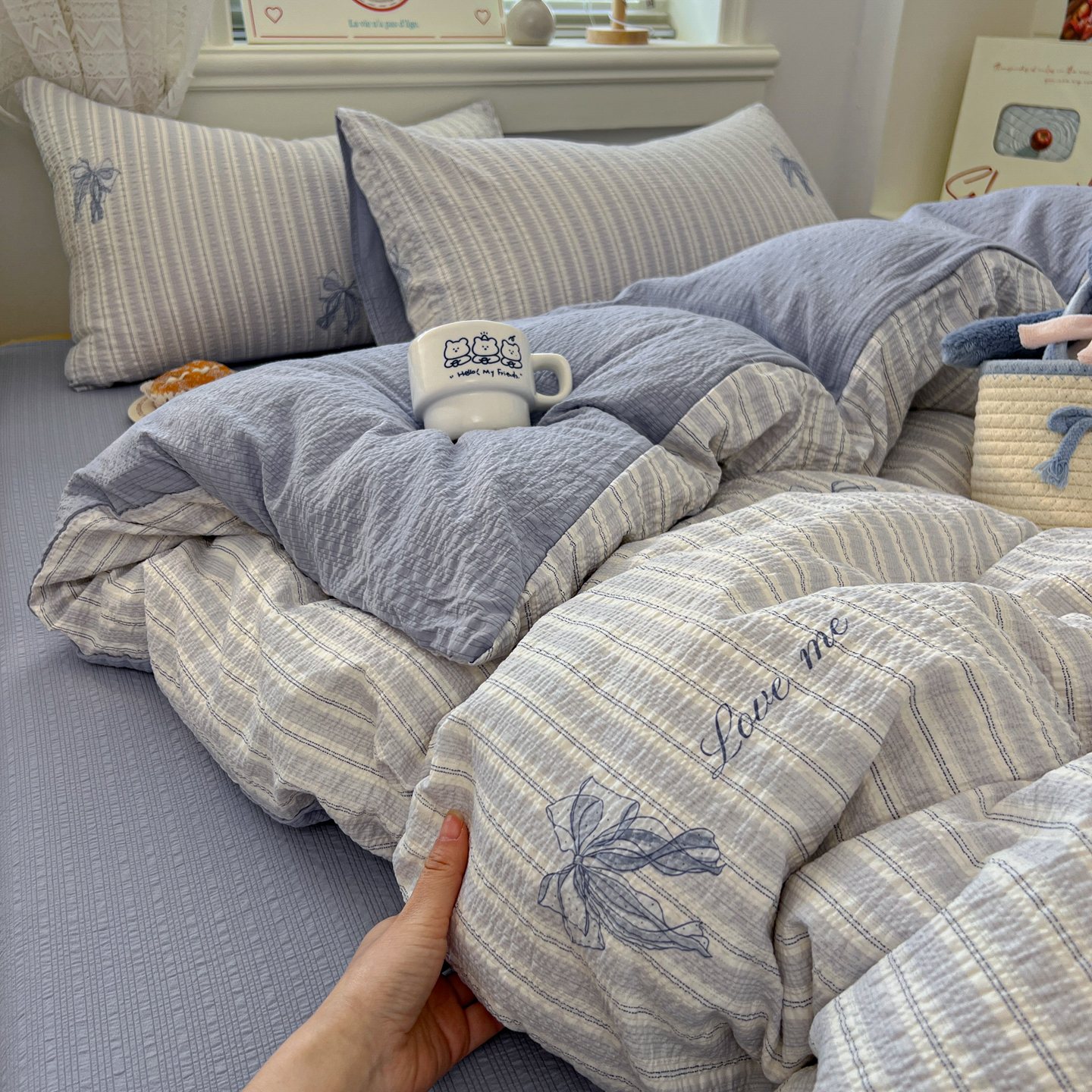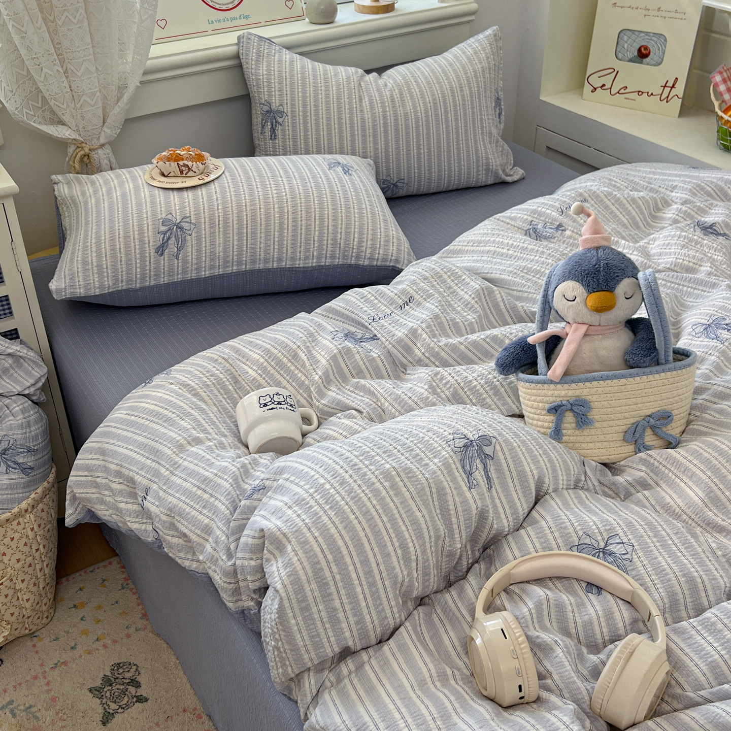 暖伊家居 2026新款糖果小布袋泡芙纱四件套 海盐蝴蝶结