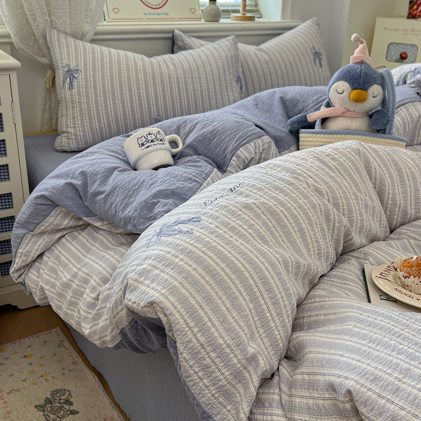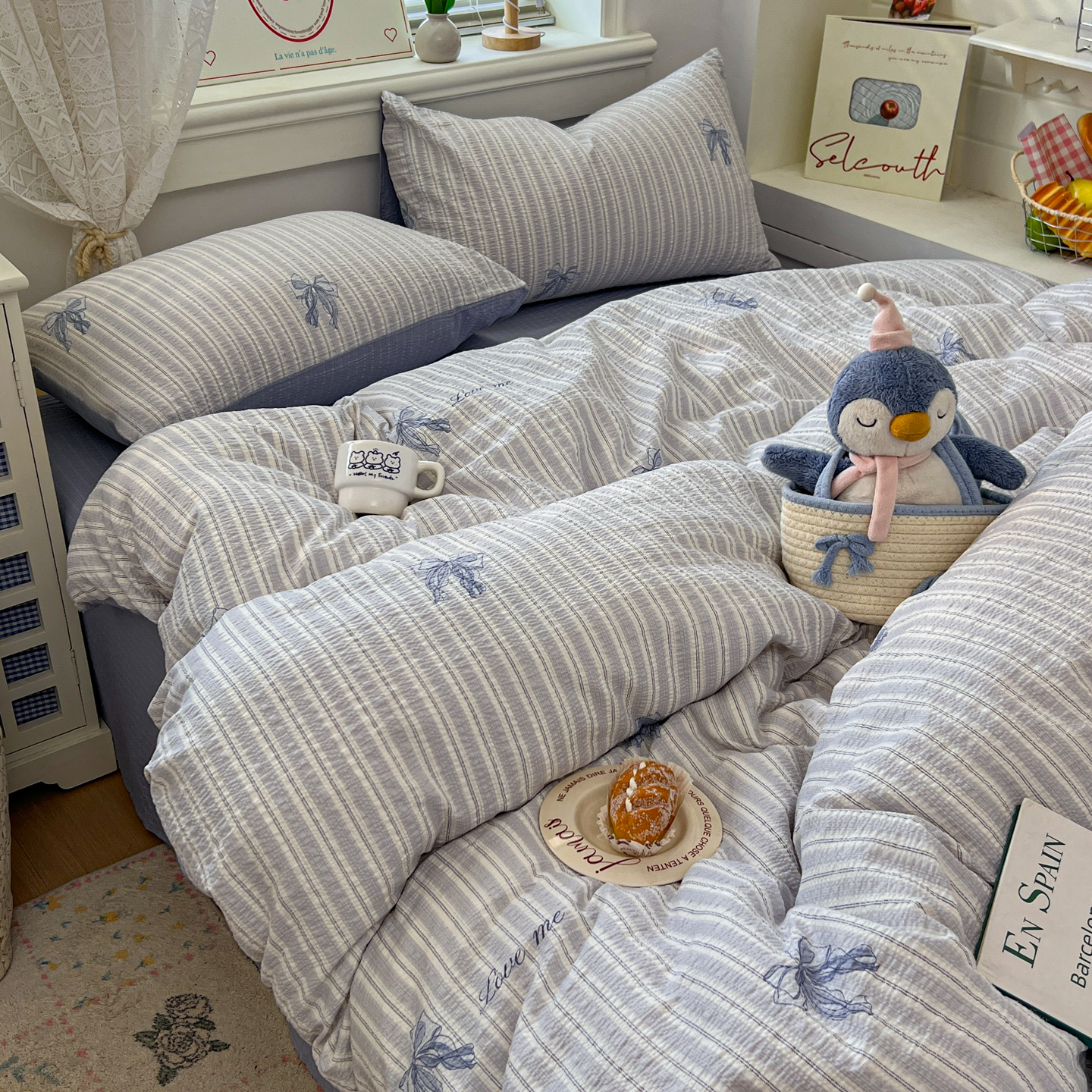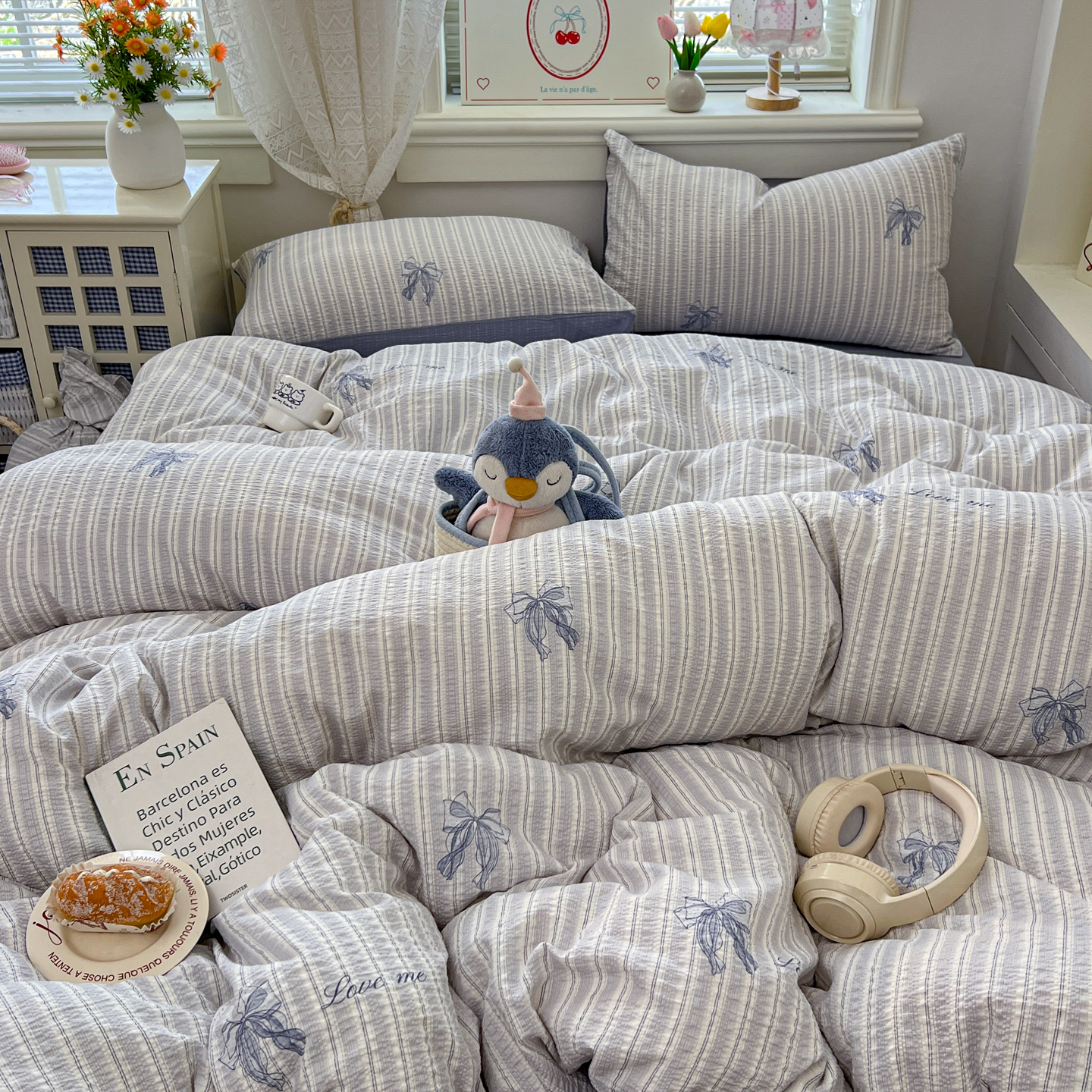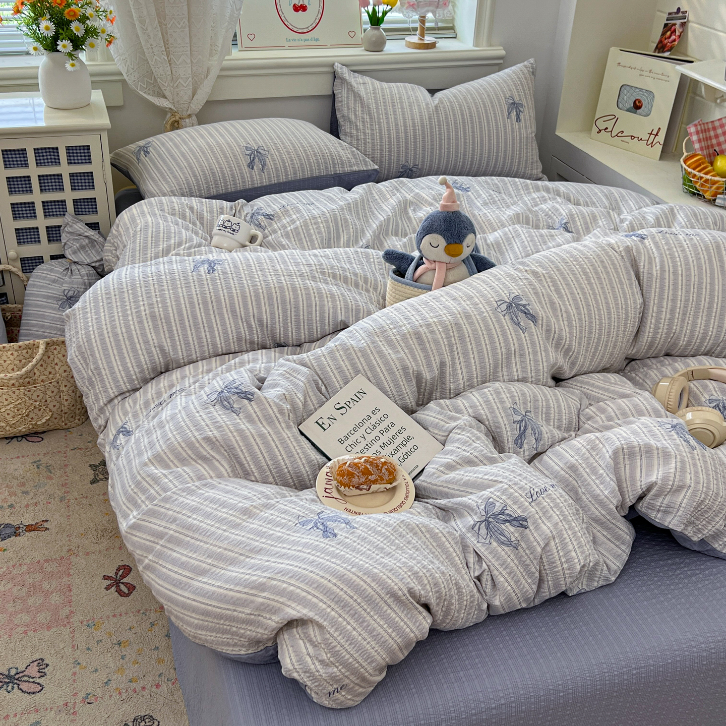 暖伊家居 2026新款糖果小布袋泡芙纱四件套 海盐蝴蝶结