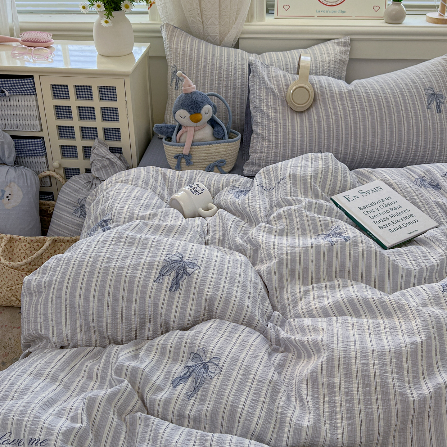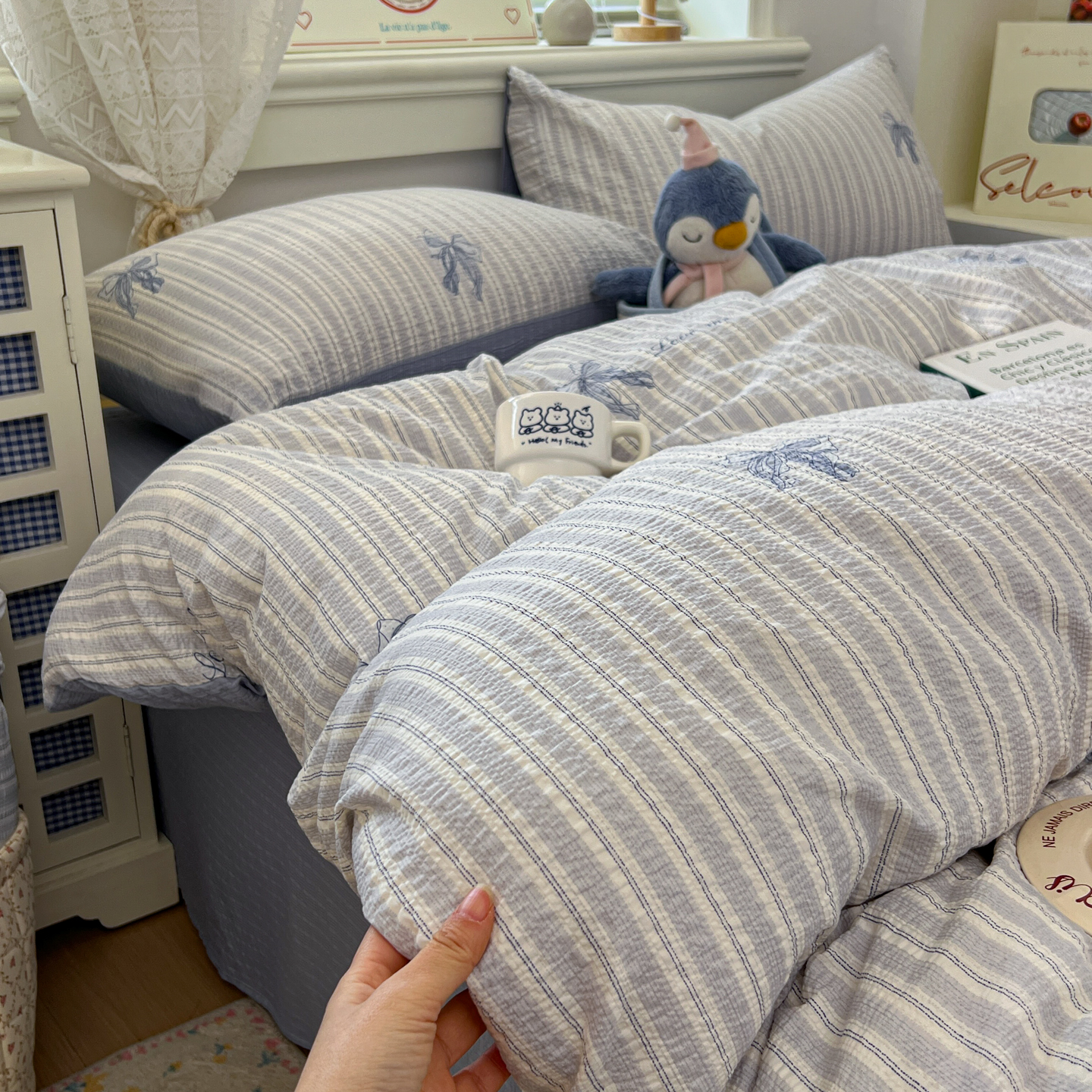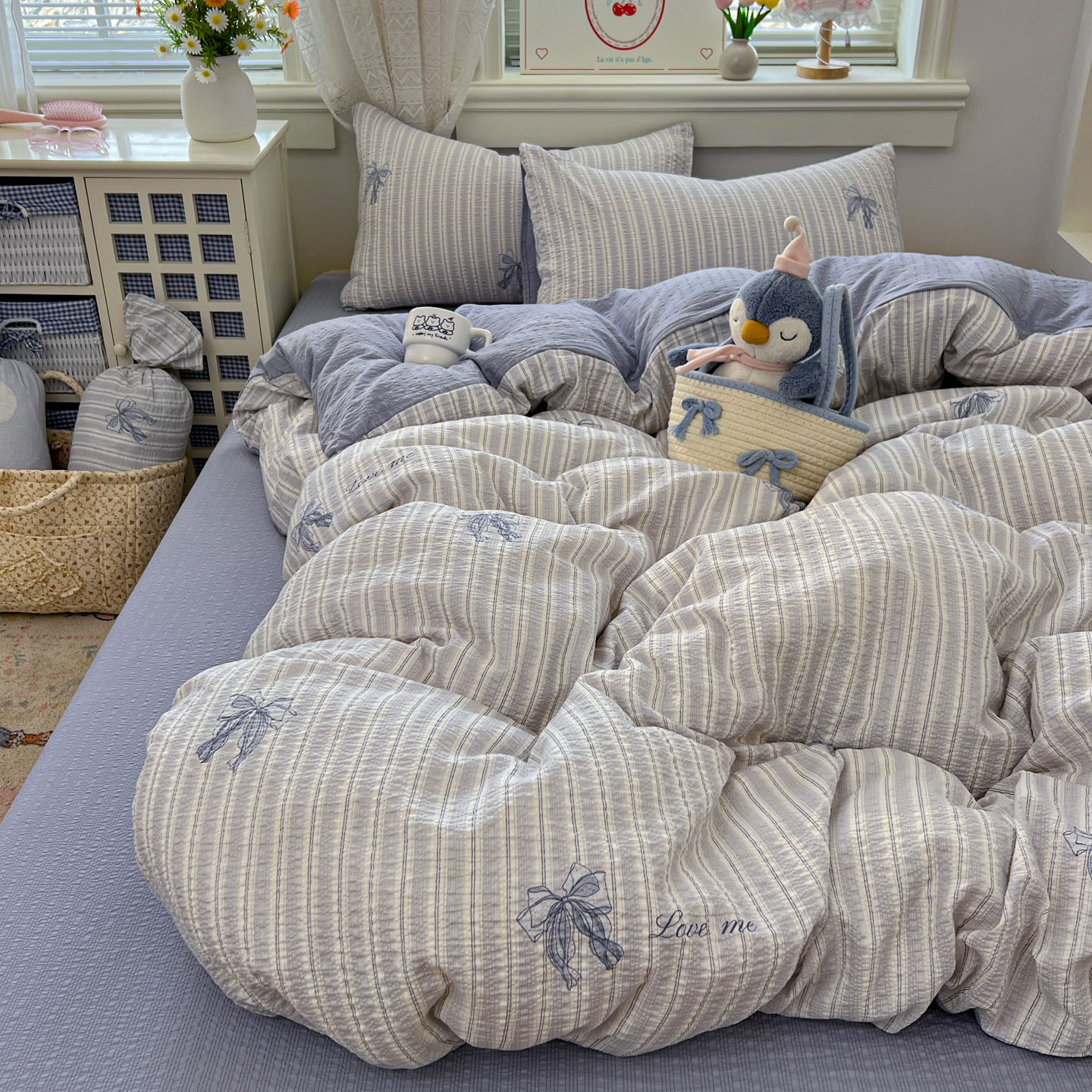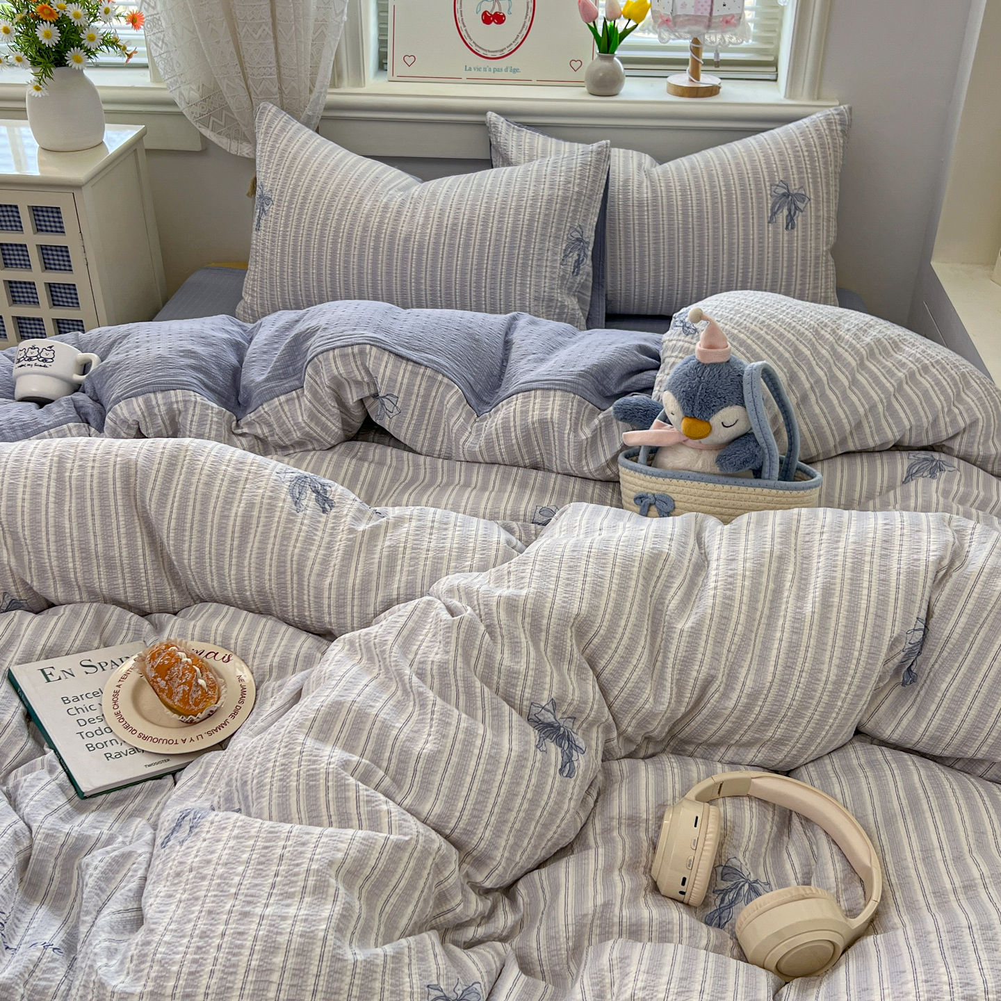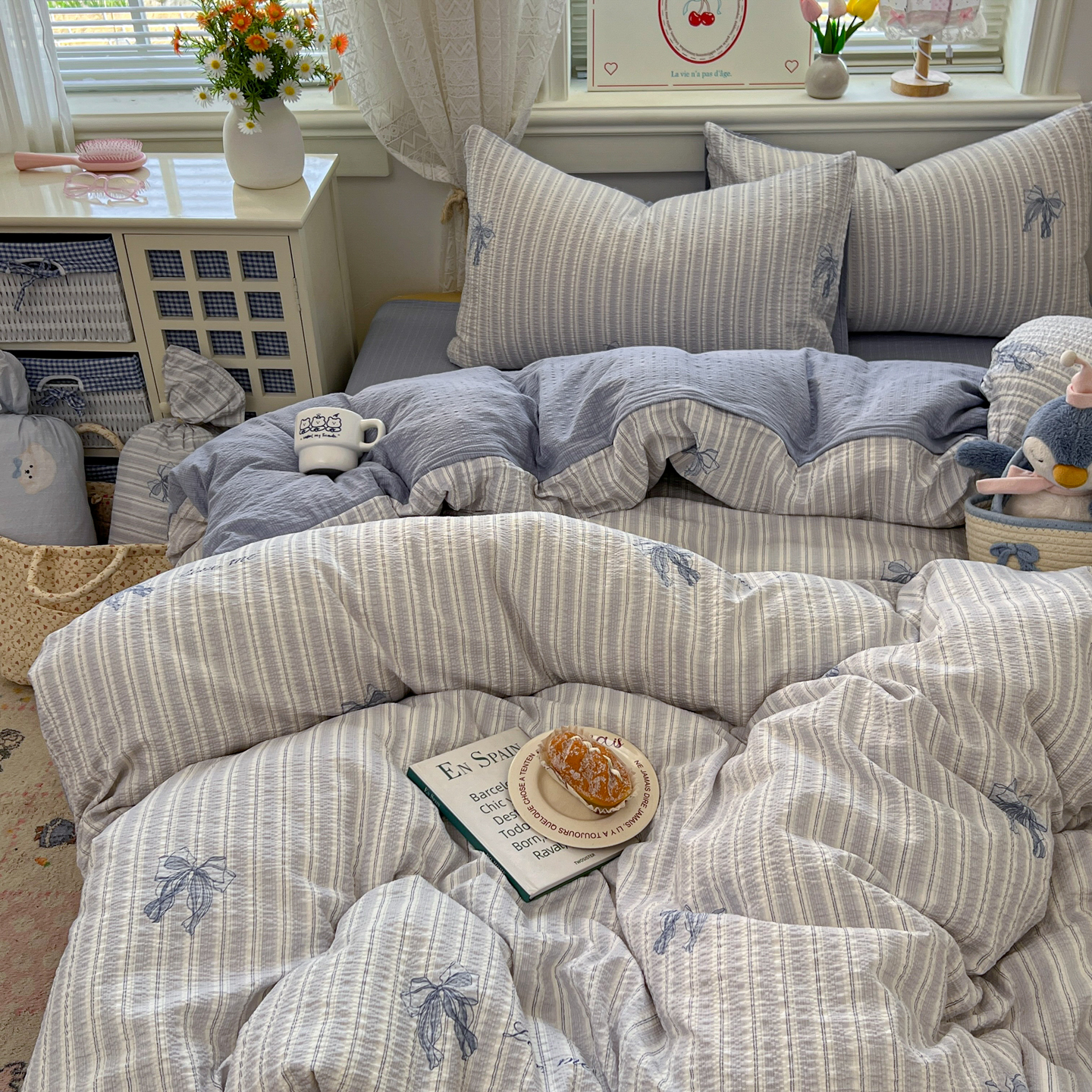 暖伊家居 2026新款糖果小布袋泡芙纱四件套 海盐蝴蝶结
