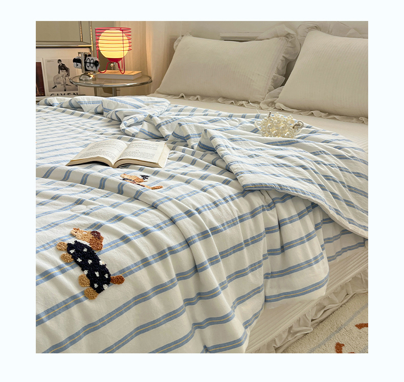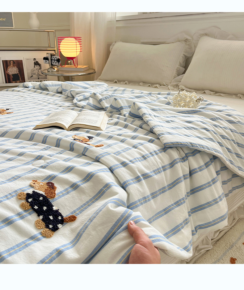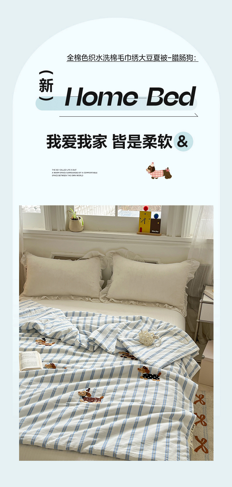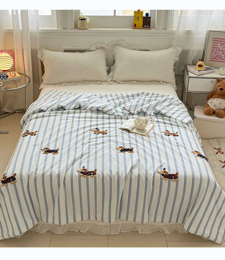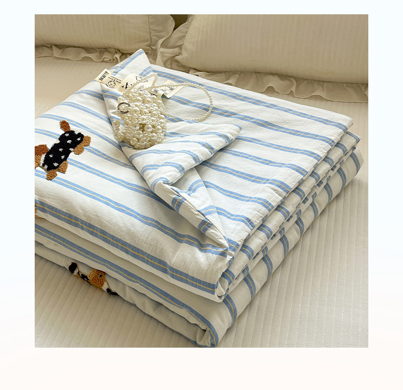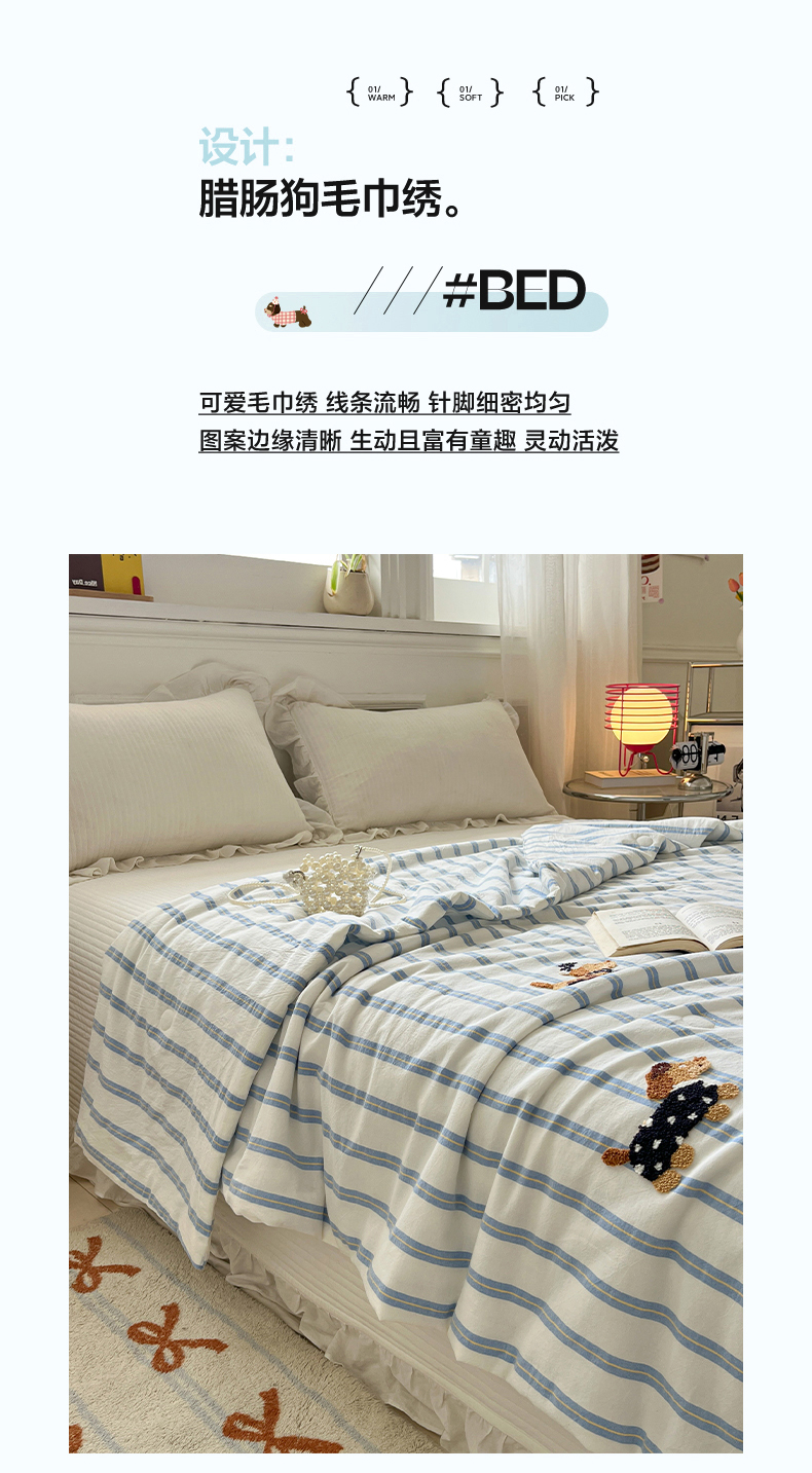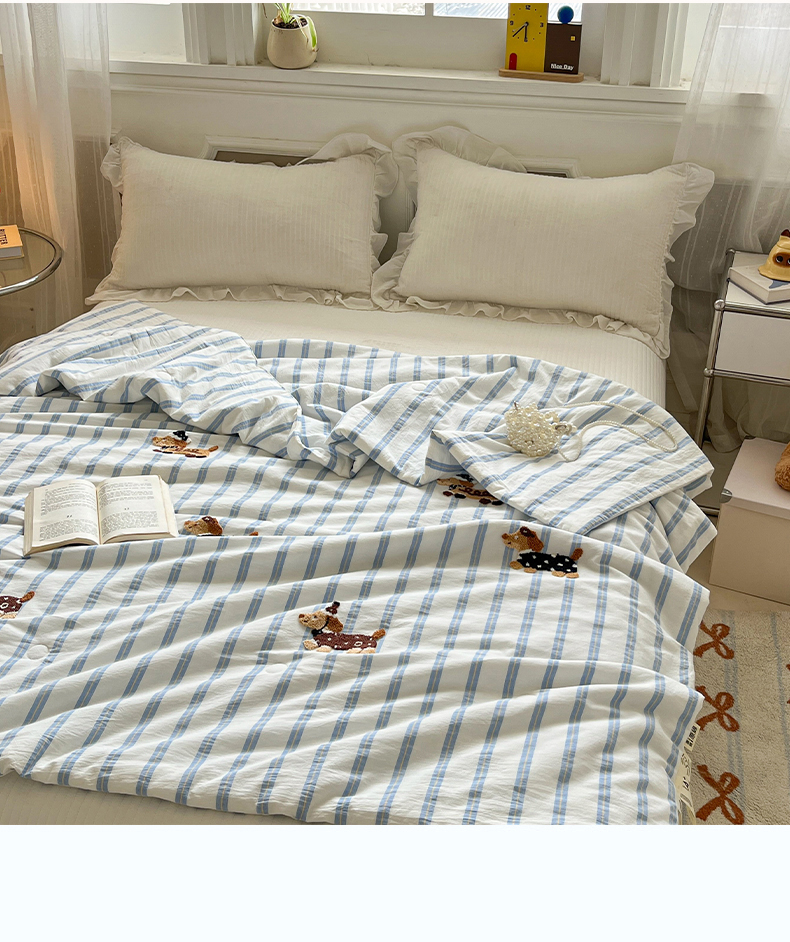 (总)一加一 2026新款全棉色织水洗棉毛巾绣大豆夏被夏凉被空调被-腊肠狗,腊肠狗-粉条,腊肠狗-海盐,腊肠狗-灰条,腊肠狗-蓝调,腊肠狗-奶白,腊肠狗-樱花
