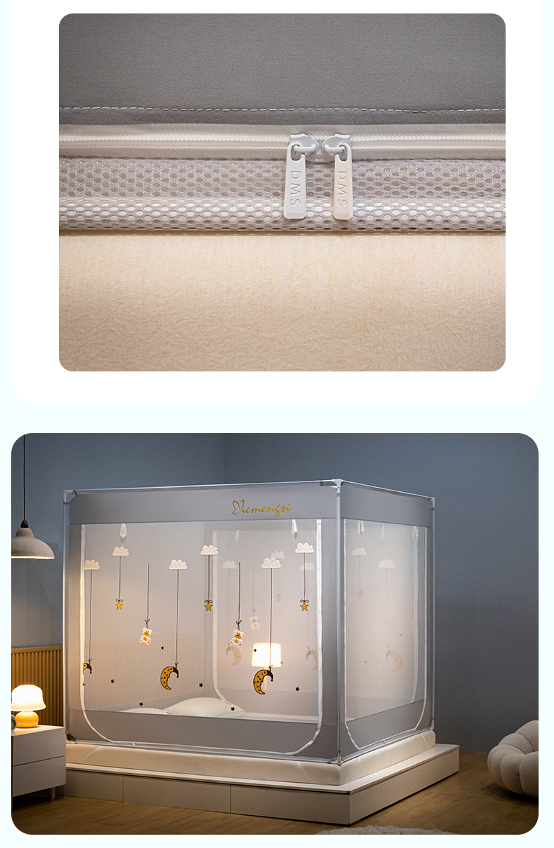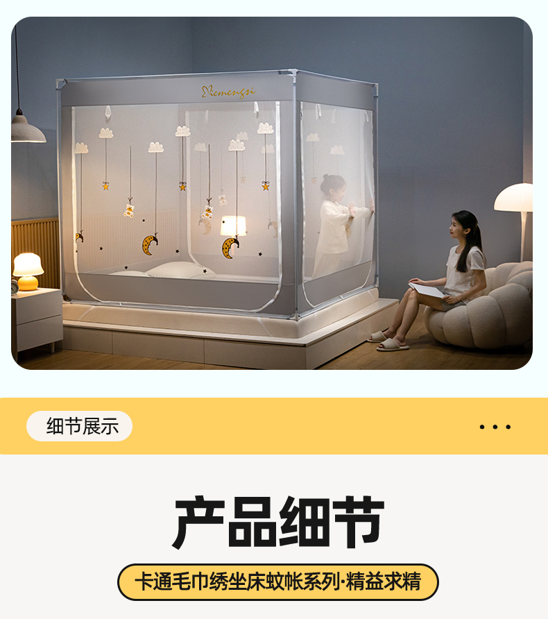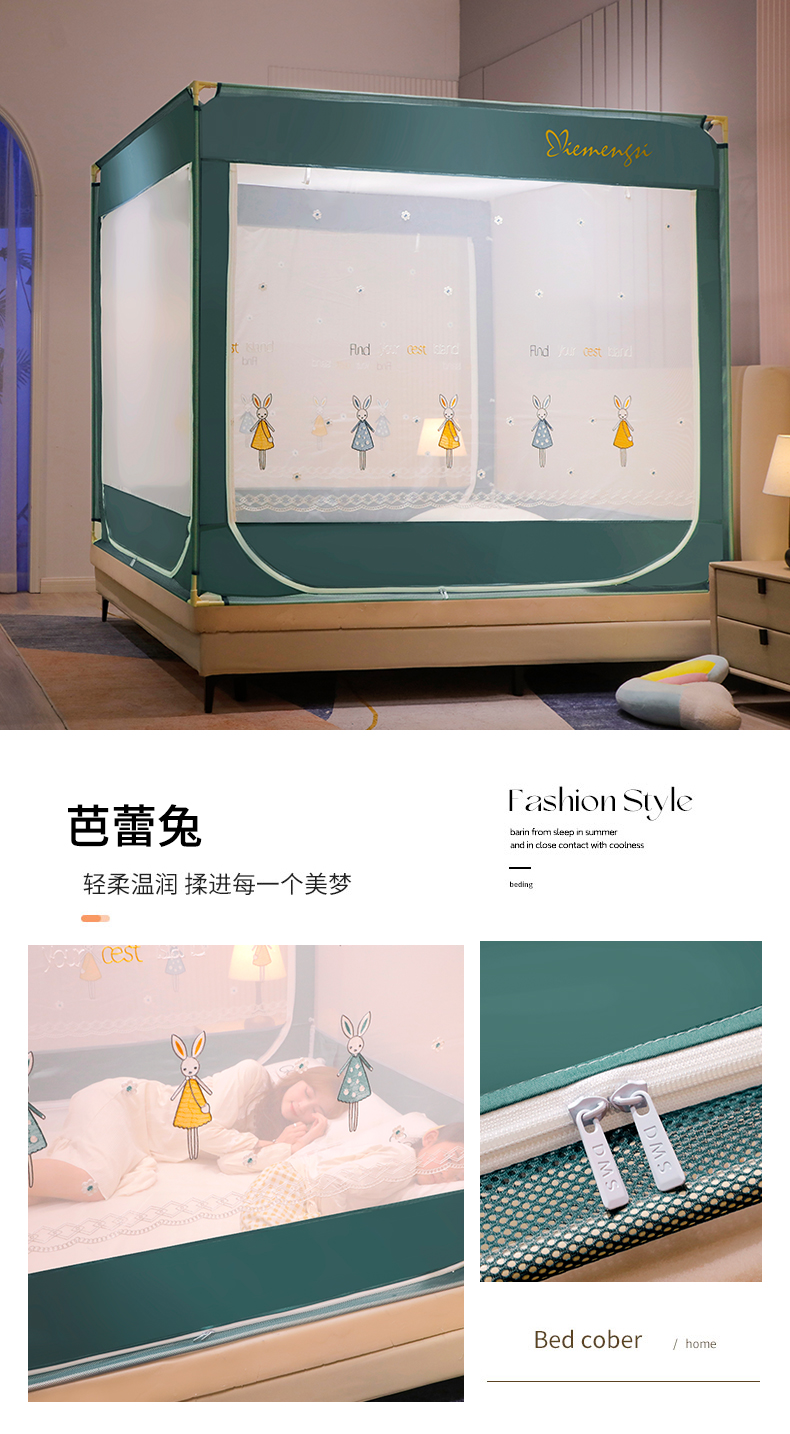 (总)飞轮海蚊帐 2025新款三开门方顶花边防摔遮光蚊帐-Z39,你好蛙,不许动,快乐家族,生活有趣,熊猫宝
