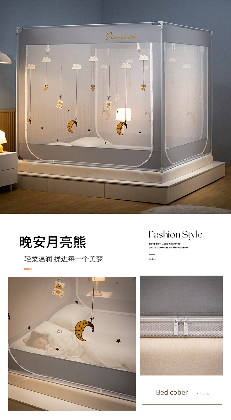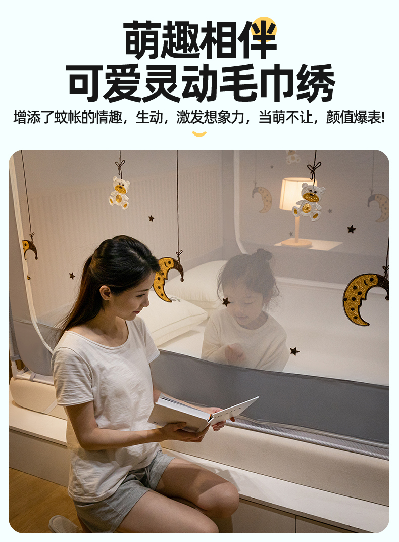 商品名称:飞轮海蚊帐 2026春夏新款卡通毛巾绣坐床蚊帐-Z79刺绣款 晚安月亮熊