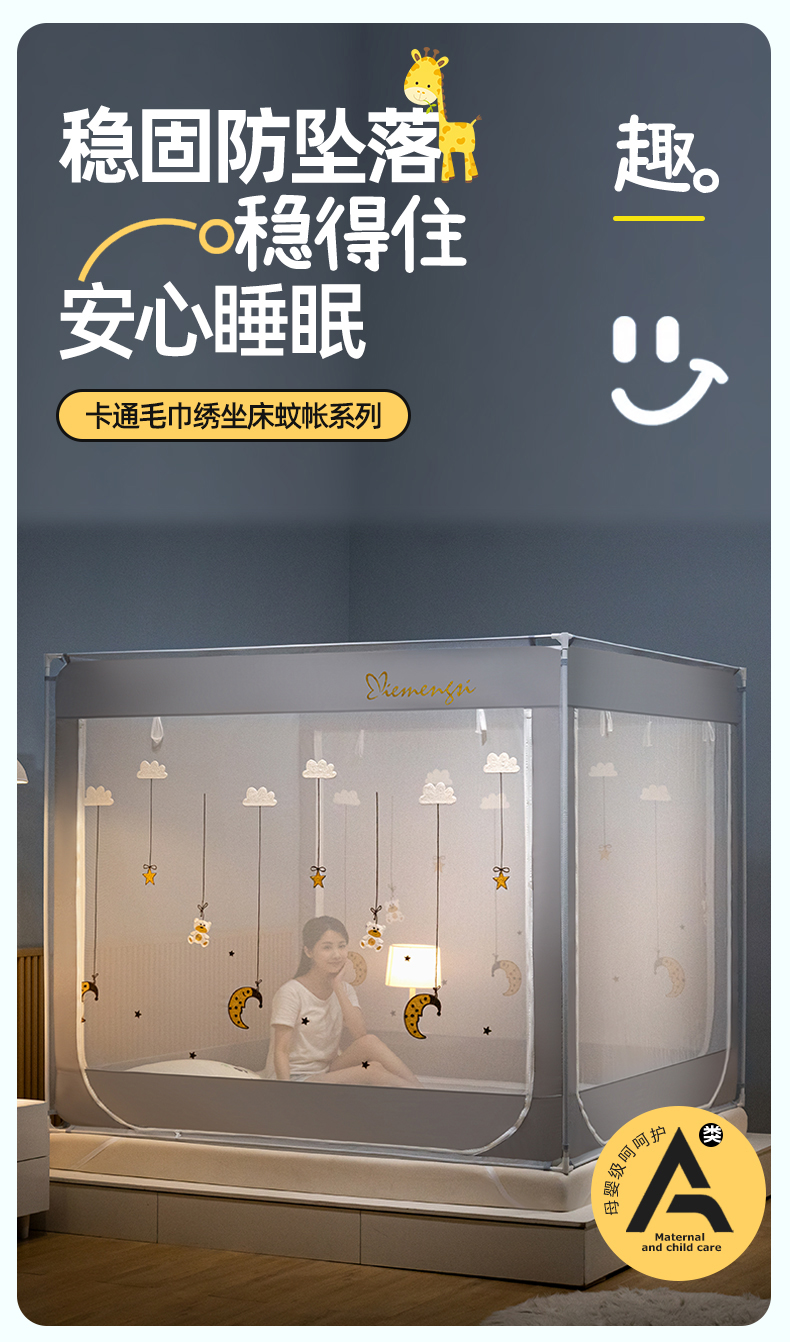 (总)飞轮海蚊帐 2026春夏新款卡通毛巾绣坐床蚊帐-Z79刺绣款,布偶小熊,芭蕾兔,彩色小鹿(宾利蓝),彩色小鹿(嫩黄),鲸鱼于帆船,摩天轮,蒲公英,晚安月亮熊,舞动蜻蜓,幸福之家,宇航员,长颈鹿与鳄鱼