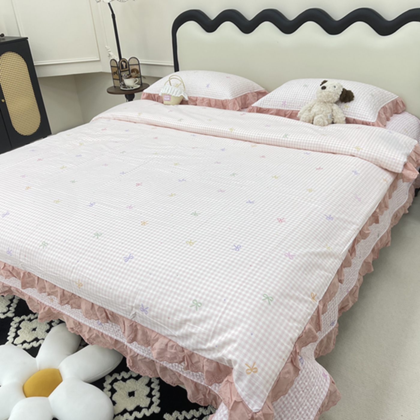 禧瑞谷 2026新款法式纯棉床盖韩版花边床盖三件套四件套 星星人