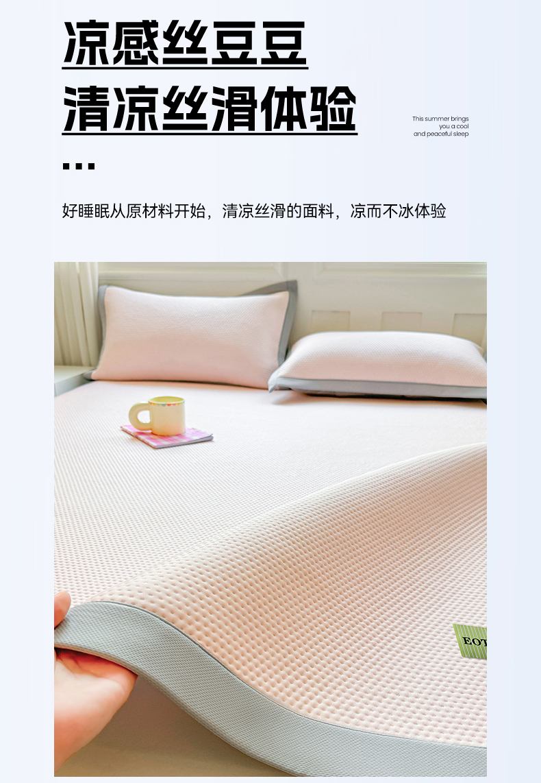 • 91家纺网 家纺一手货源 找家纺 (总)雯豆家纺 2026春夏新款凉感丝豆豆床笠三件套加厚三明治床垫保护套,凉感丝豆豆床笠-柏林蓝,凉感丝豆豆床笠-薄雾灰,凉感丝豆豆床笠-冰川灰,凉感丝豆豆床笠-春辰绿,凉感丝豆豆床笠-海港蓝,凉感丝豆豆床笠-莫奈咖,凉感丝豆豆床笠-胭脂粉
