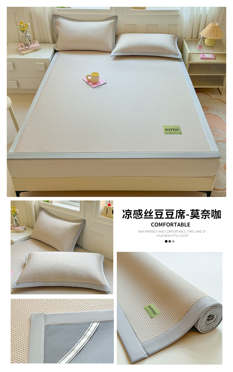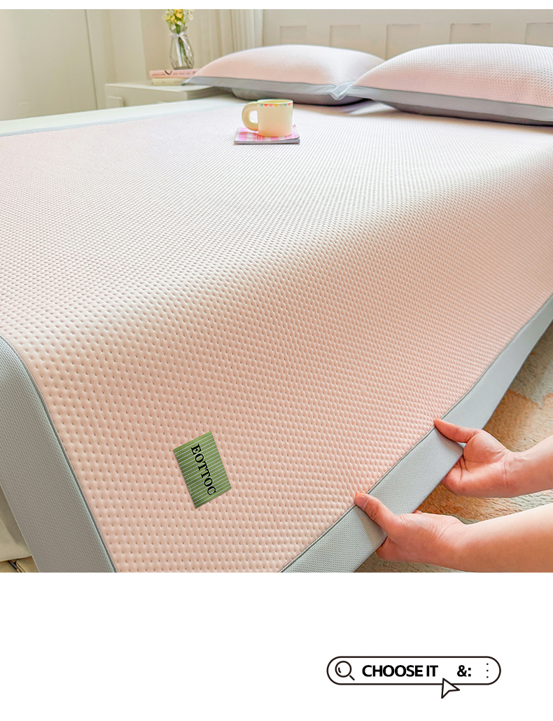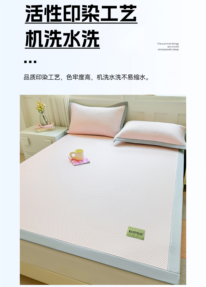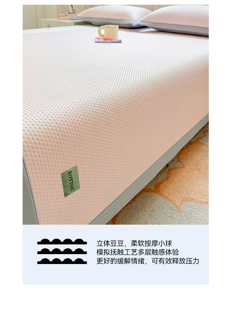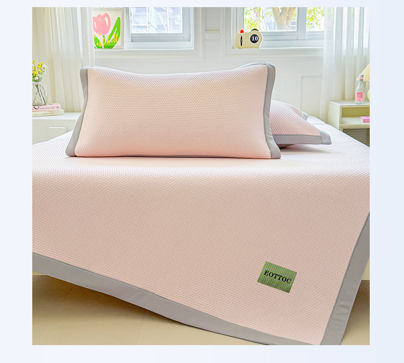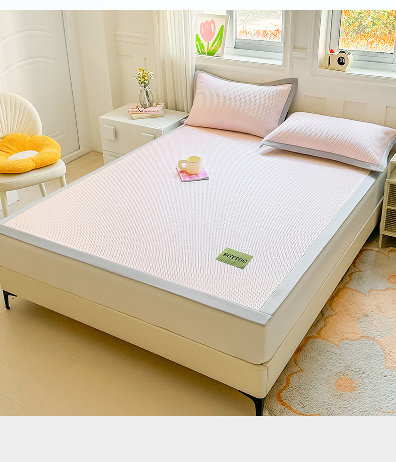 • 91家纺网 家纺一手货源 找家纺 雯豆家纺 2026春夏新款凉感丝豆豆凉席席子三件套冰丝软席三明治款平铺席子 凉感丝豆豆席-胭脂粉