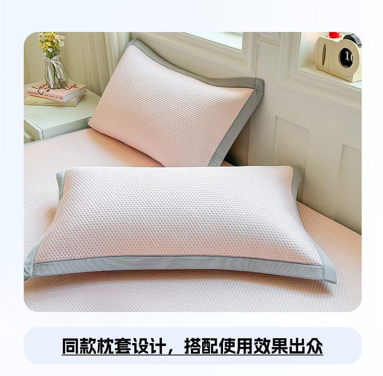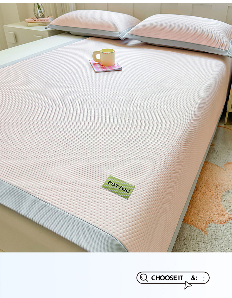 雯豆家纺 2026春夏新款凉感丝豆豆凉席席子三件套冰丝软席三明治款平铺席子 凉感丝豆豆席-胭脂粉