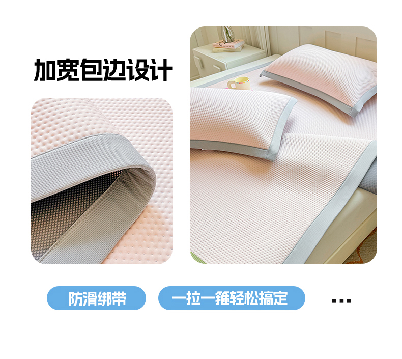 (总)雯豆家纺 2026春夏新款碳光冰丝席子三件套加厚三明治冰丝软席平铺席凉席席子,千鸟格-绑带款-海星蓝,千鸟格-绑带款-千禧粉,千鸟格-绑带款-松石绿,千鸟格-绑带款-香槟金,千鸟格-绑带款-银帆灰,组合图仅供展示不可下单