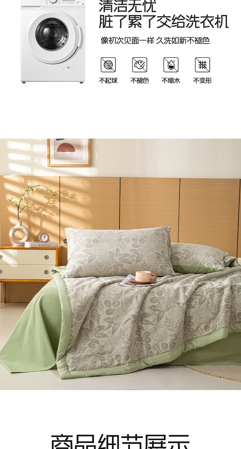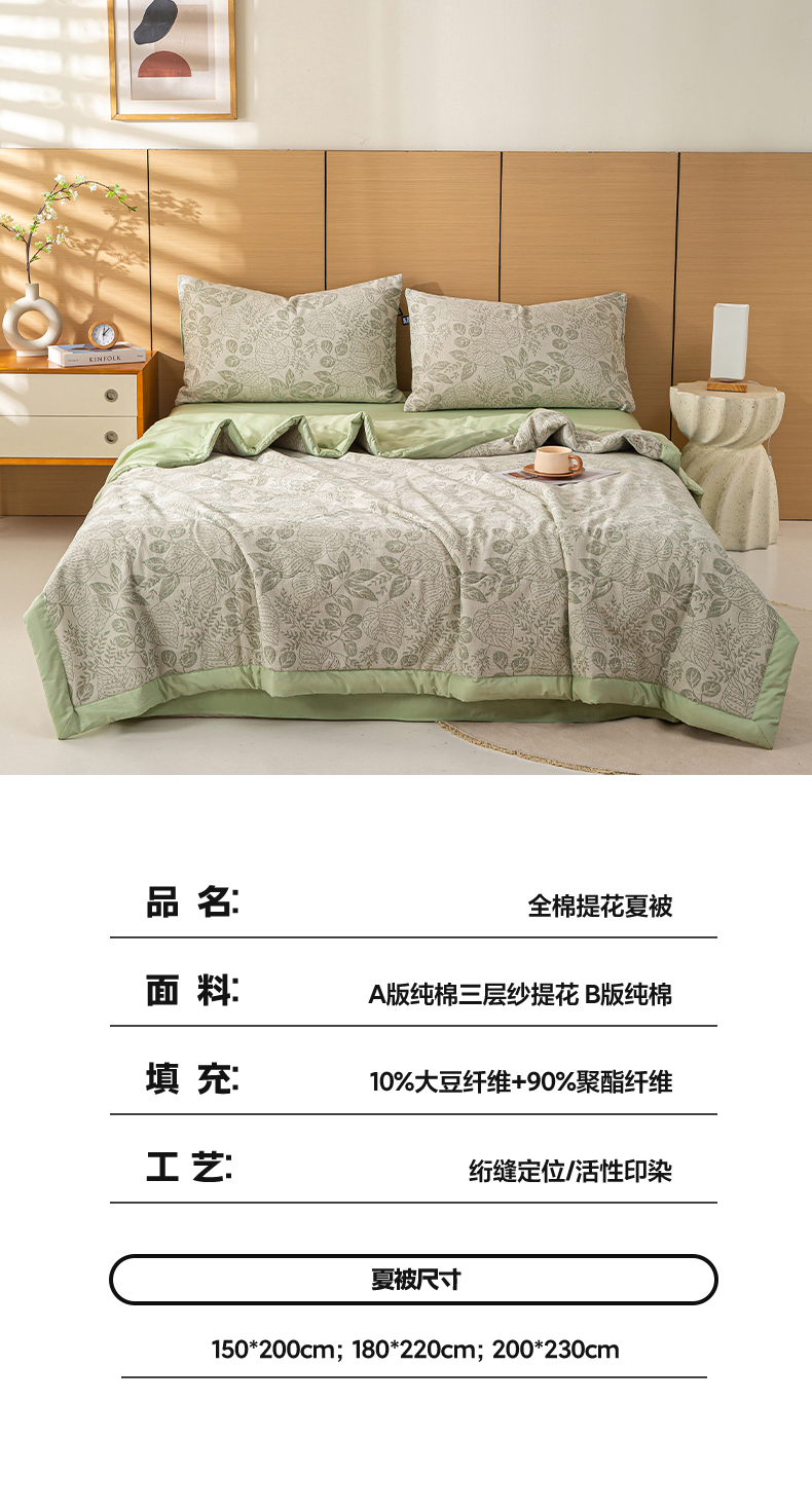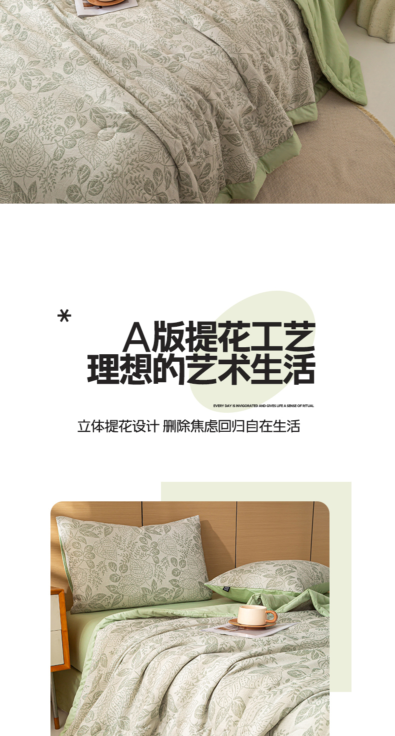 • 91家纺网 家纺一手货源 找家纺 恋人优选 2026新款全棉三层提花夏被空调被 茎叶时光-绿