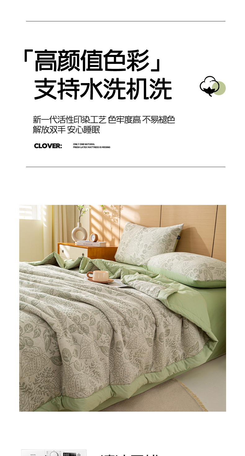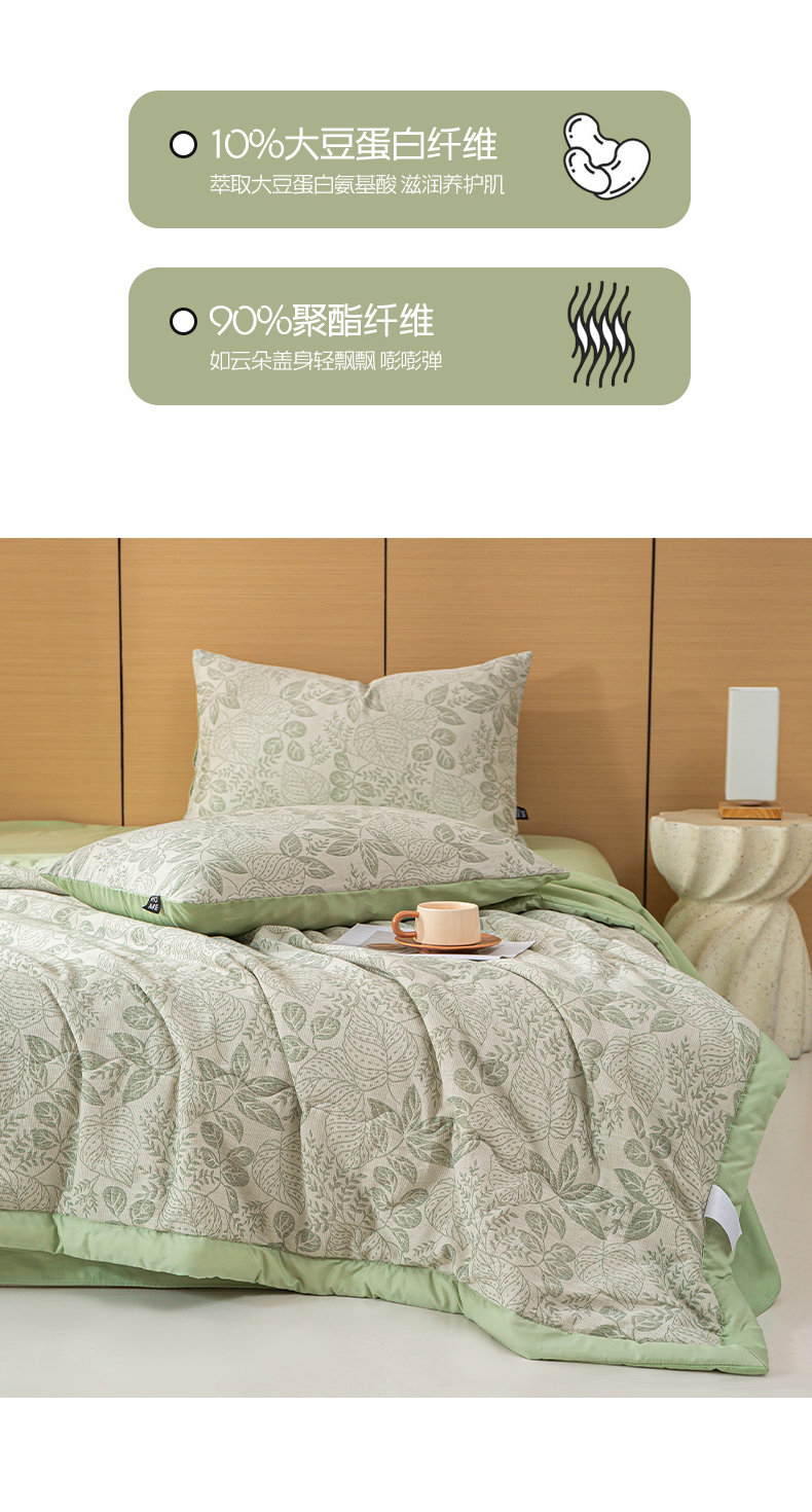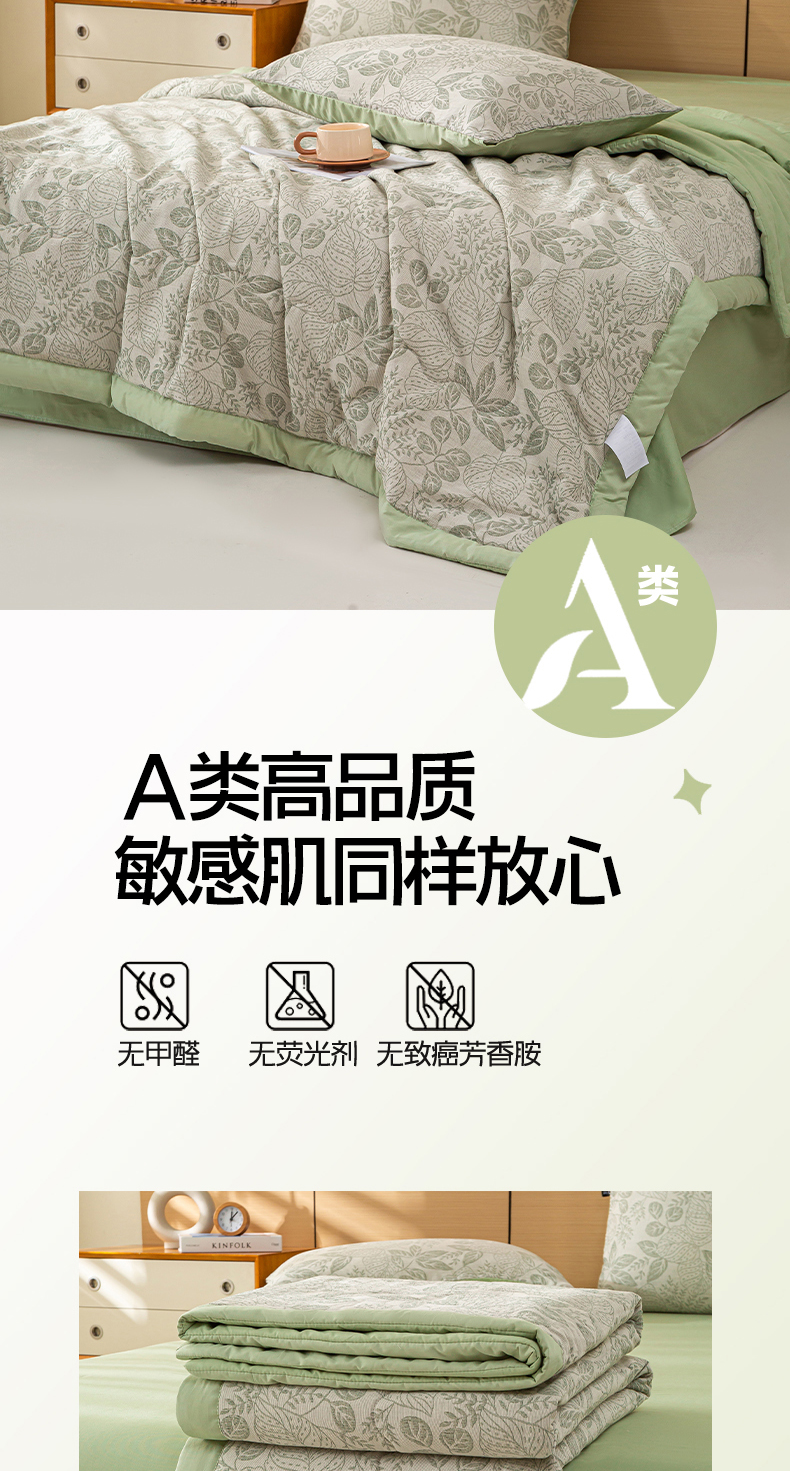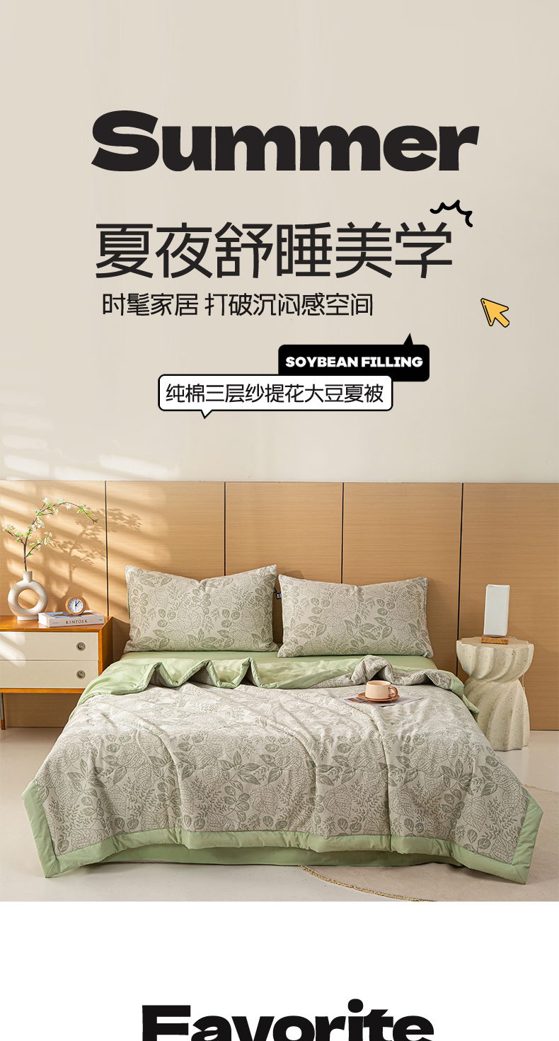 • 91家纺网 家纺一手货源 找家纺 恋人优选 2026新款全棉三层提花夏被空调被 茎叶时光-绿