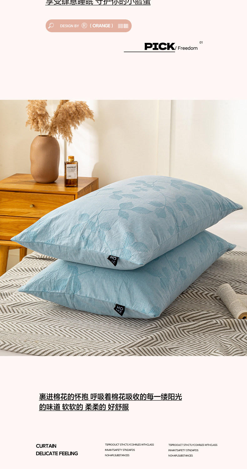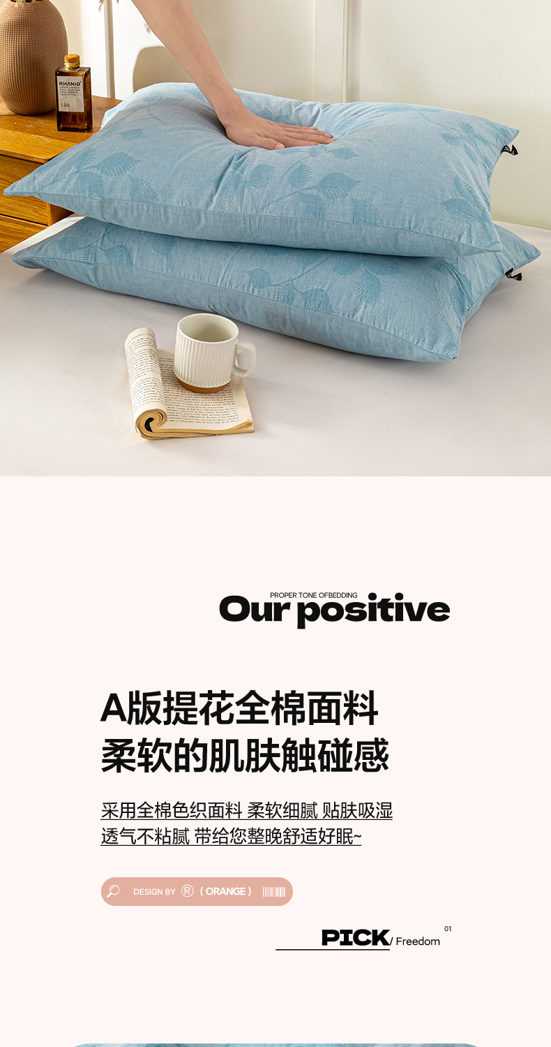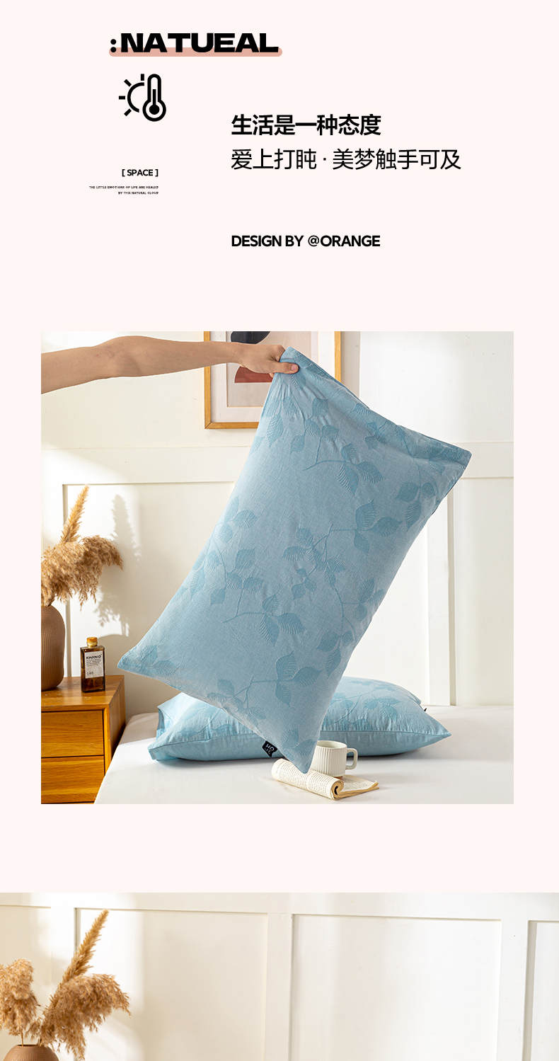 恋人优选 2026新款全棉提花枕套 樱花叶-兰