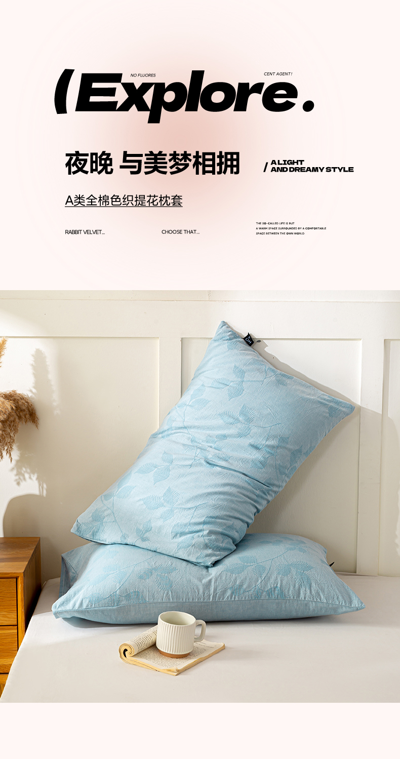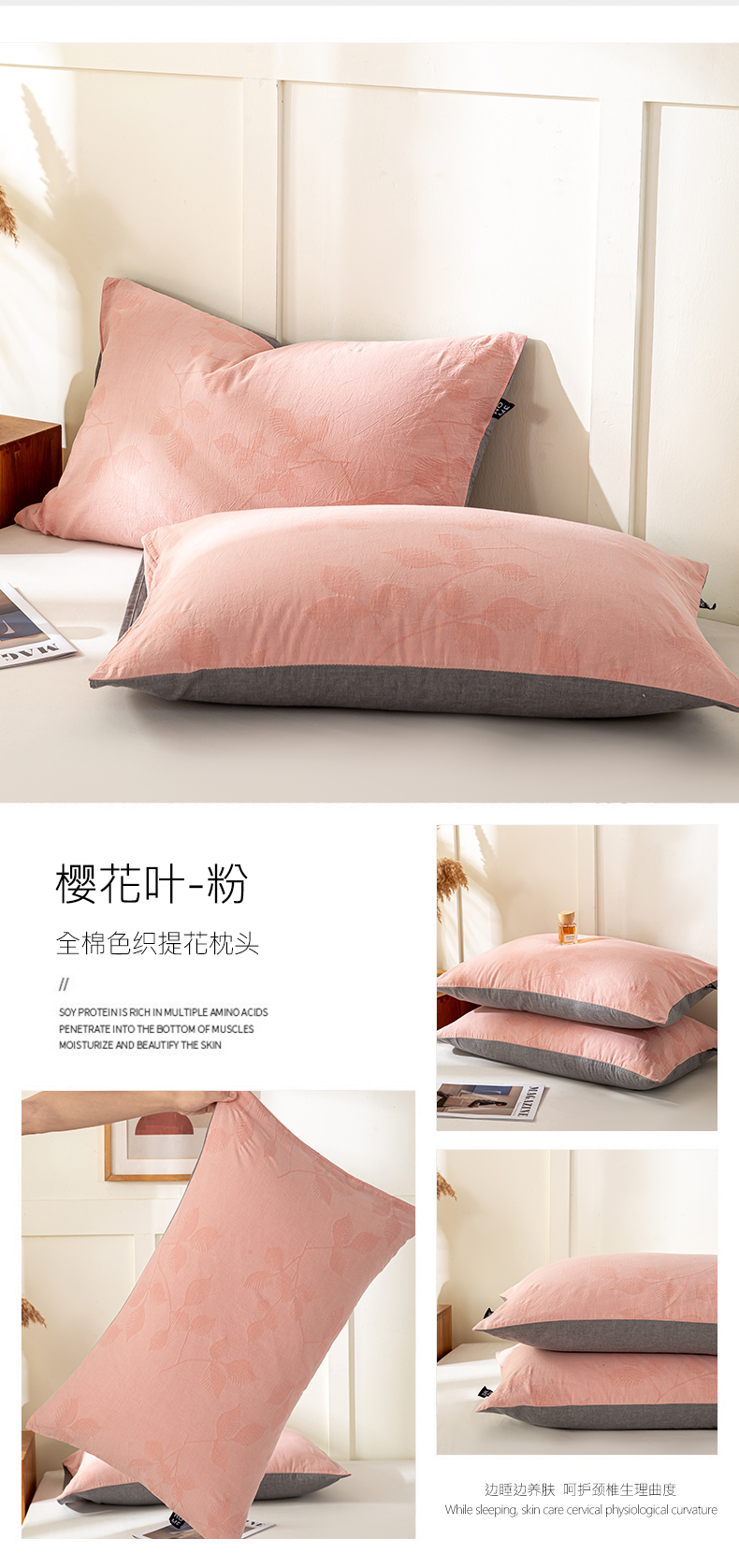 商品名称:恋人优选 2026新款全棉提花枕套 樱花叶-兰