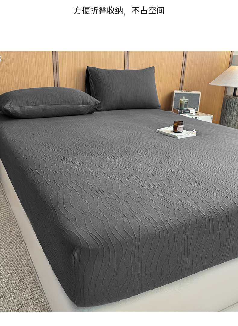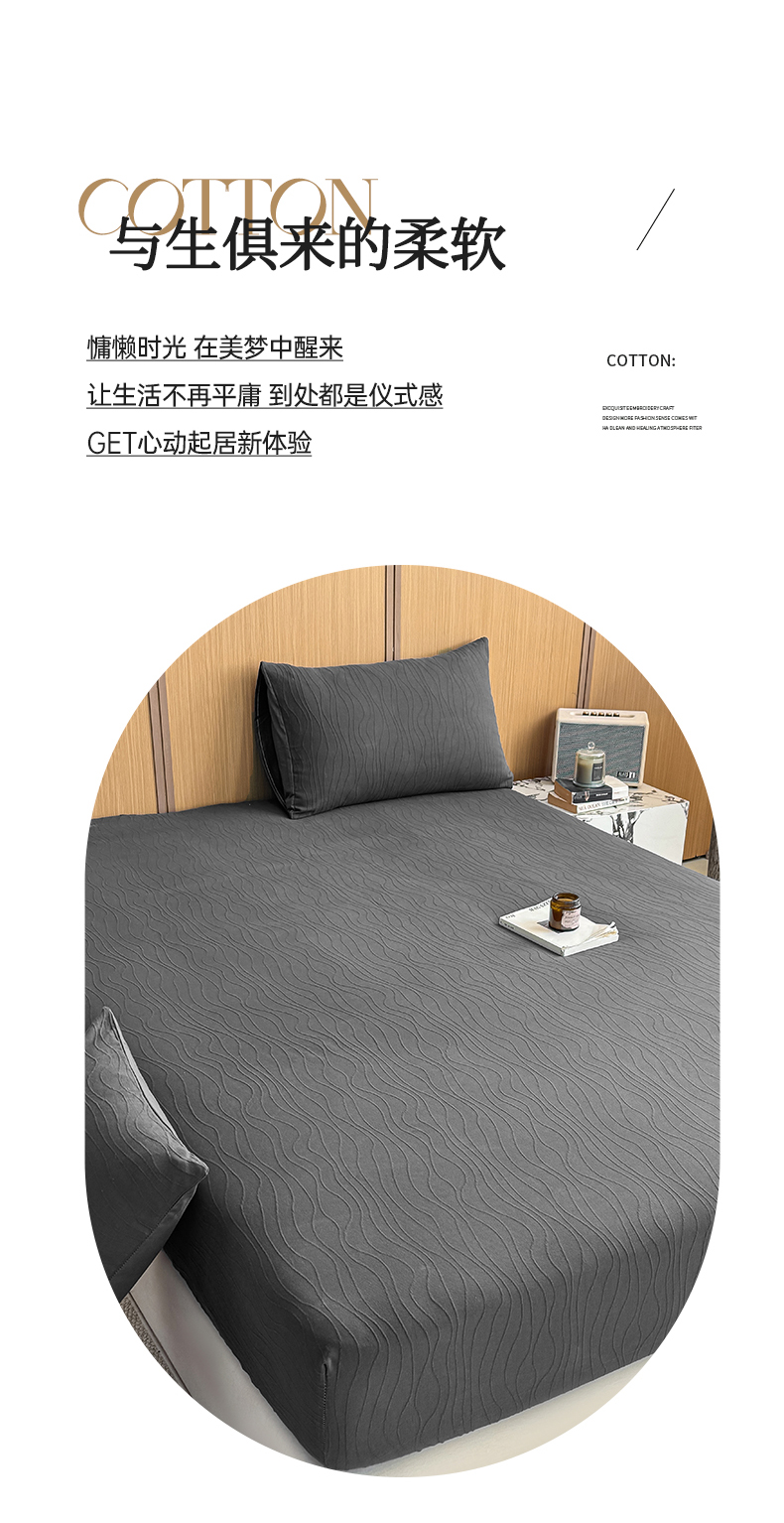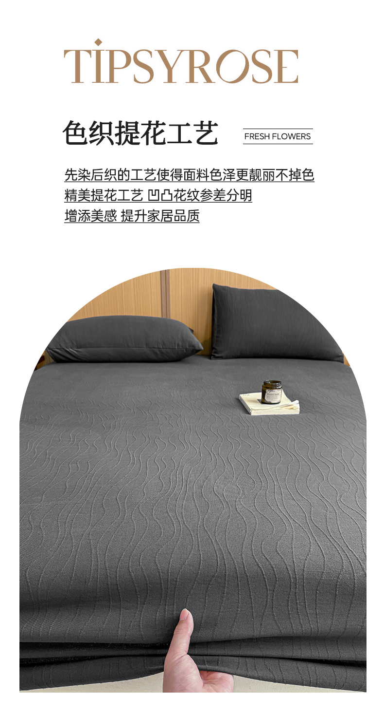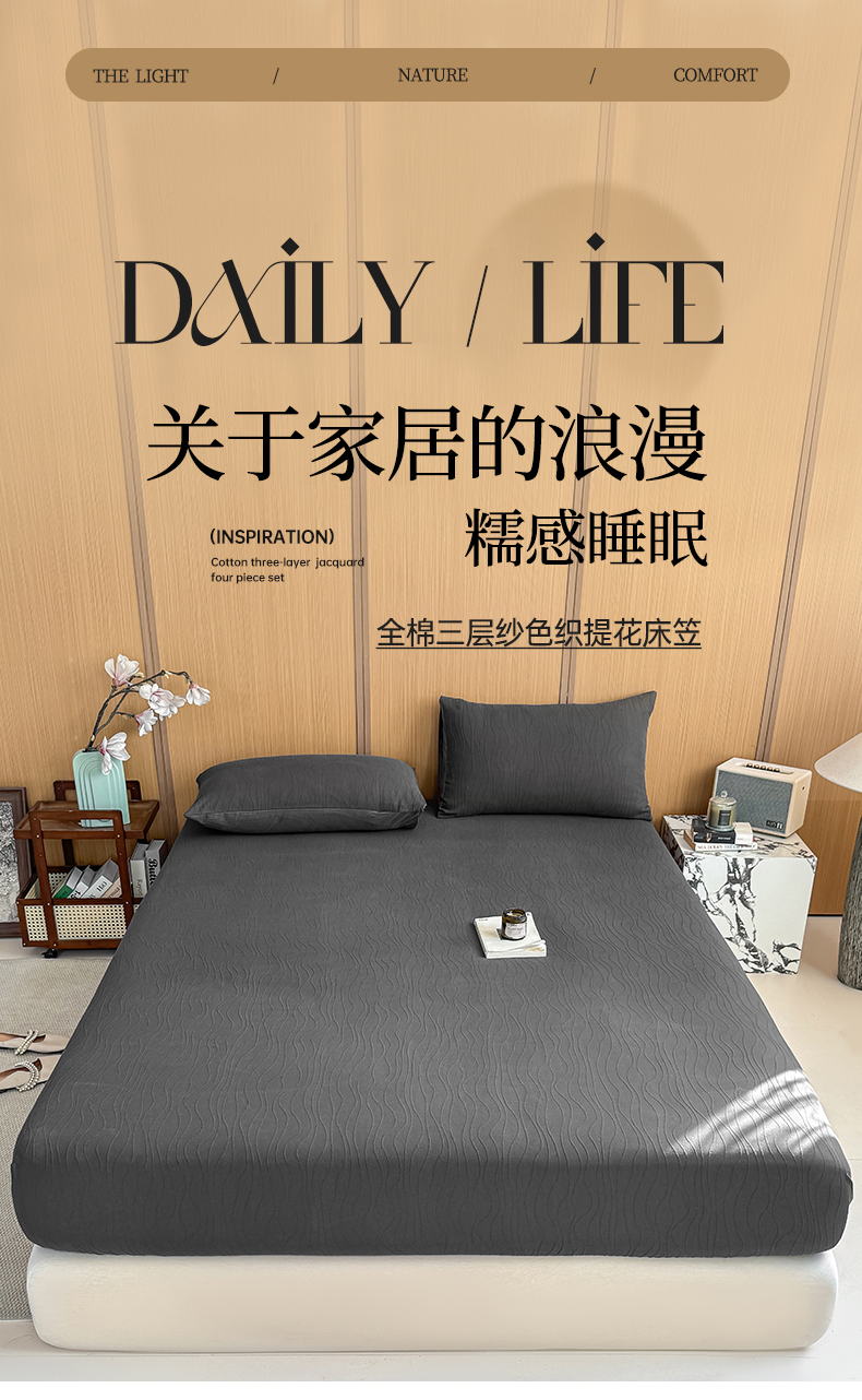 • 91家纺网 家纺一手货源 找家纺 灰鲸 2026新款全棉纯棉三层纱色织提花床笠单品床笠床笠单件 浅忆-素墨