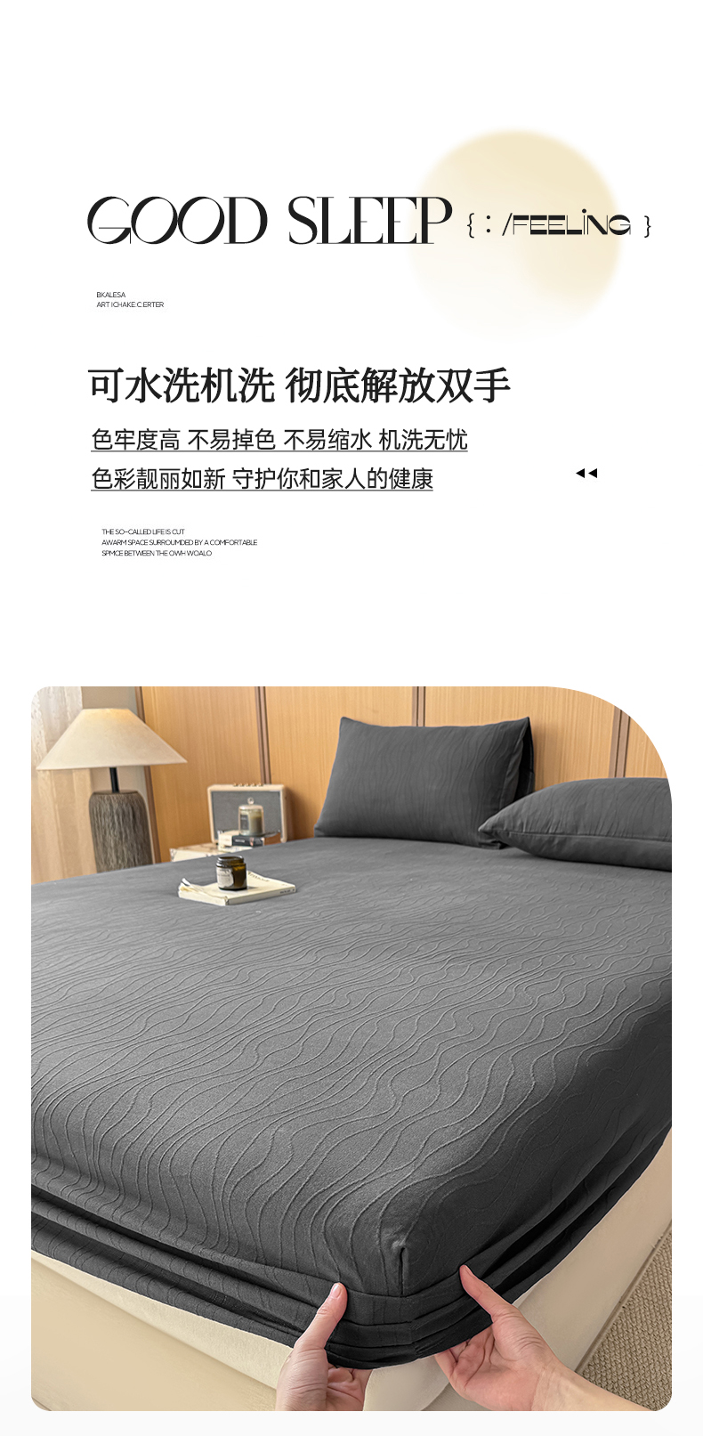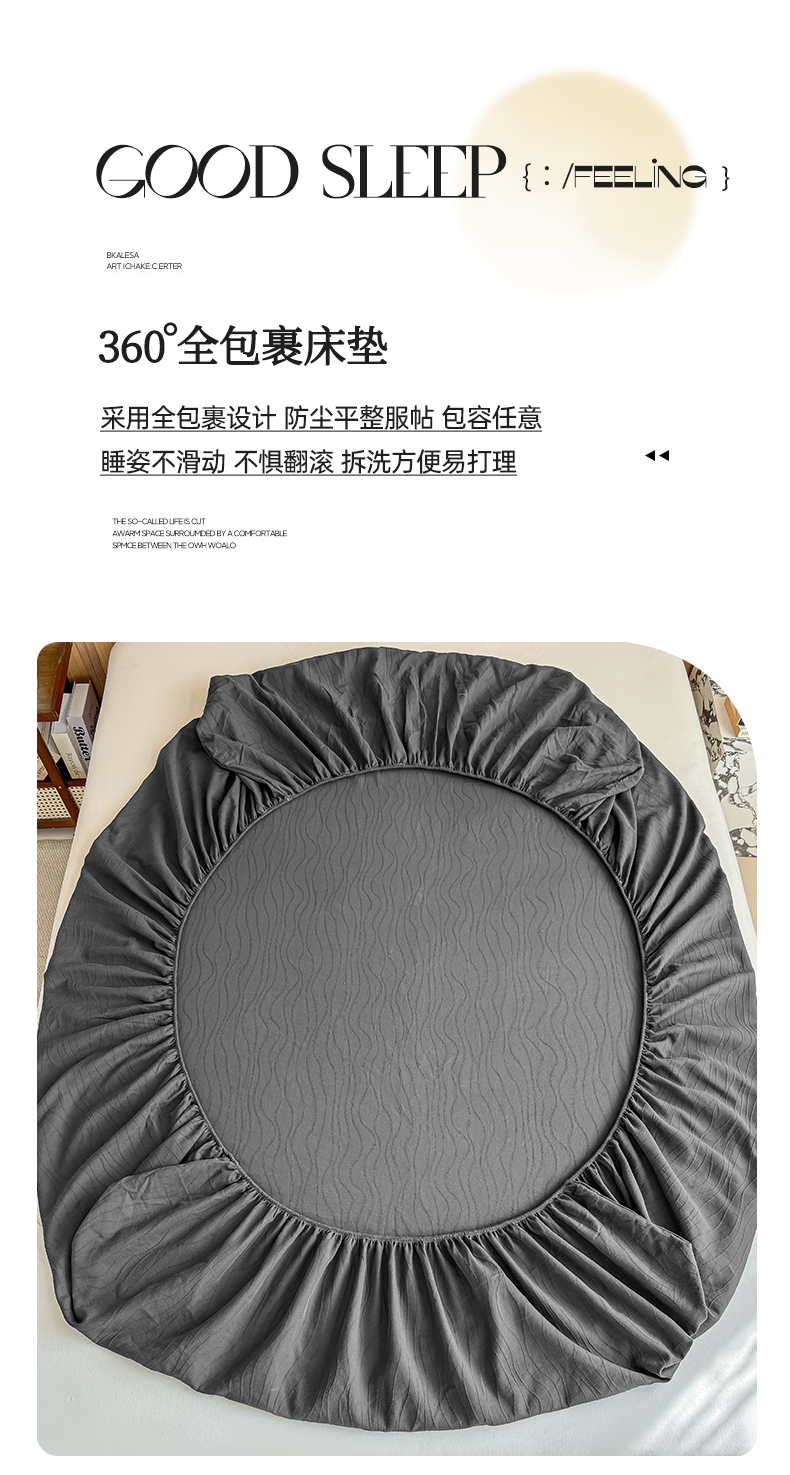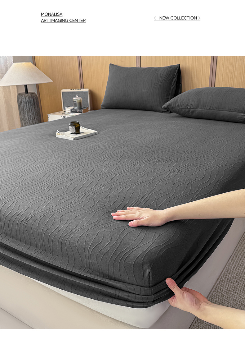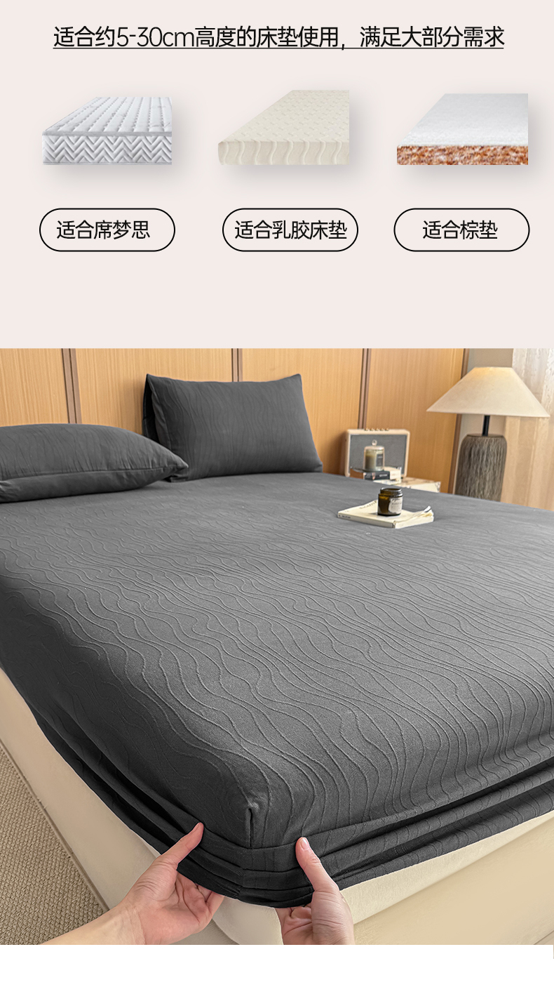 • 91家纺网 家纺一手货源 找家纺 灰鲸 2026新款全棉纯棉三层纱色织提花床笠单品床笠床笠单件 浅忆-素墨