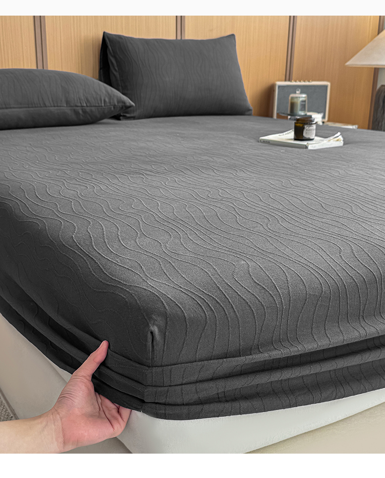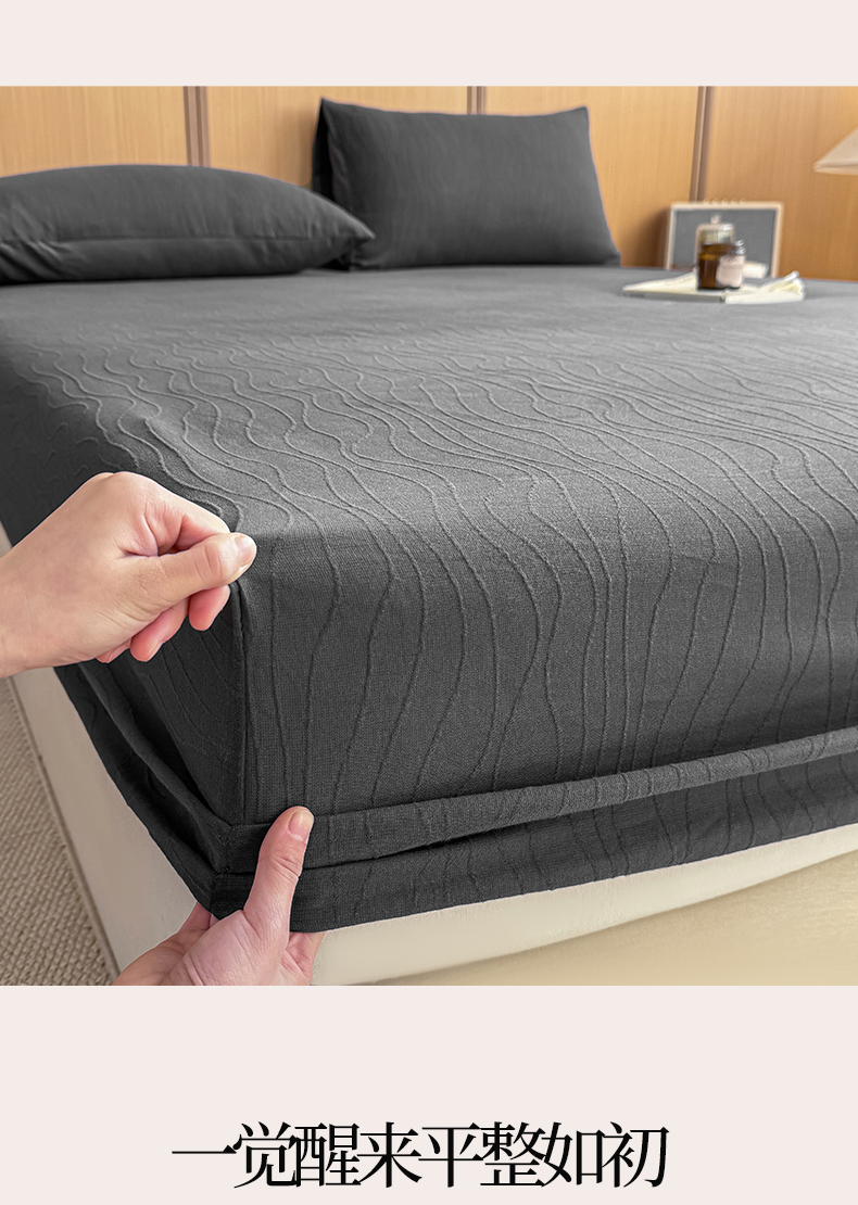 灰鲸 2026新款全棉纯棉三层纱色织提花床笠单品床笠床笠单件 浅忆-素墨