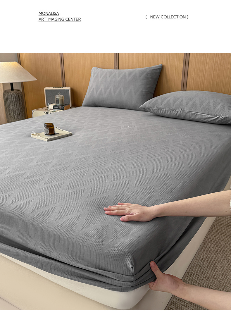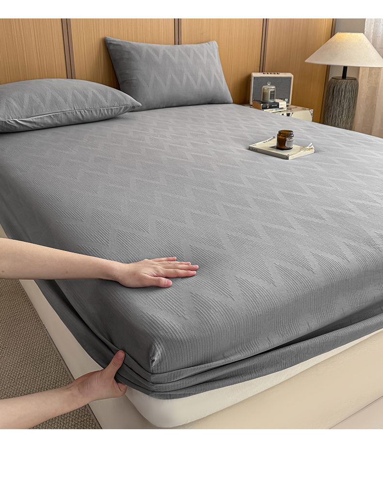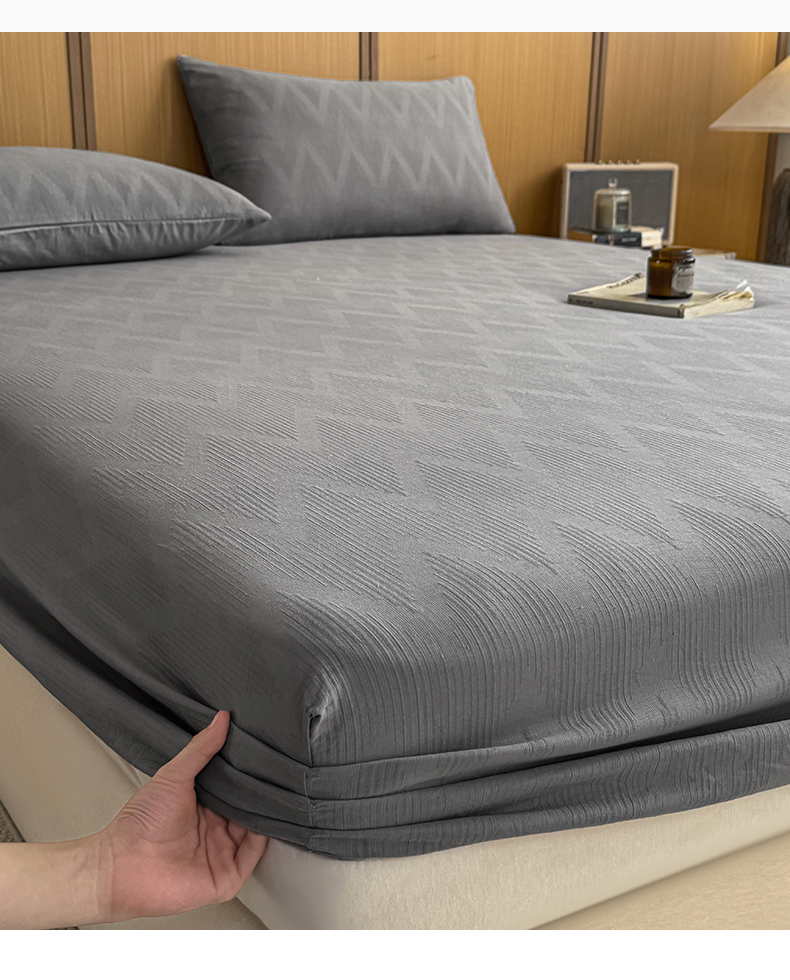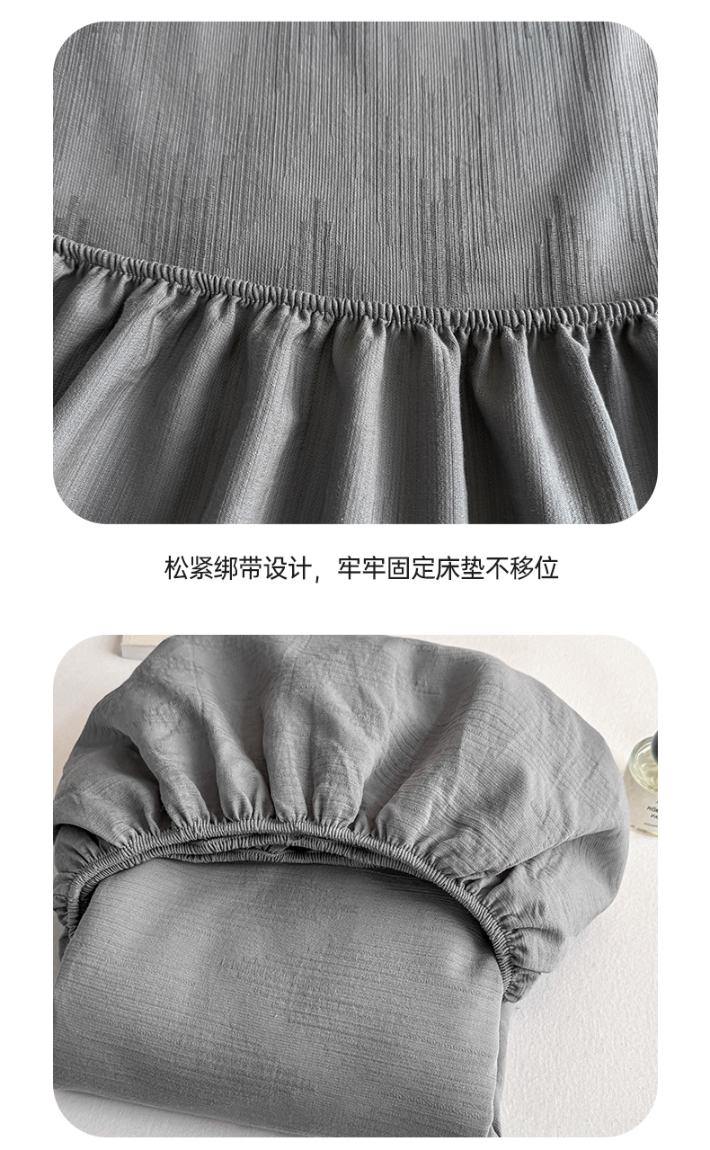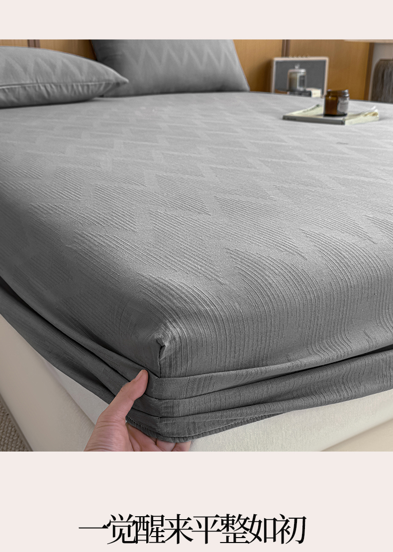 灰鲸 2026新款全棉纯棉三层纱色织提花床笠单品床笠床笠单件 影韵-雾灰
