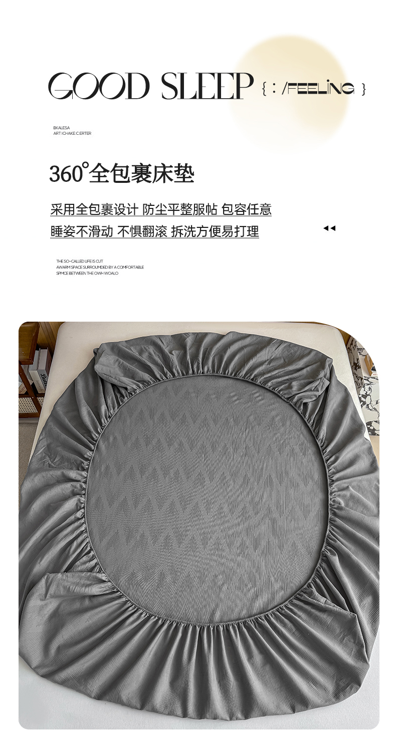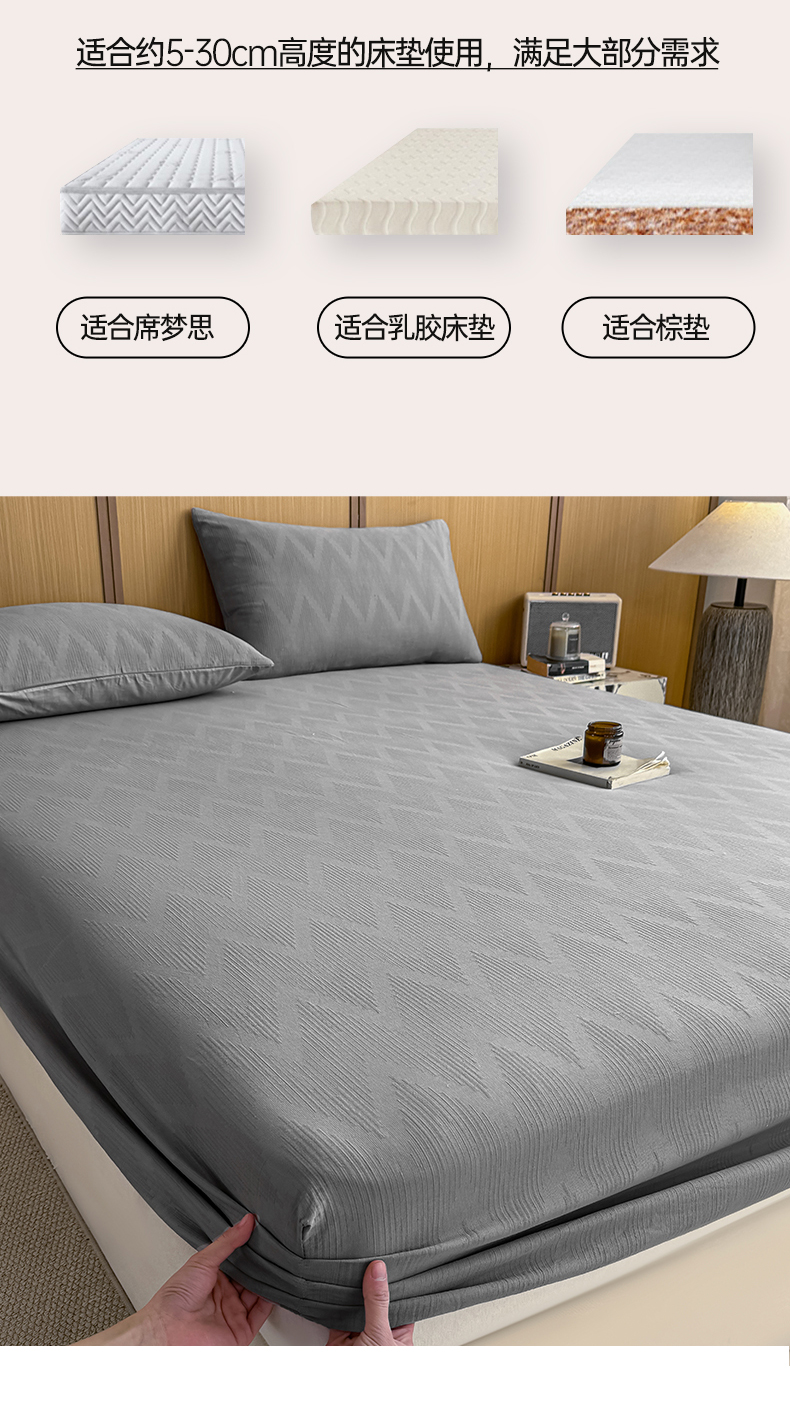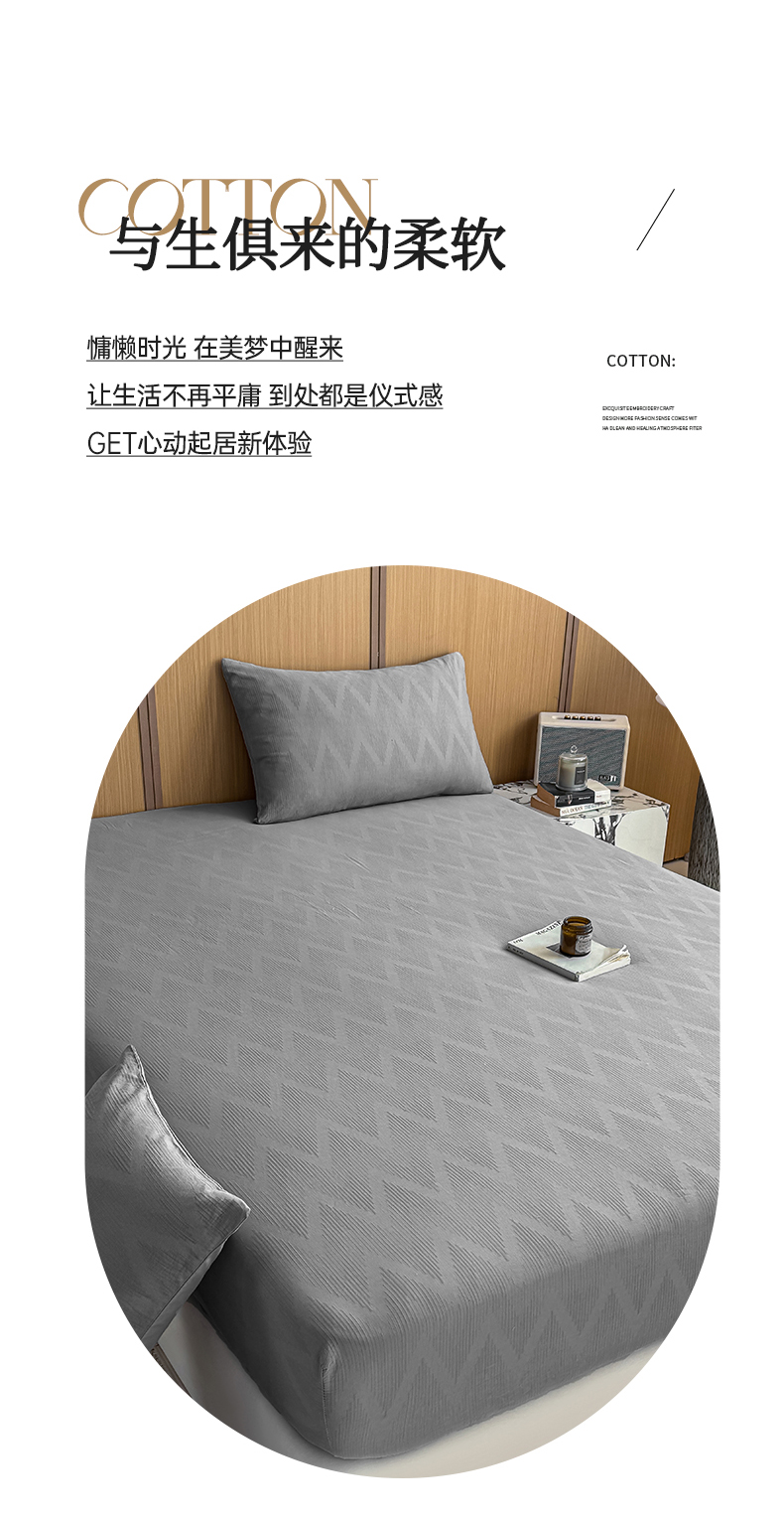 • 91家纺网 家纺一手货源 找家纺 灰鲸 2026新款全棉纯棉三层纱色织提花床笠单品床笠床笠单件 影韵-雾灰