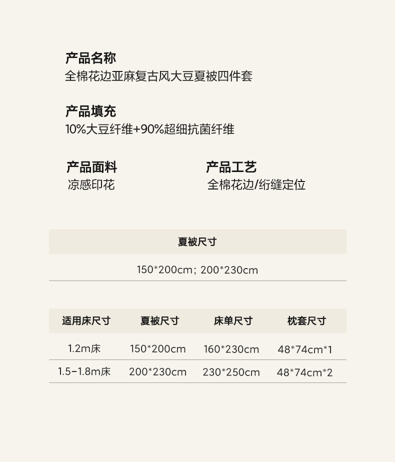 当前位置: 91家纺网 > 商品网购 > 床品套件 > 四件套 > 夏被四件套 > 一加一 2026新款花边素麻复古风大豆夏被夏凉被空调被四件套-素麻生活 林间雾语