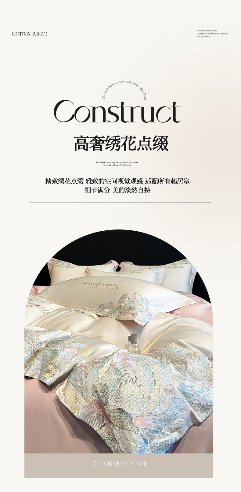 当前位置: 91家纺网 > 商品网购 > 床品套件 > 四件套 > 其它四件套 > 2026新款高支高密刺绣四件套-花溪系列 花溪-奶昔白+粉