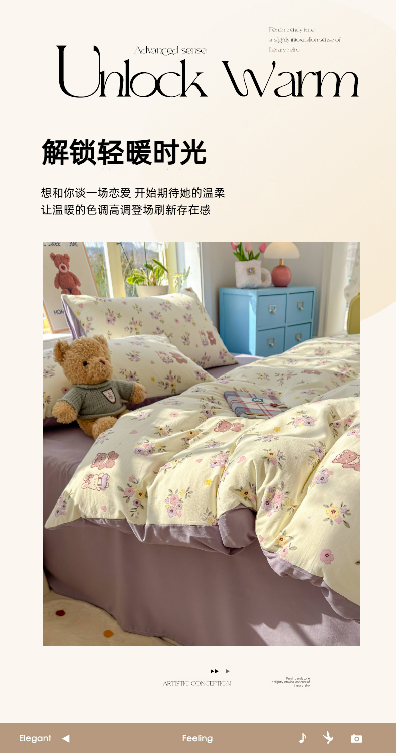 (总)铺尚美家纺 2026新款A类古法水洗仿棉云感纱四件套,萌兔小熊,安娜,波点熊,布丁狗,草莓啵啵,草莓熊-粉,草莓熊-蓝,丁香紫,格纹萌友团,格子熊,狗狗乐园,乖乖狗-灰,乖乖狗-玉,花园小猫,猫狗狂欢夜,玫瑰庄园,莫兰迪,奶绿牛油果,蔷薇花语,条纹小熊,小马星河,小奶团,星芒啵啵熊,雪花世界,英伦小木马,紫罗兰