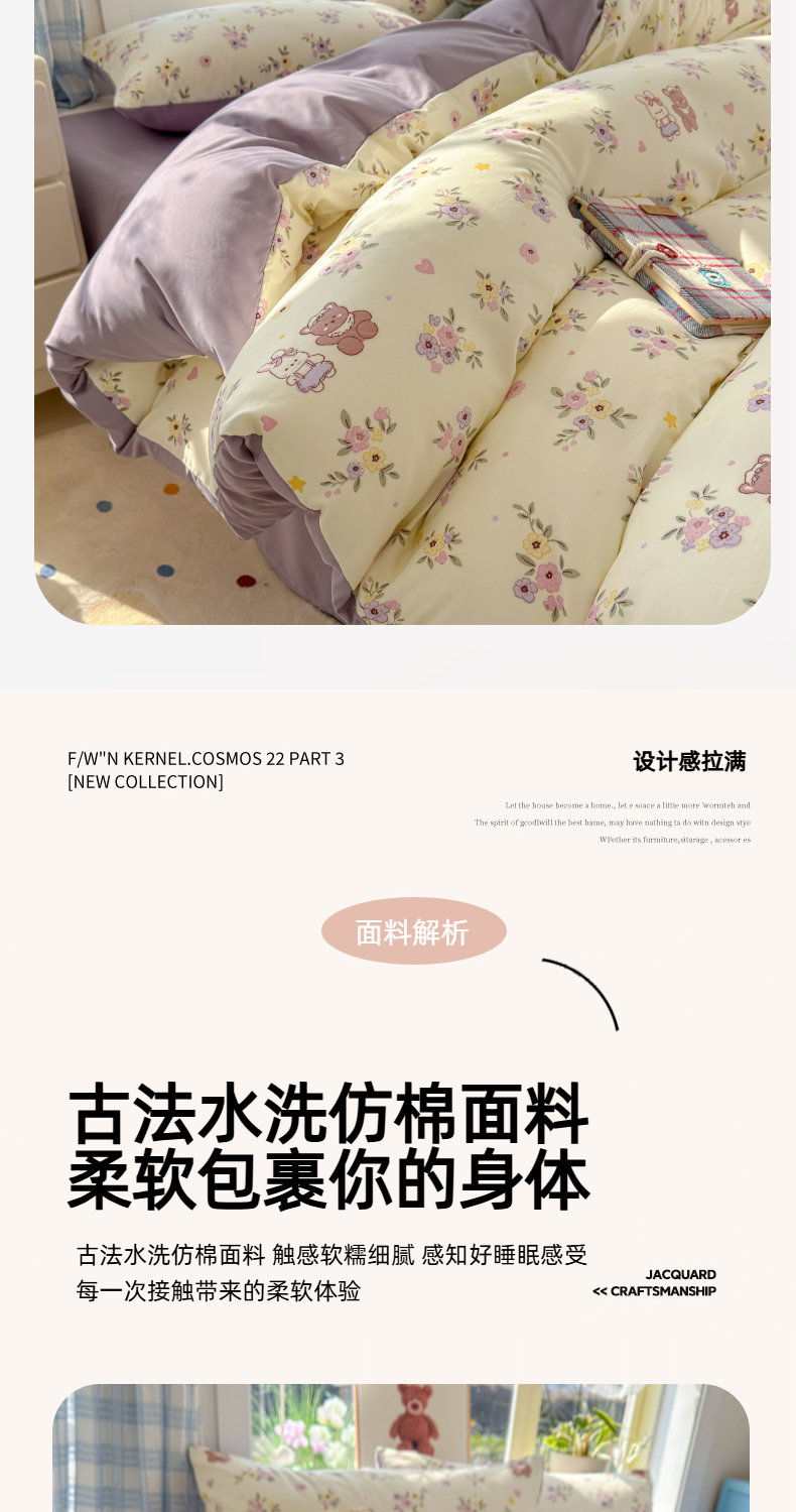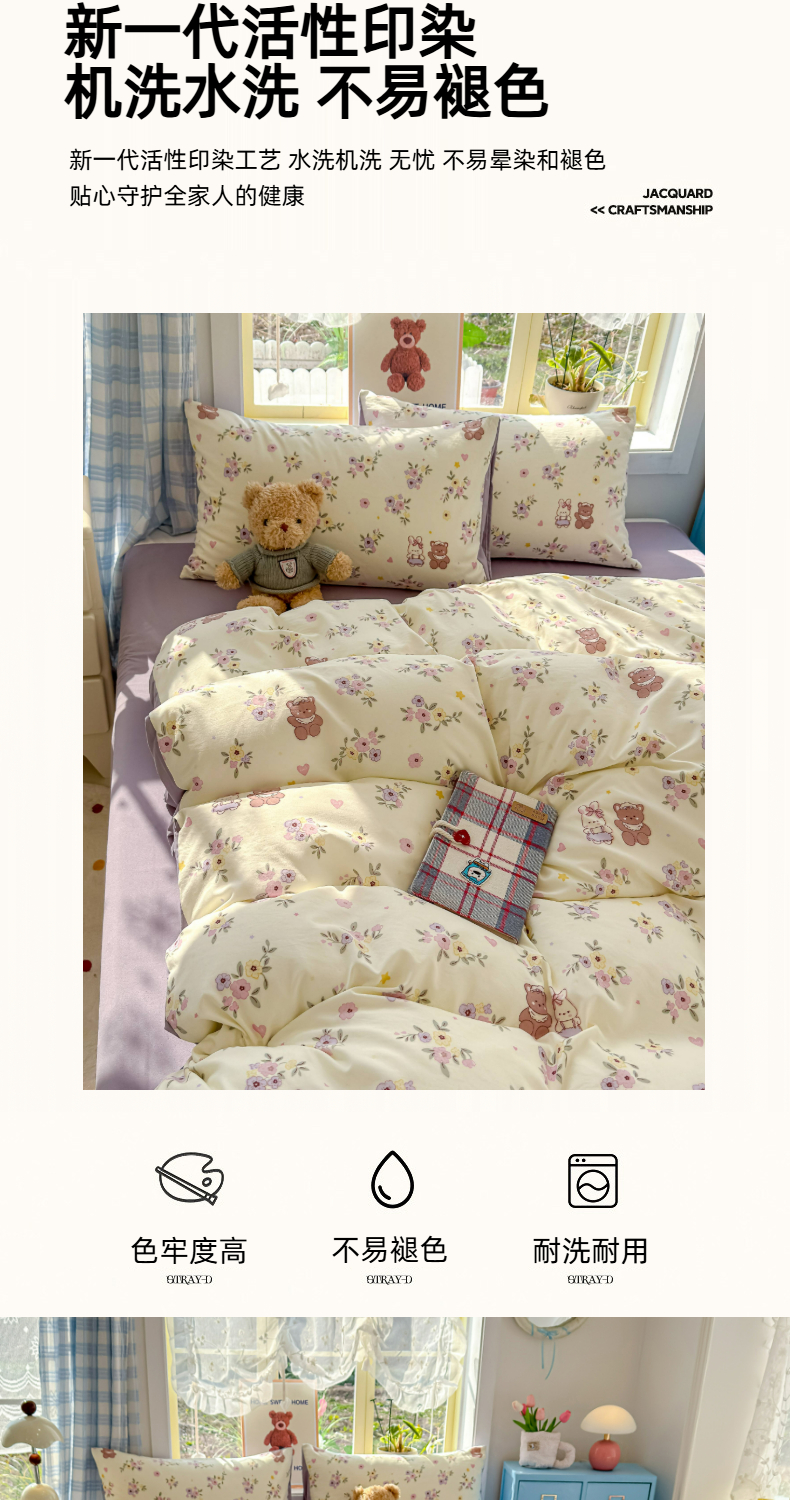 (总)铺尚美家纺 2026新款A类古法水洗仿棉云感纱四件套,萌兔小熊,安娜,波点熊,布丁狗,草莓啵啵,草莓熊-粉,草莓熊-蓝,丁香紫,格纹萌友团,格子熊,狗狗乐园,乖乖狗-灰,乖乖狗-玉,花园小猫,猫狗狂欢夜,玫瑰庄园,莫兰迪,奶绿牛油果,蔷薇花语,条纹小熊,小马星河,小奶团,星芒啵啵熊,雪花世界,英伦小木马,紫罗兰