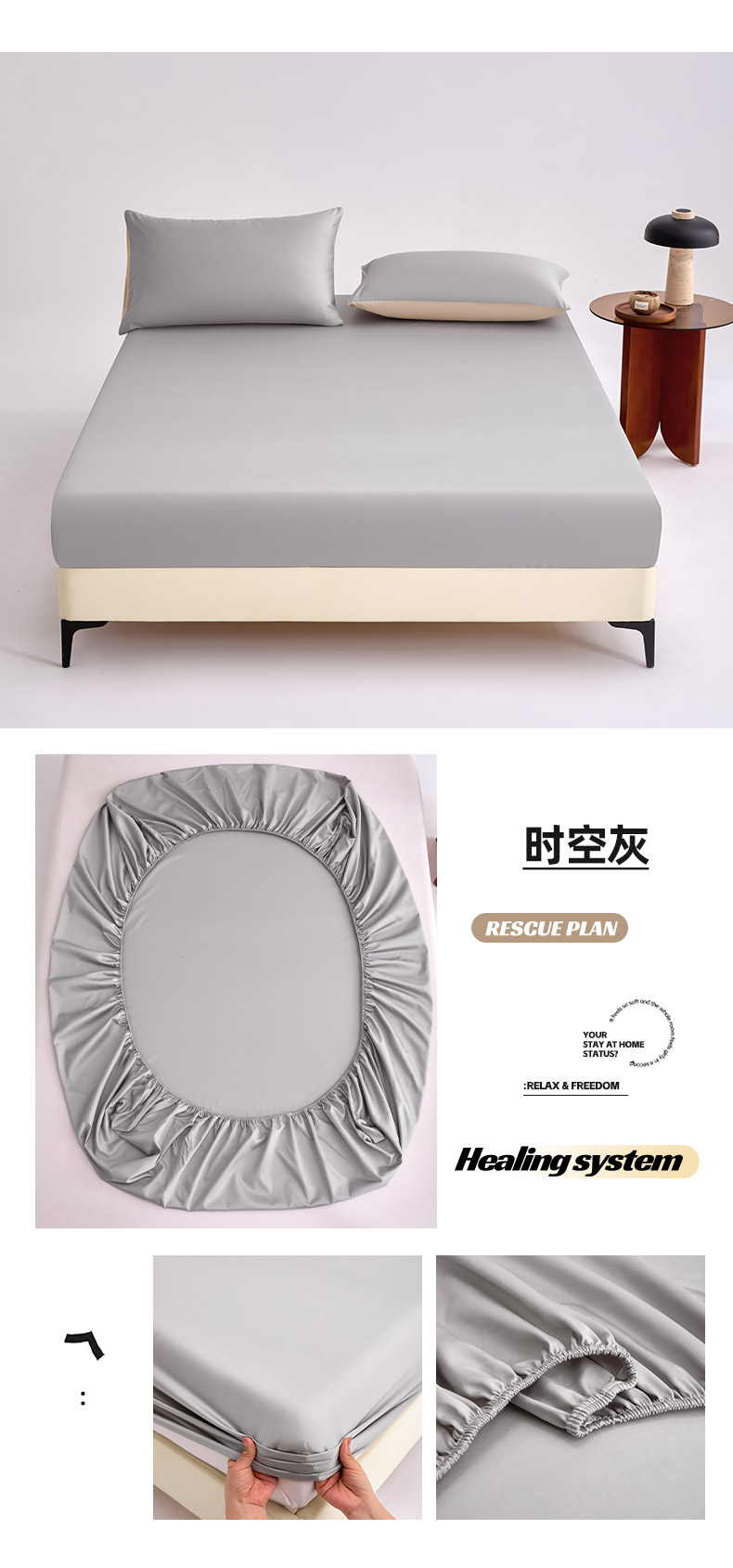 (总)合欢(原天一阁) 2026新款50s双股长绒棉全棉纯棉床笠三件套,水军蓝,香芋紫,银竹灰,流苏白,暖心粉,青柠绿,时空灰,香槟金,组合图(仅供展示不可下单)