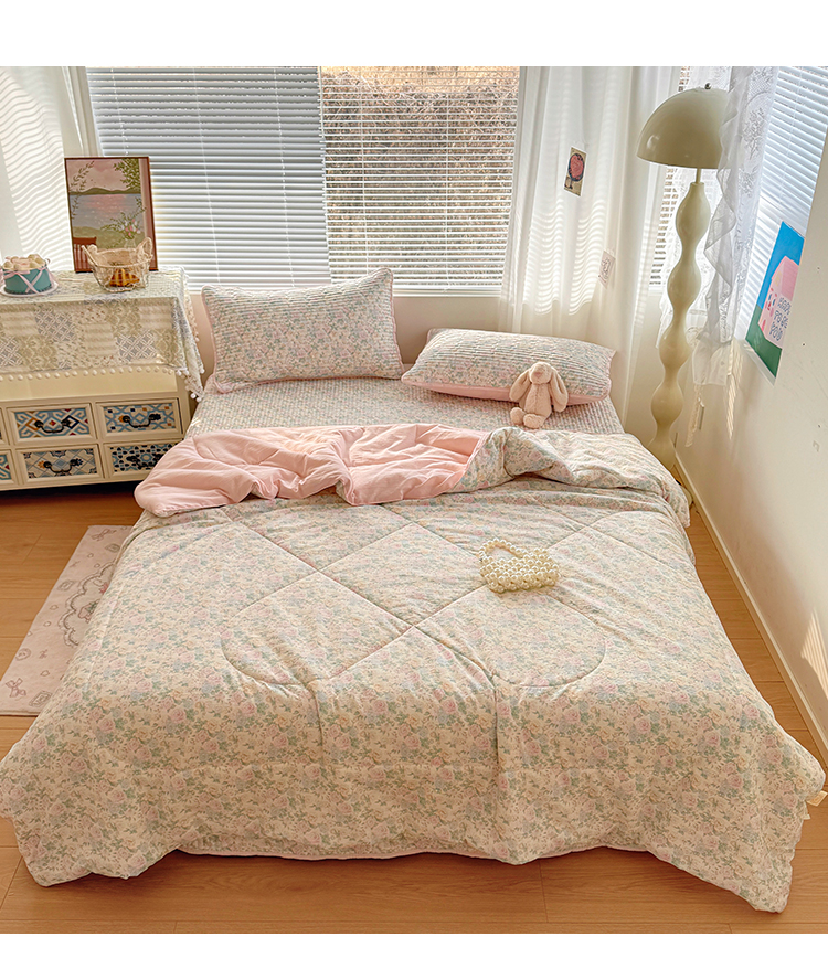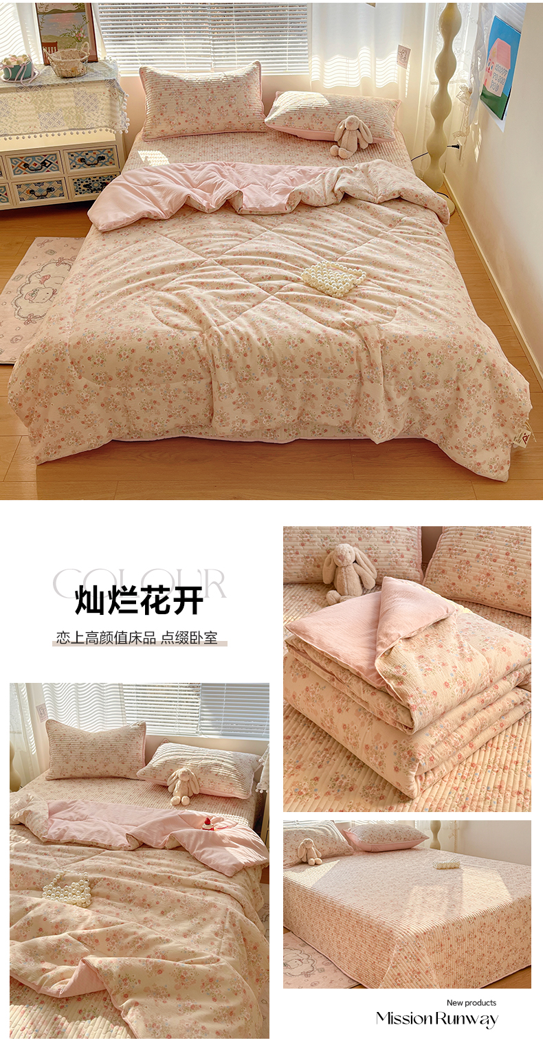 当前位置: 91家纺网 > 商品网购 > 床品套件 > 四件套 > 夏被四件套 > 玉海棠家纺 2026新款A类云感双层纱7A抗菌夏被夏凉被空调被四件套 灿烂花开