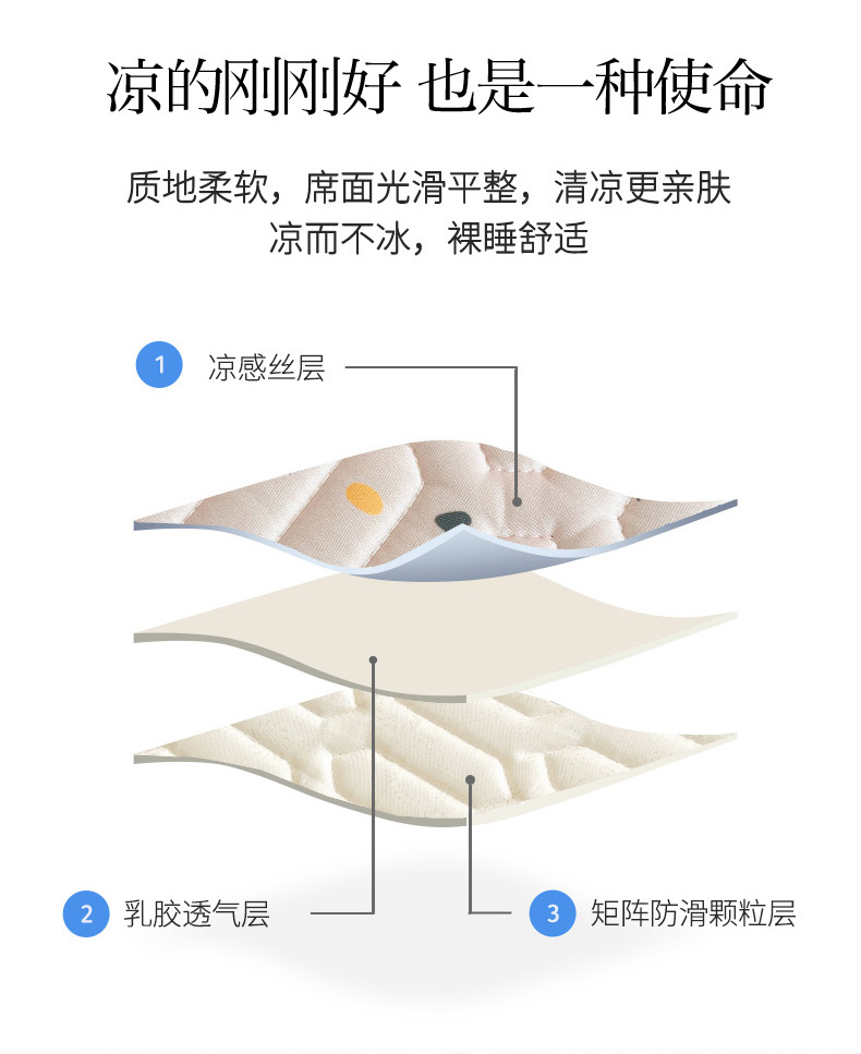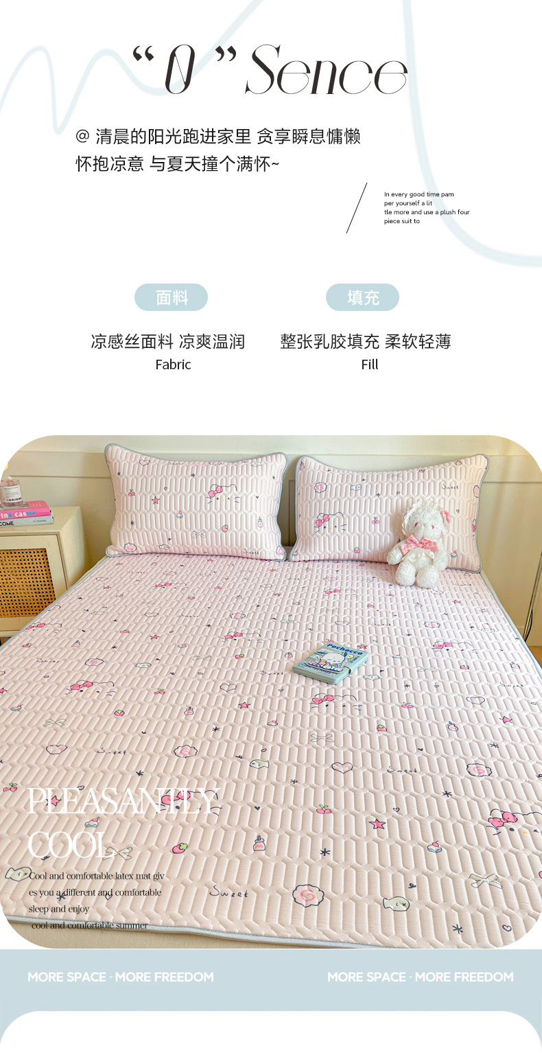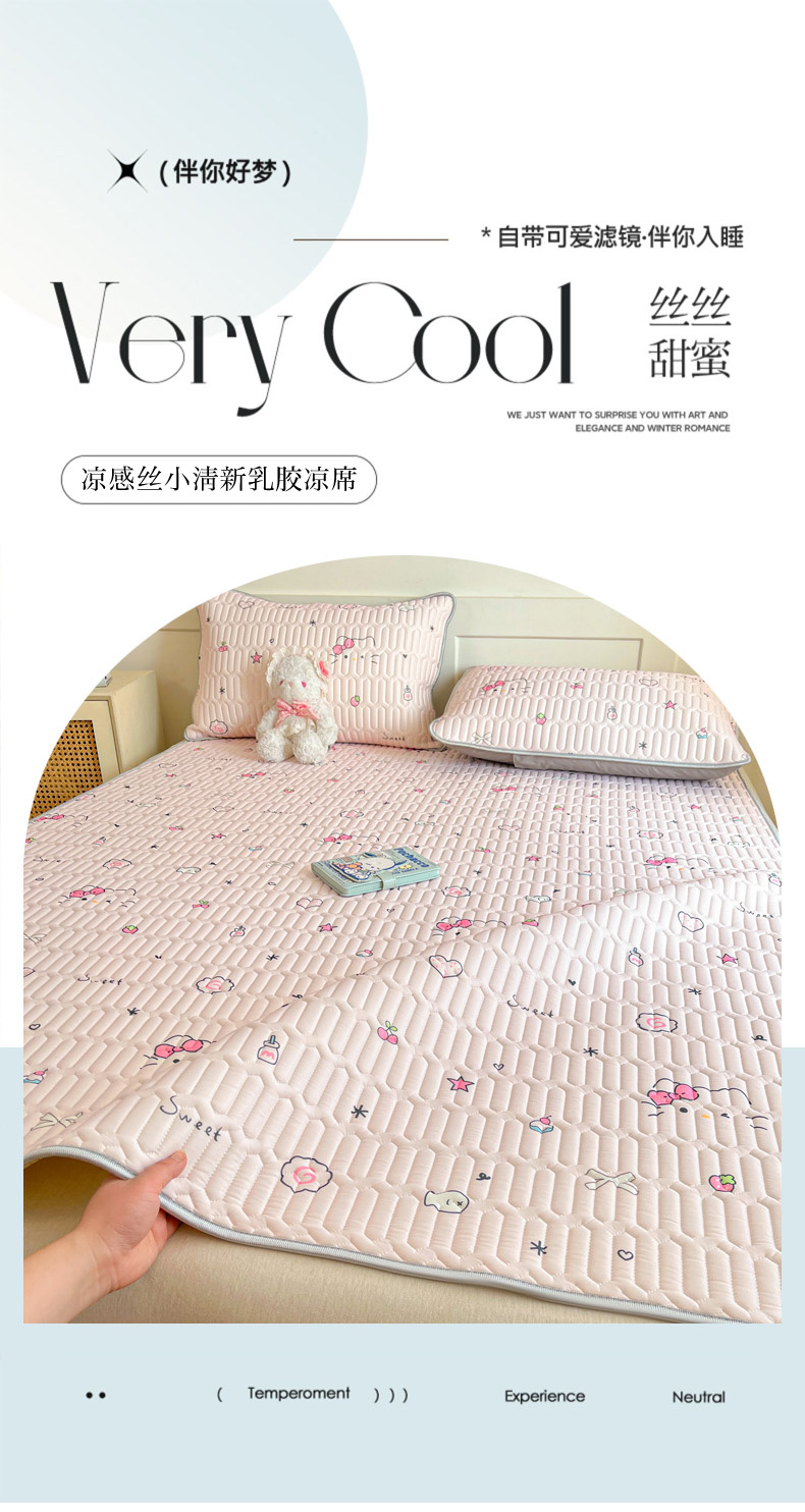 柒月家居 2026新款小清新乳胶凉席三件套 简约甜喵