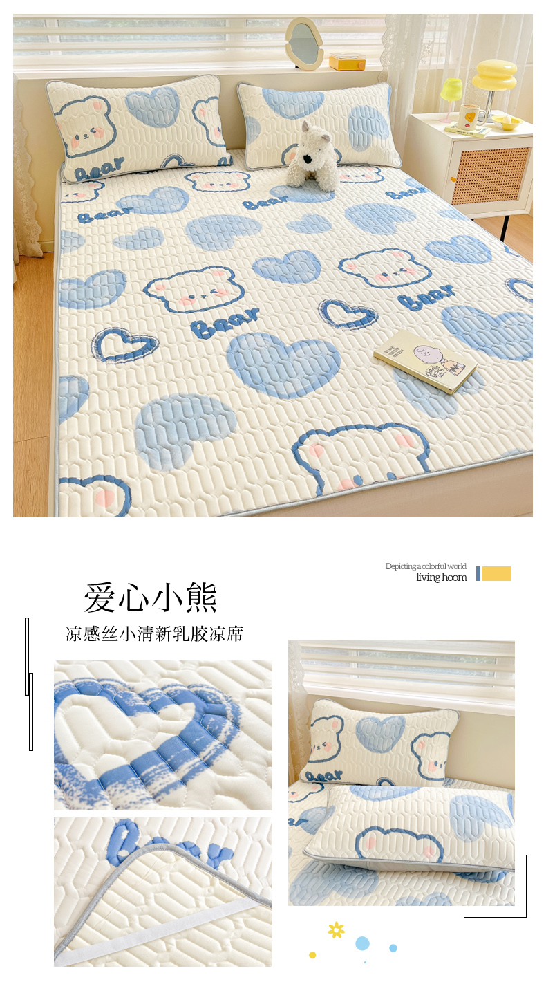 (总)柒月家居 2025新款小清新乳胶凉席夏被套件,爱心草莓,字母小熊,爱心小熊,粉色猫咪,格调,好伙伴,花季,萌宠派对,碎花小猫,星星腊肠狗,星星月亮