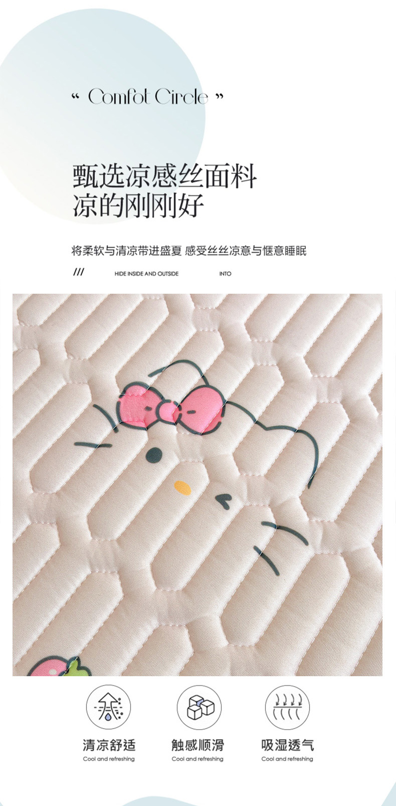 商品名称:柒月家居 2026新款小清新乳胶凉席三件套 简约甜喵