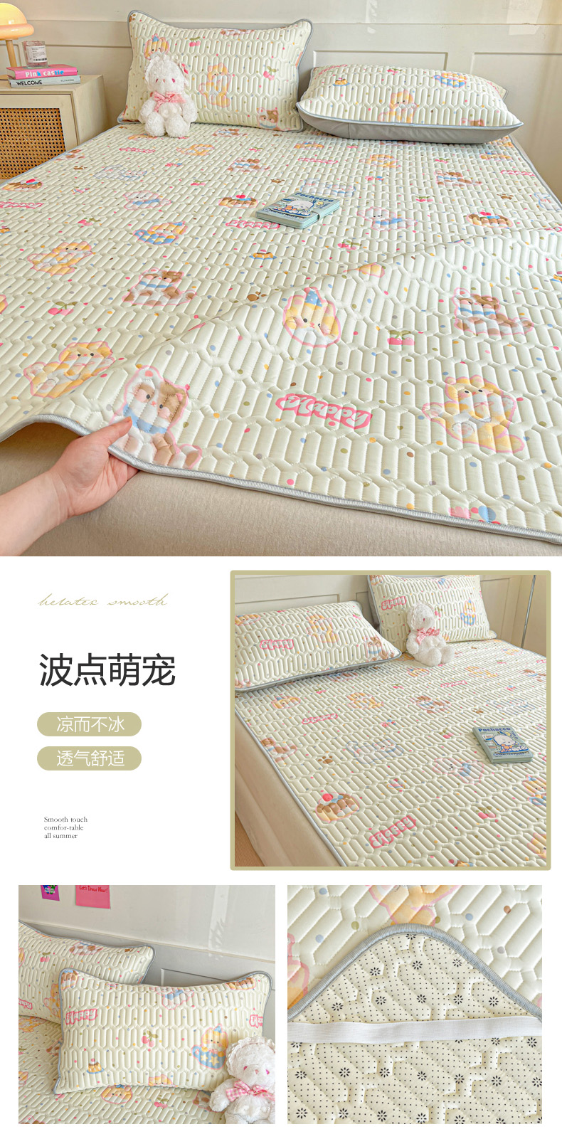 (总)柒月家居 2026新款小清新乳胶凉席三件套,粉格凯蒂,爱心小熊,爱心熊猫,豹纹精灵,波点萌宠,彩色木马,格调,花季,灰格小熊,简约甜喵,蓝格甜猫,蓝块汪仔,奶盖猫咪,碎花派对,桃桃奶猫,甜酷星兔,星帽小熊,星星月亮,字母小熊