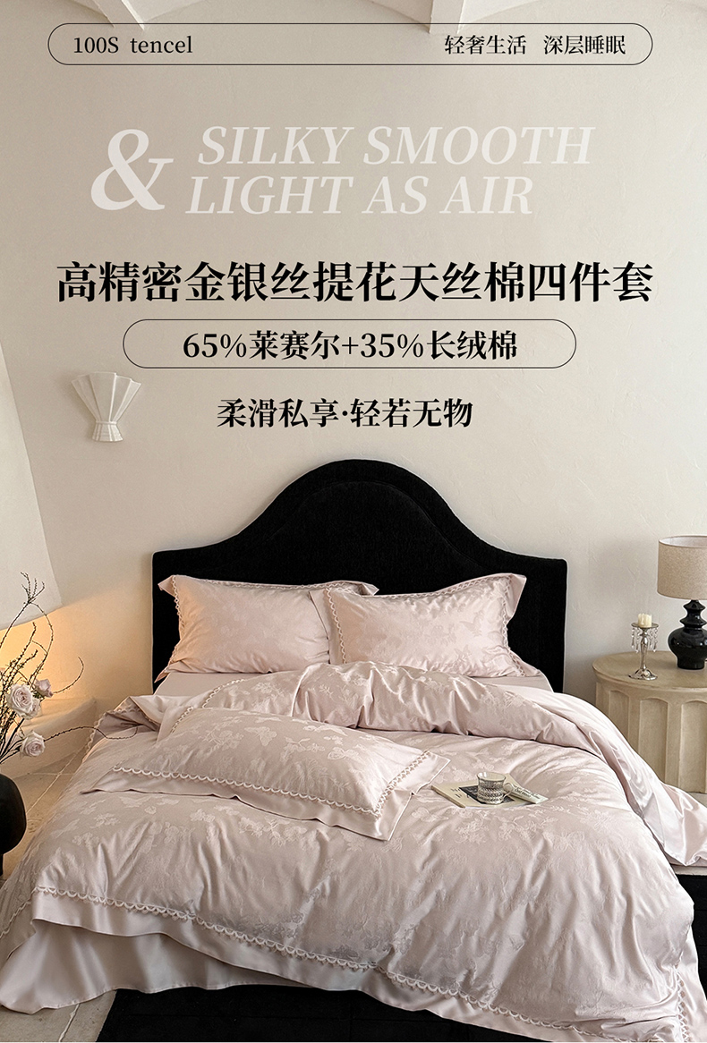 当前位置: 91家纺网 > 商品网购 > 床品套件 > 四件套 > 提花四件套 > (总)爱缦 2026新款玫瑰蝶翼系列高精密金银丝天丝棉提花工艺款优质高端四件套