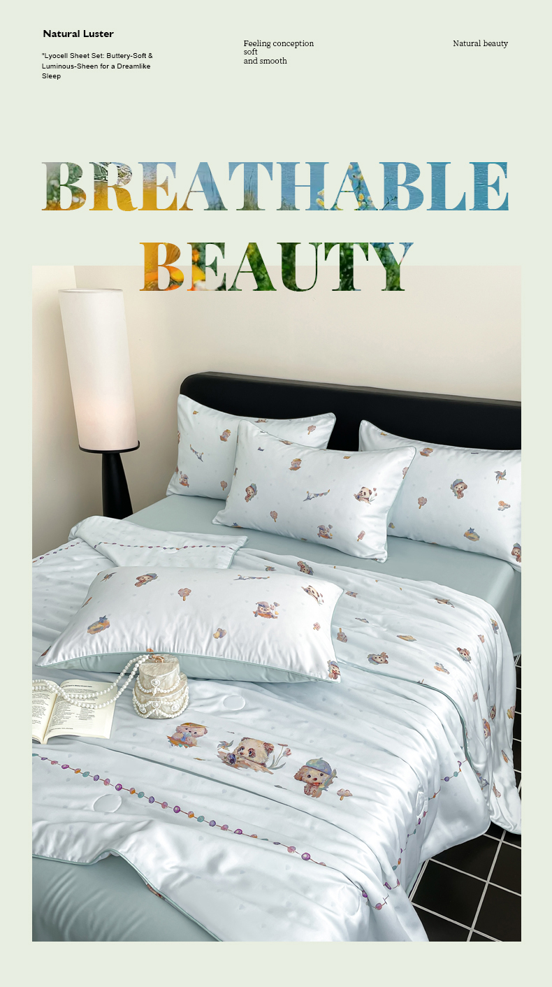 • 91家纺网 家纺一手货源 找家纺 (总)慕晨 2026新款天丝莱赛尔数码印加绣花高级简奢丝滑丝绸卡通款夏被四件套,球仔,彩蝶,甜猫,星兔,永恒