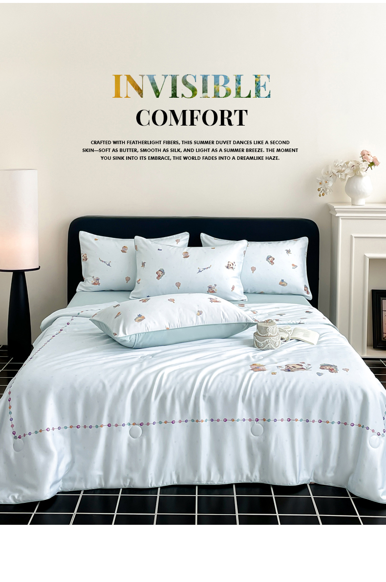 • 91家纺网 家纺一手货源 找家纺 (总)慕晨 2026新款莱赛尔数码印高级简奢卡通大版印花丝滑夏被四件套,三只熊--兰,斑马--米白,蝶舞,木马象--米白,木马象--紫,三只熊--米白