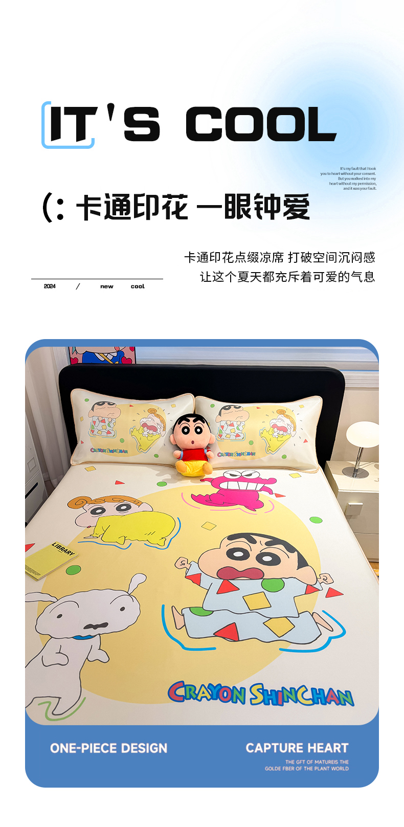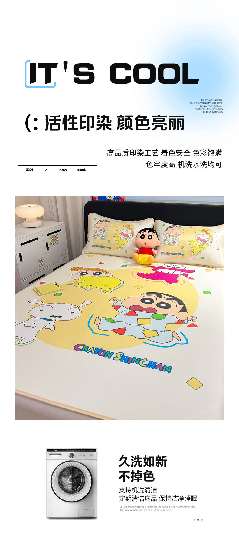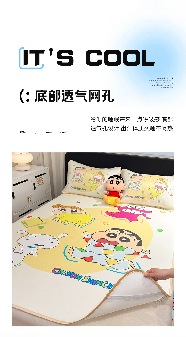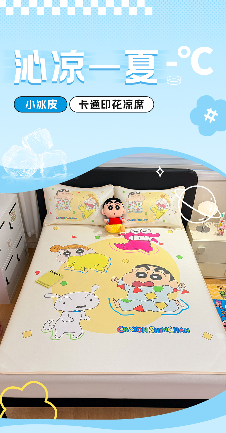• 91家纺网 家纺一手货源 找家纺 博雅 2026新款蜡笔小新正版授权小冰皮大版印花凉席-平铺款 大版-童趣小新