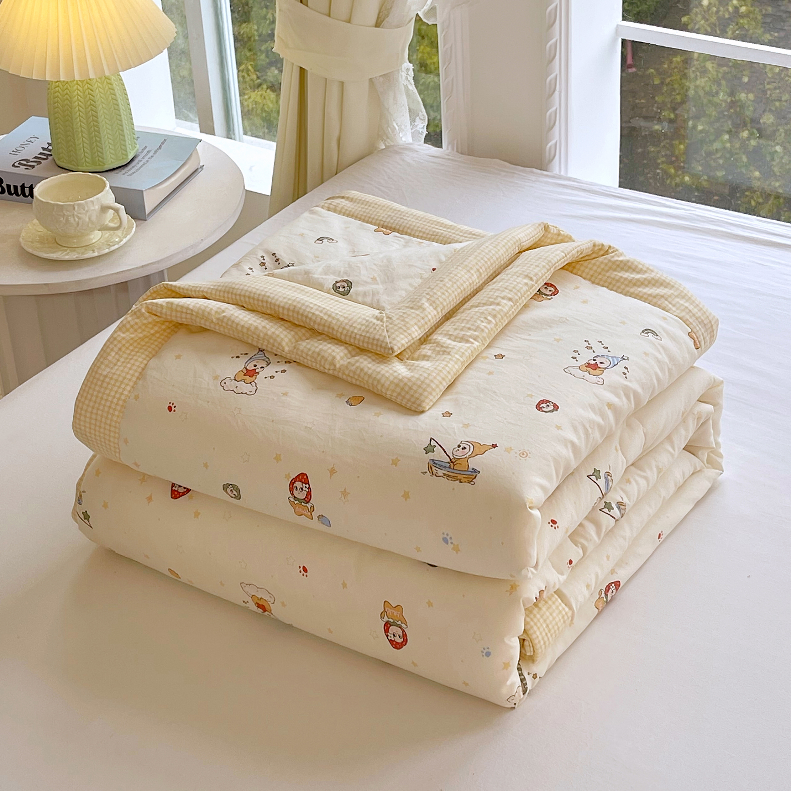 • 91家纺网 家纺一手货源 找家纺 (总)梵克保罗 2026春夏新款10A抗菌毛球花边皱皱纱夏被单夏被空调被夏被四件套,花乡小熊,蓝星狗,乐趣,萌兔花园,沐春,素锦纹,雾格马