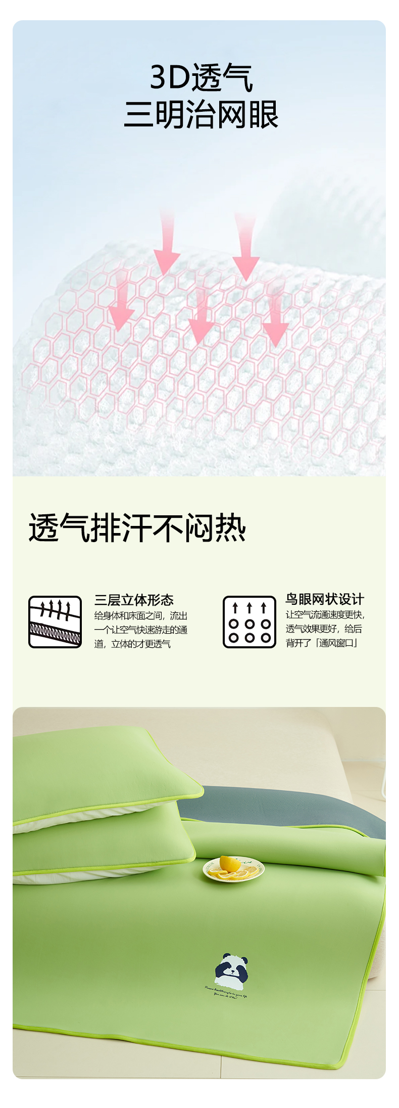 当前位置: 91家纺网 > 商品网购 > 床上用品 > 凉席 > 其他凉席 > 晨曦家纺 2026新款可爱熊猫冻冻凉感席3D空气感凉席席子 熊猫冻感席-果冻苹果绿