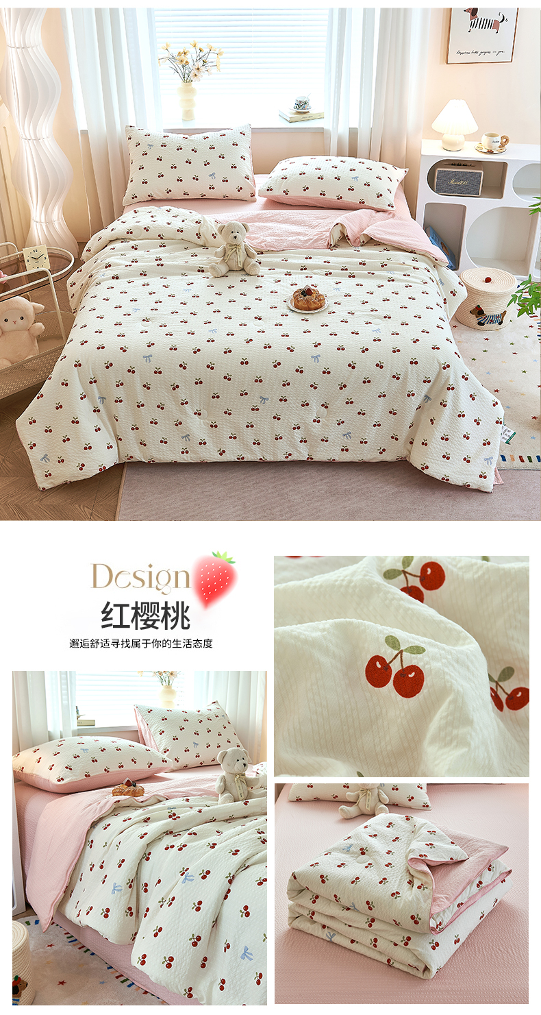 当前位置: 91家纺网 > 商品网购 > 被子 > 夏被 > 铺尚美家纺 2026新款泡芙棉夏被四件套泡芙纱单夏被空调被夏凉被-印花 红樱桃