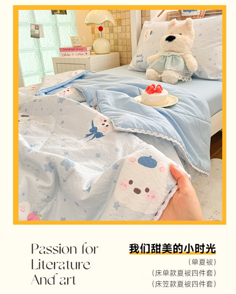 (总)川悦生活 2026新款双层纱木棉夏被四件套,星星西高地,嘟嘟花园,海盐小咪,花都小狗,花田乐园,花艺喵喵,可乐腊肠,腊肠甜心,腊肠庄园,奶油糕糕喵,奶油可盐,汽水小咪,恰星星,巧克力乐园,数星星,糖豆小旺,甜梦心愿,西斯花圃,香芋甜梦,小猫庄园,杏仁小星星,组合图