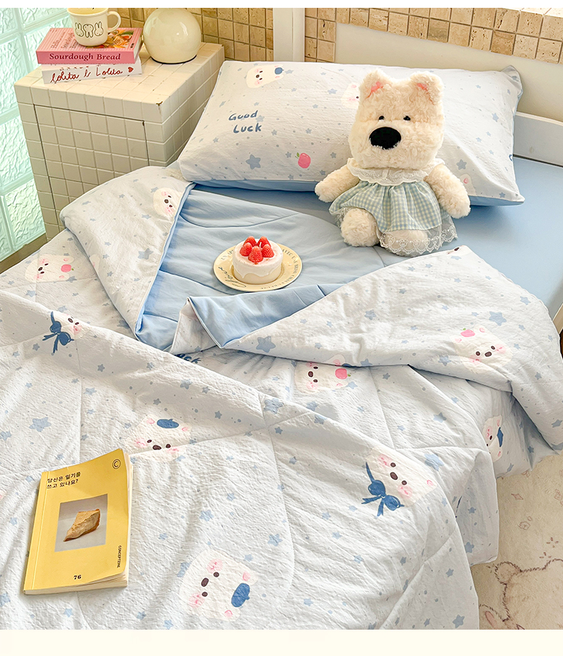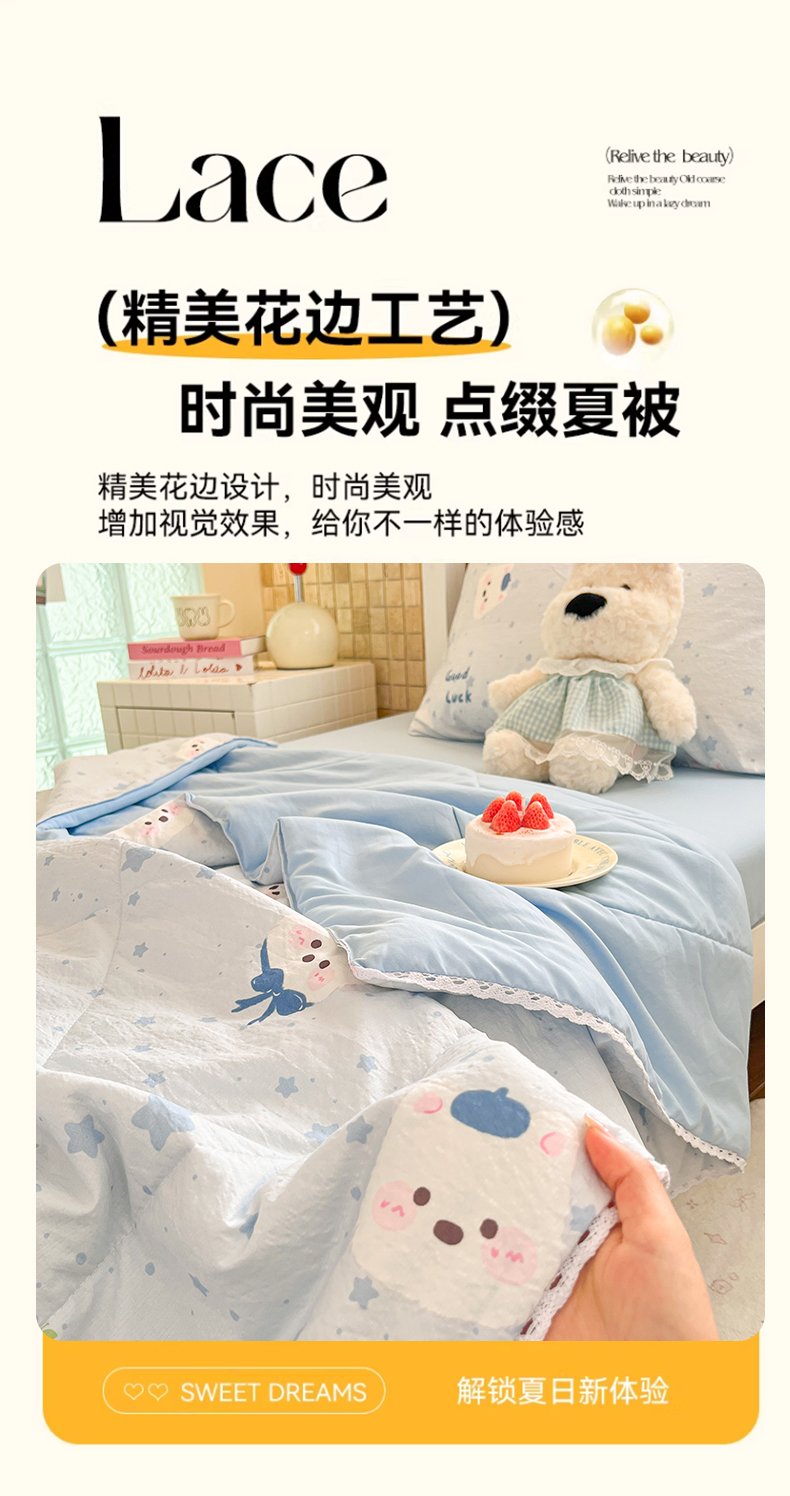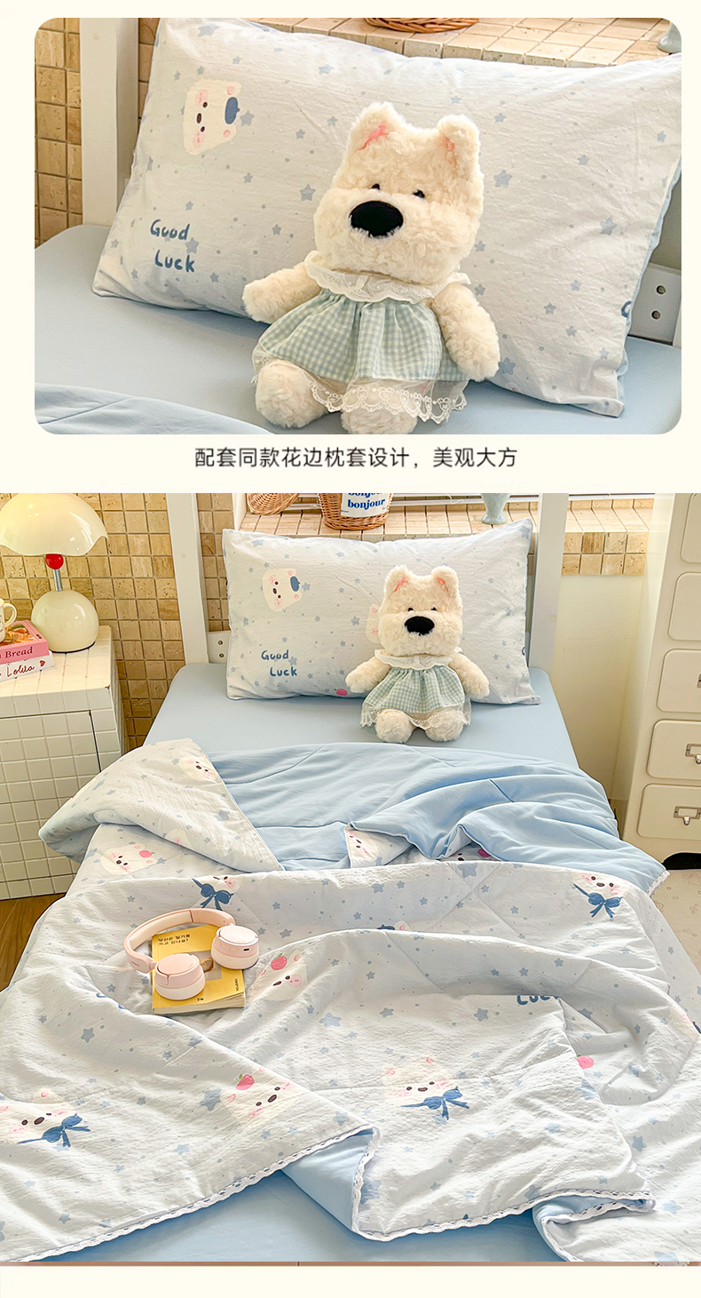 商品名称:川悦生活 2026春夏新款双层纱皱皱纱学生床夏被夏凉被空调被三件套 夏被星星西高地