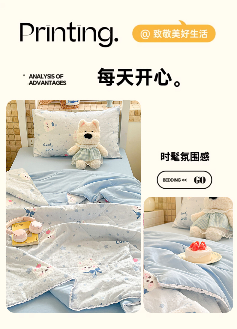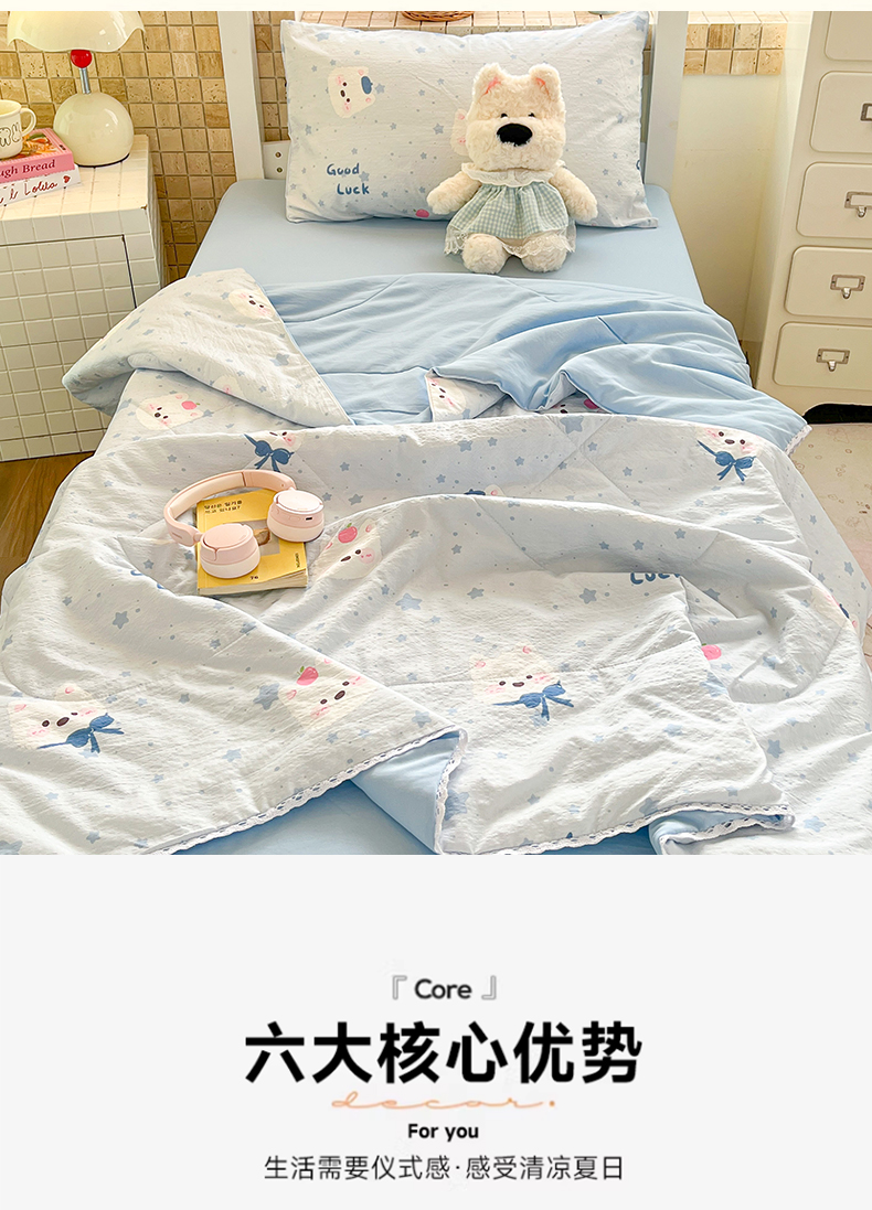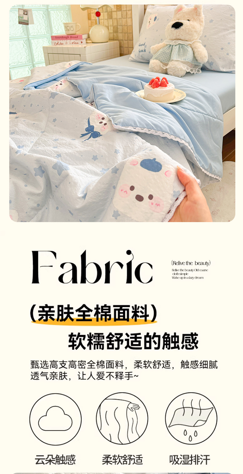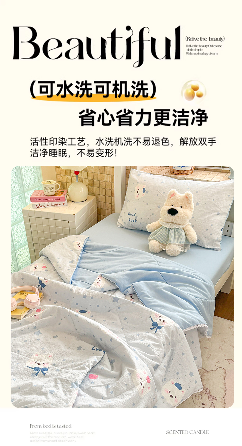 商品名称:川悦生活 2026春夏新款双层纱皱皱纱学生床夏被夏凉被空调被三件套 夏被星星西高地