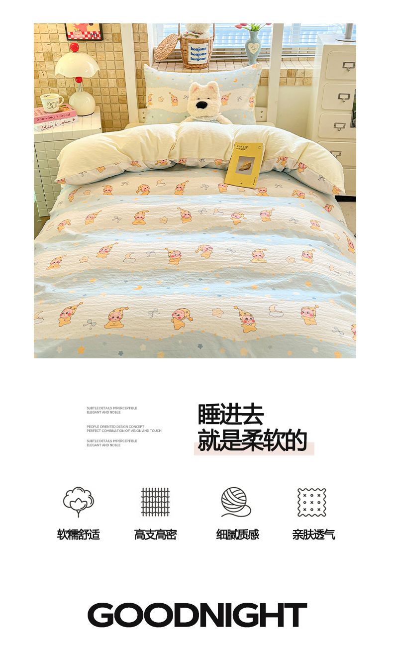 当前位置: 91家纺网 > 商品网购 > 床品套件 > 三件套 > 川悦生活 2026新款双层纱皱皱纱学生床三件套 数星星