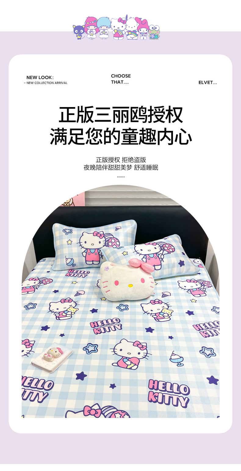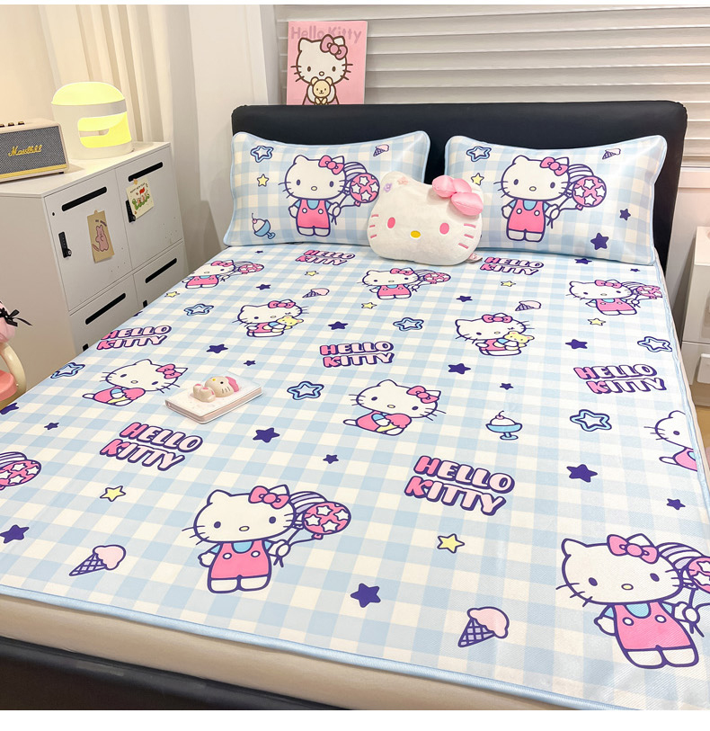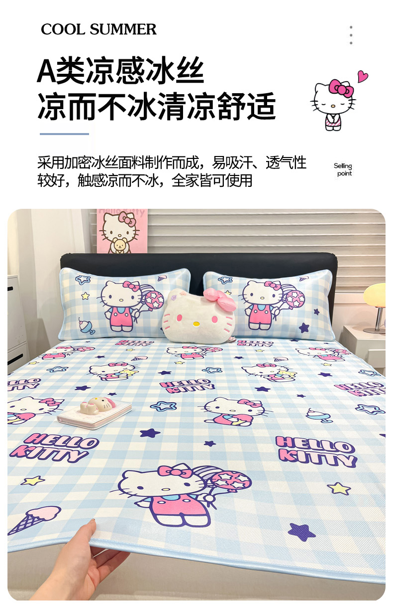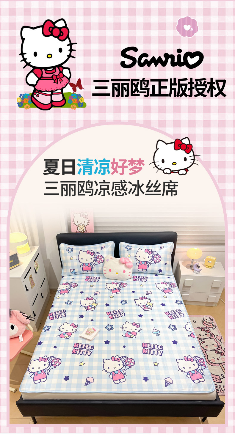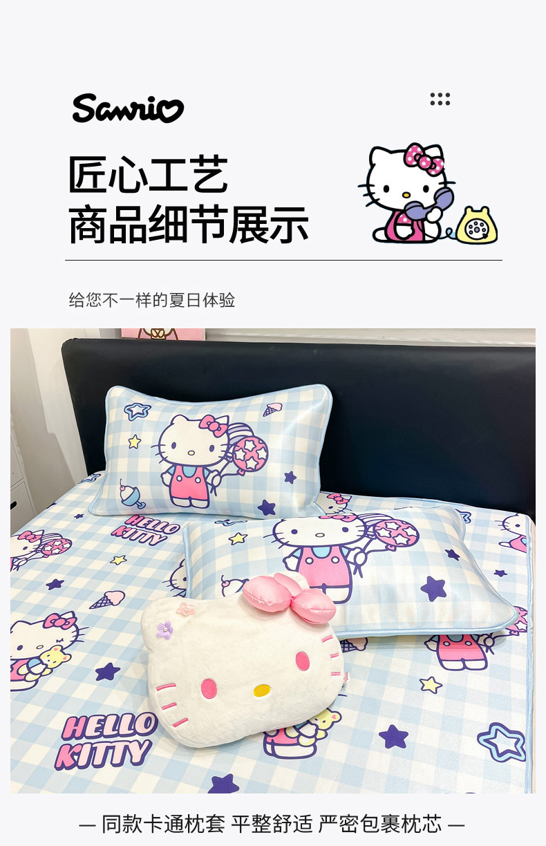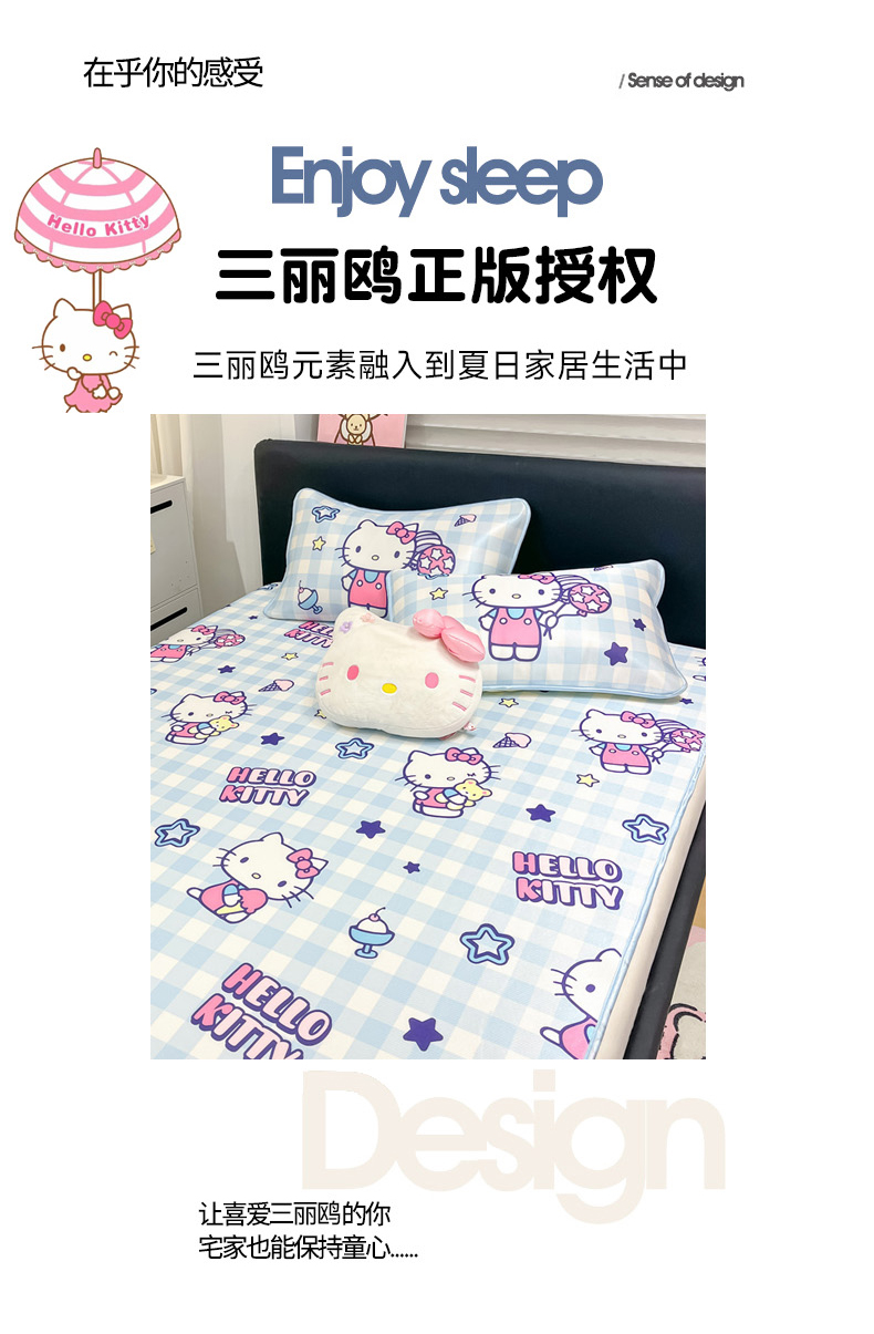 当前位置: 91家纺网 > 商品网购 > 床上用品 > 凉席 > 凉席套件 > 暮思家居 2026新款三丽鸥正版授权数码印花A类可机洗1200D冰丝凉席三件套平铺款系列 平铺款-蓝格KT